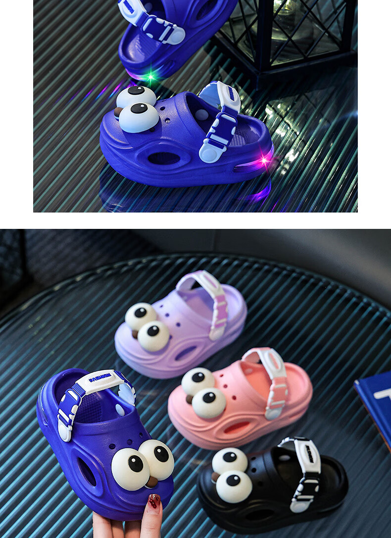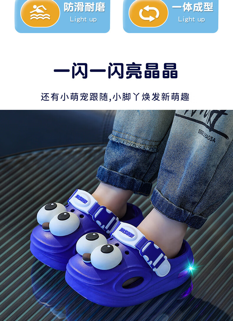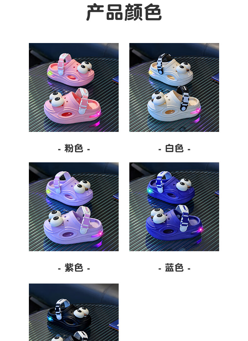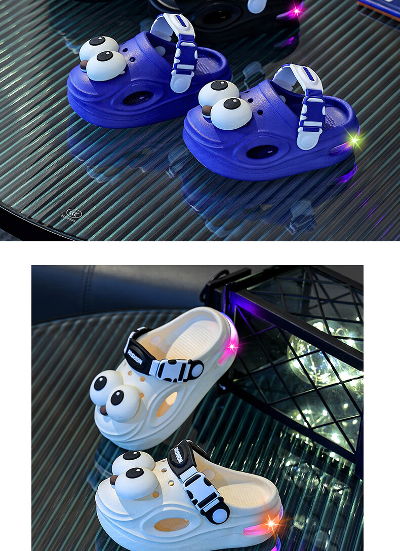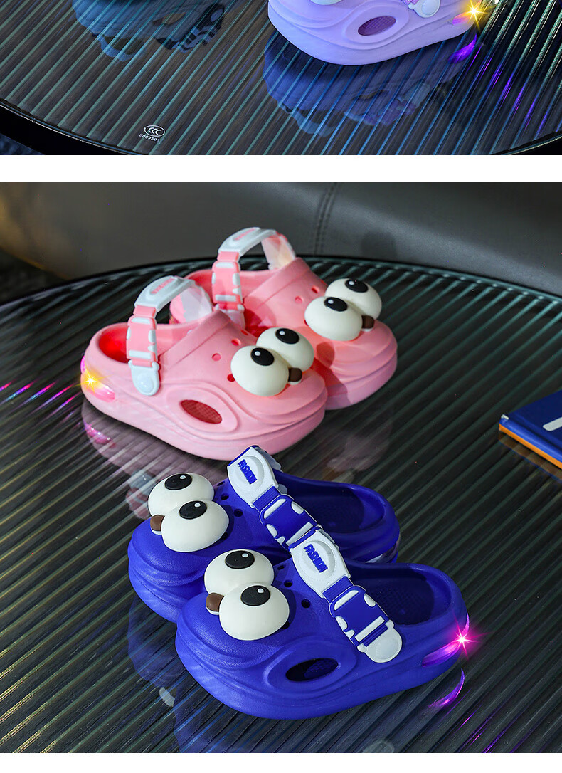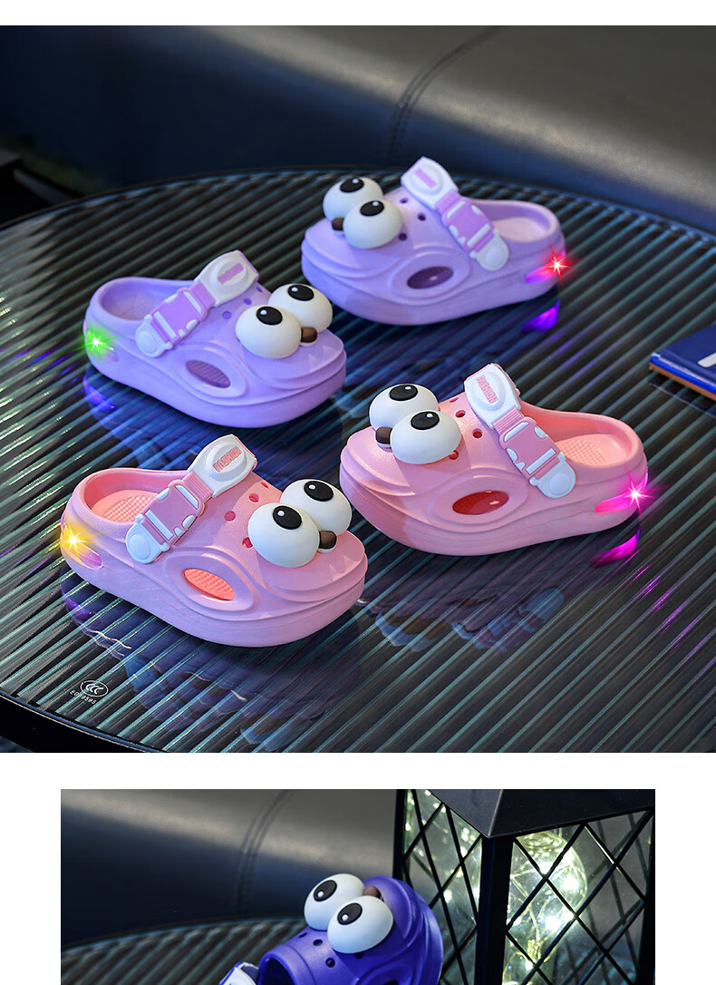 Children's Luminous Croc Shoes Summer Baby 1-3 Years Old 2 Infants and Toddlers Non-Slip Boys and Girls Baotou Car Slippers Pink 14.5 20-21 Inner Length 14.5