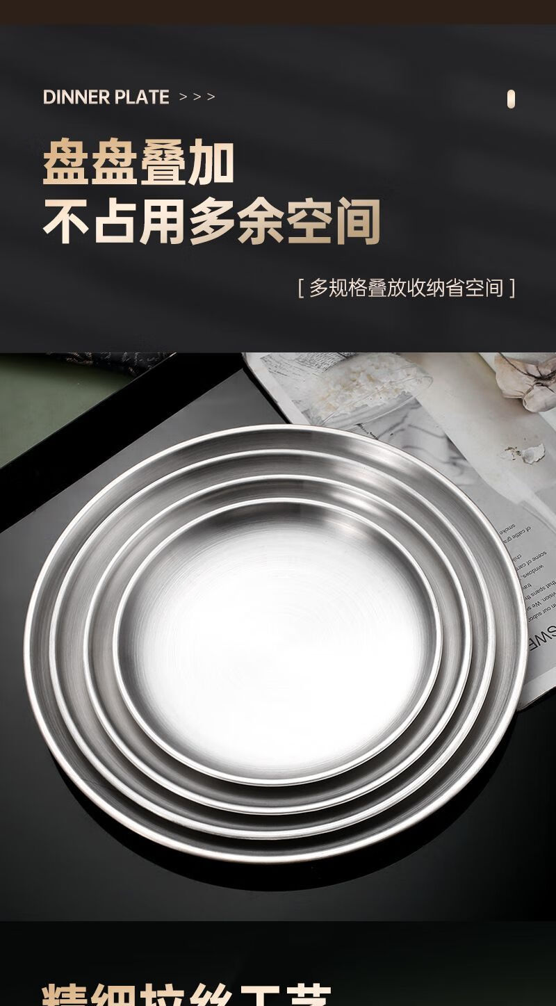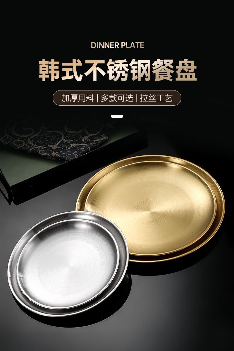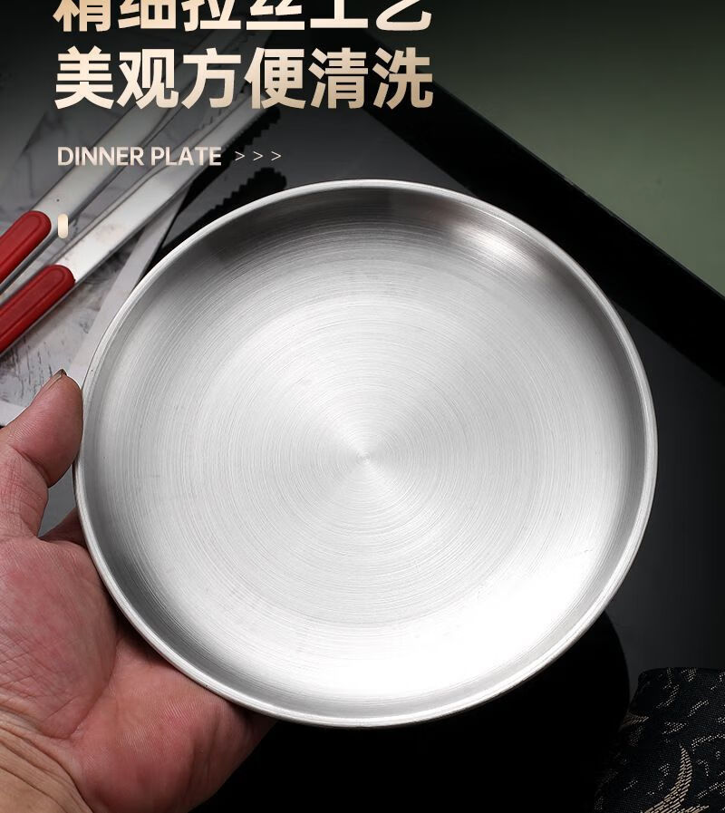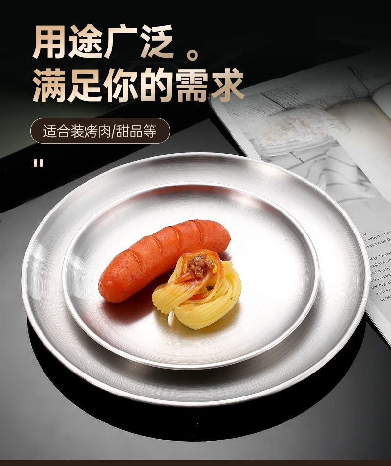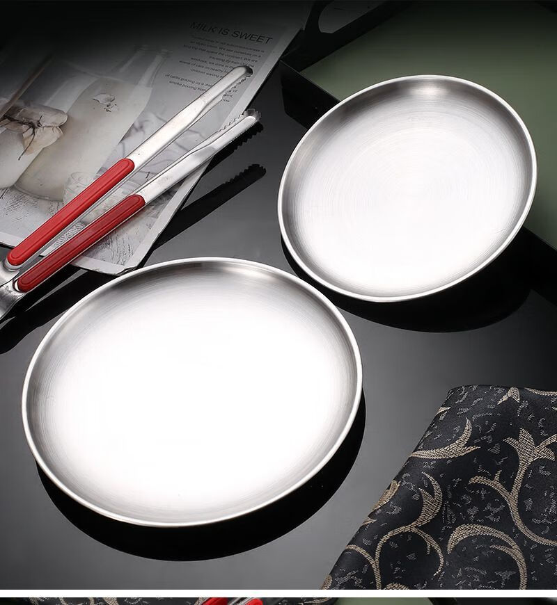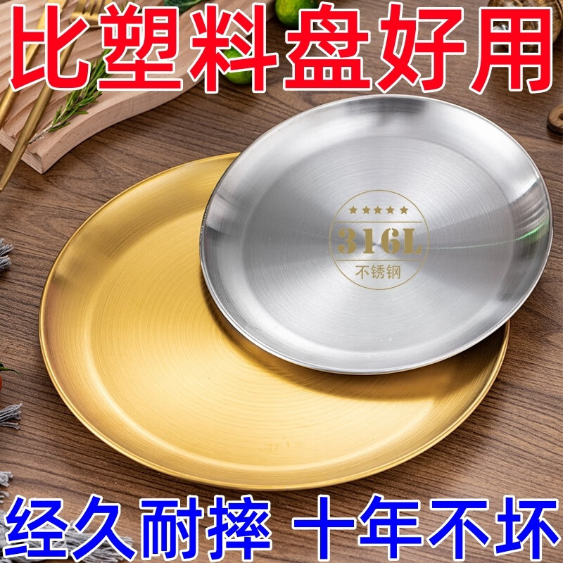 Zixian Korean 316 stainless steel plate golden barbecue thickened round plate shallow plate steak kitchen meal tray brushed silver color steel/high temperature resistance/corrosion resistance export diameter 16.85cm 5 pieces