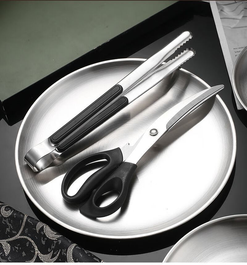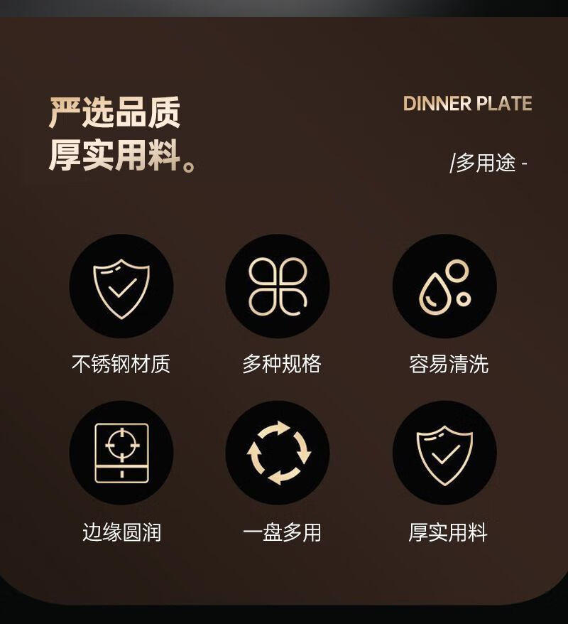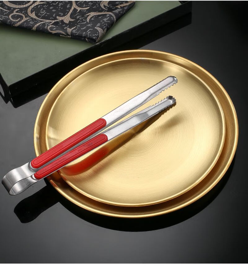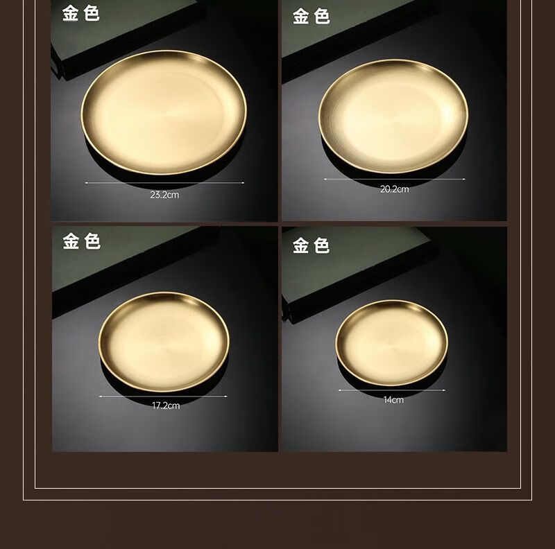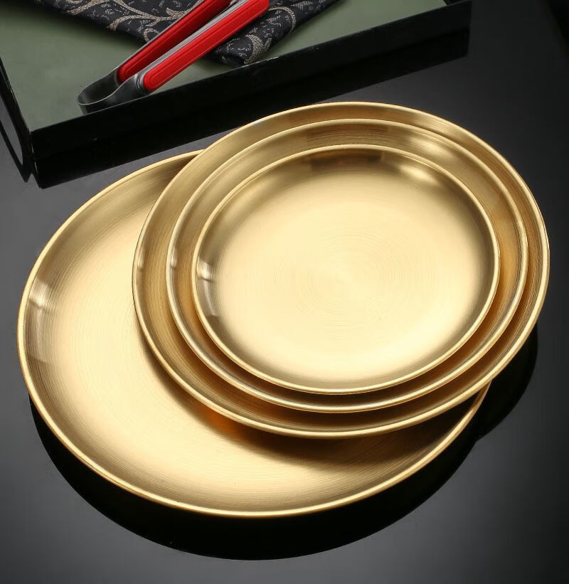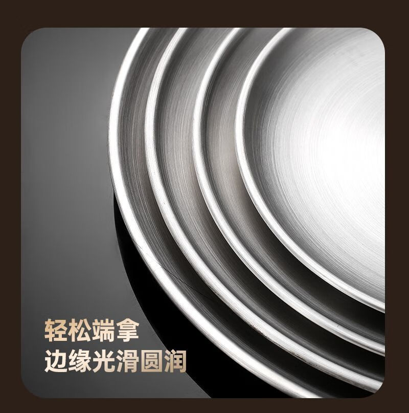Zixian Korean 316 stainless steel plate golden barbecue thickened round plate shallow plate steak kitchen meal tray brushed silver color steel/high temperature resistance/corrosion resistance export diameter 16.85cm 5 pieces