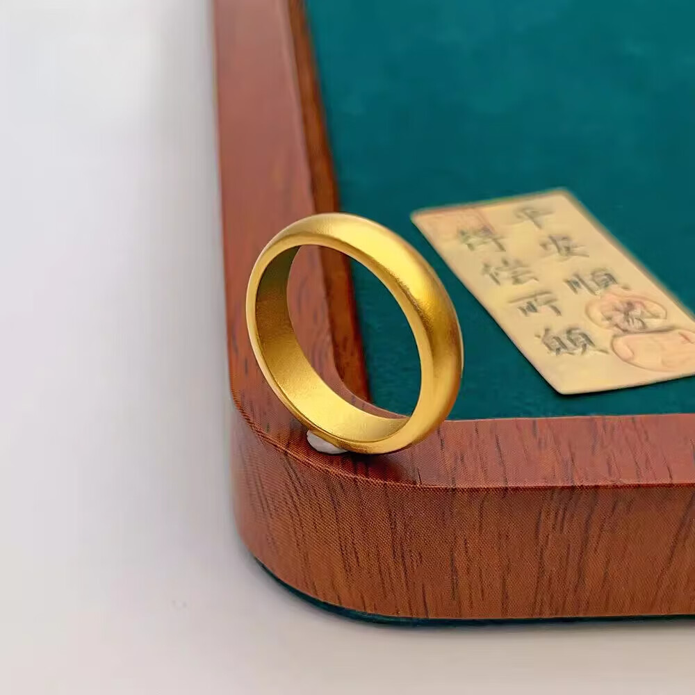 Fat Donglai's same style 18K gold plain ring, Hong Kong duty-free 999 ancient method 18k ring for male and female couples, plain ring, wide face, No. 7