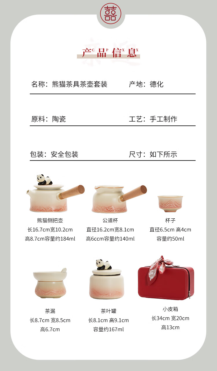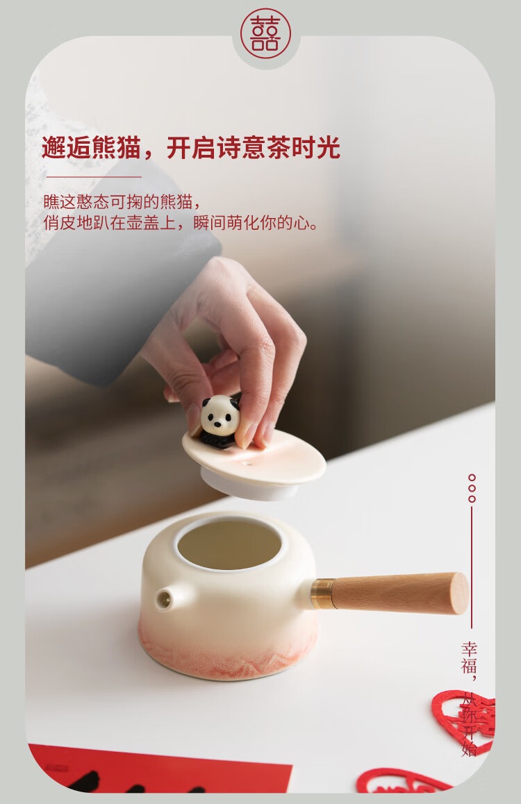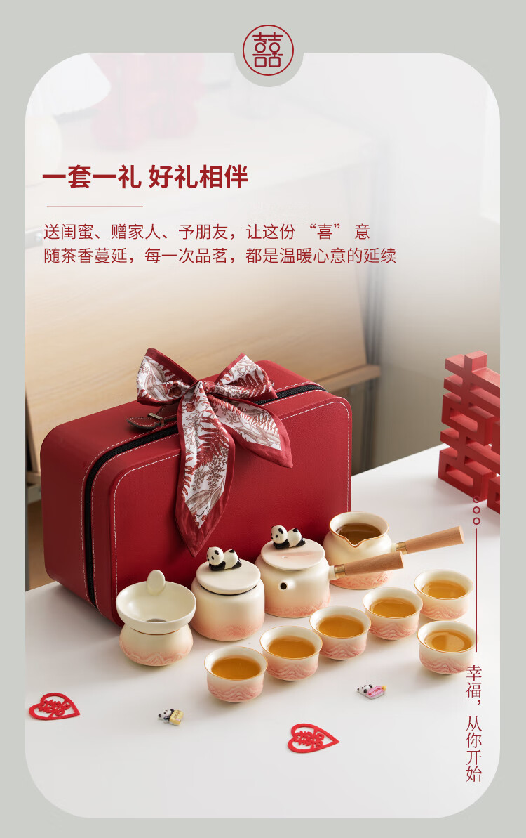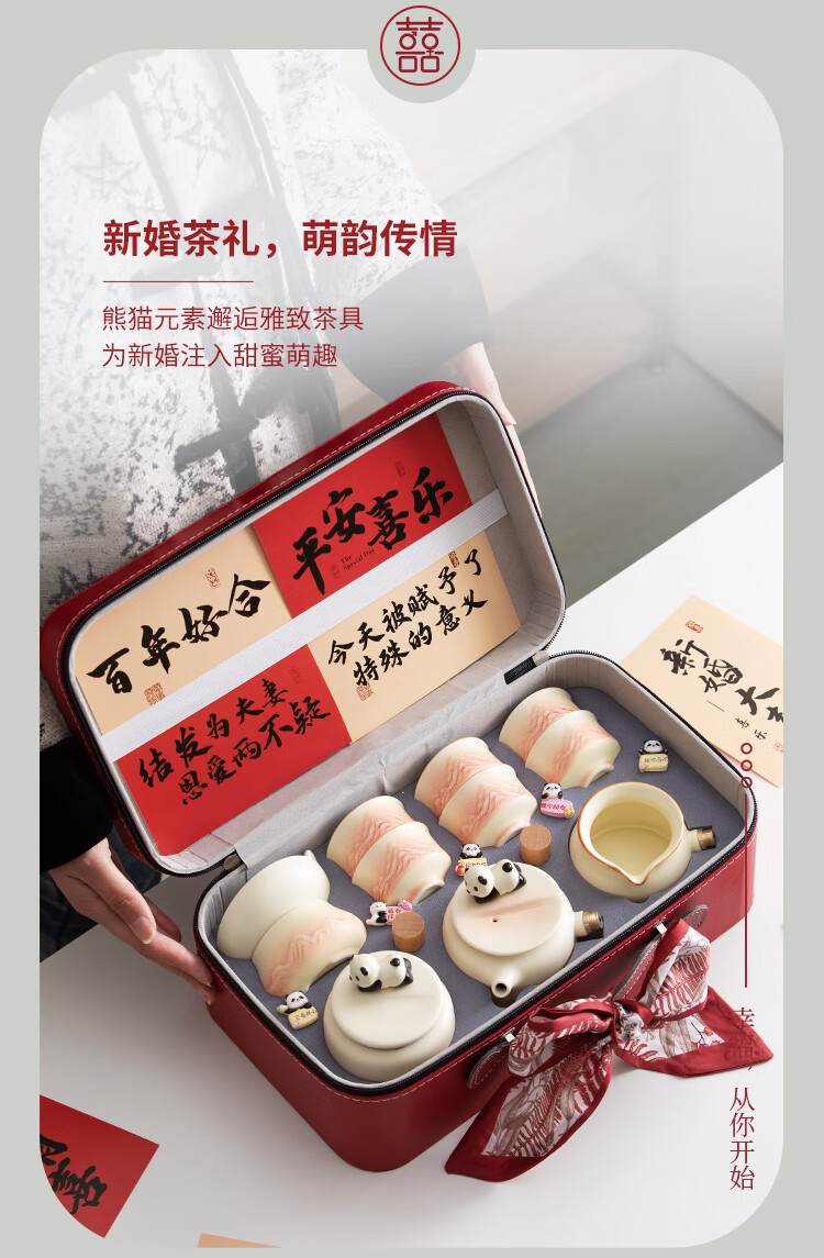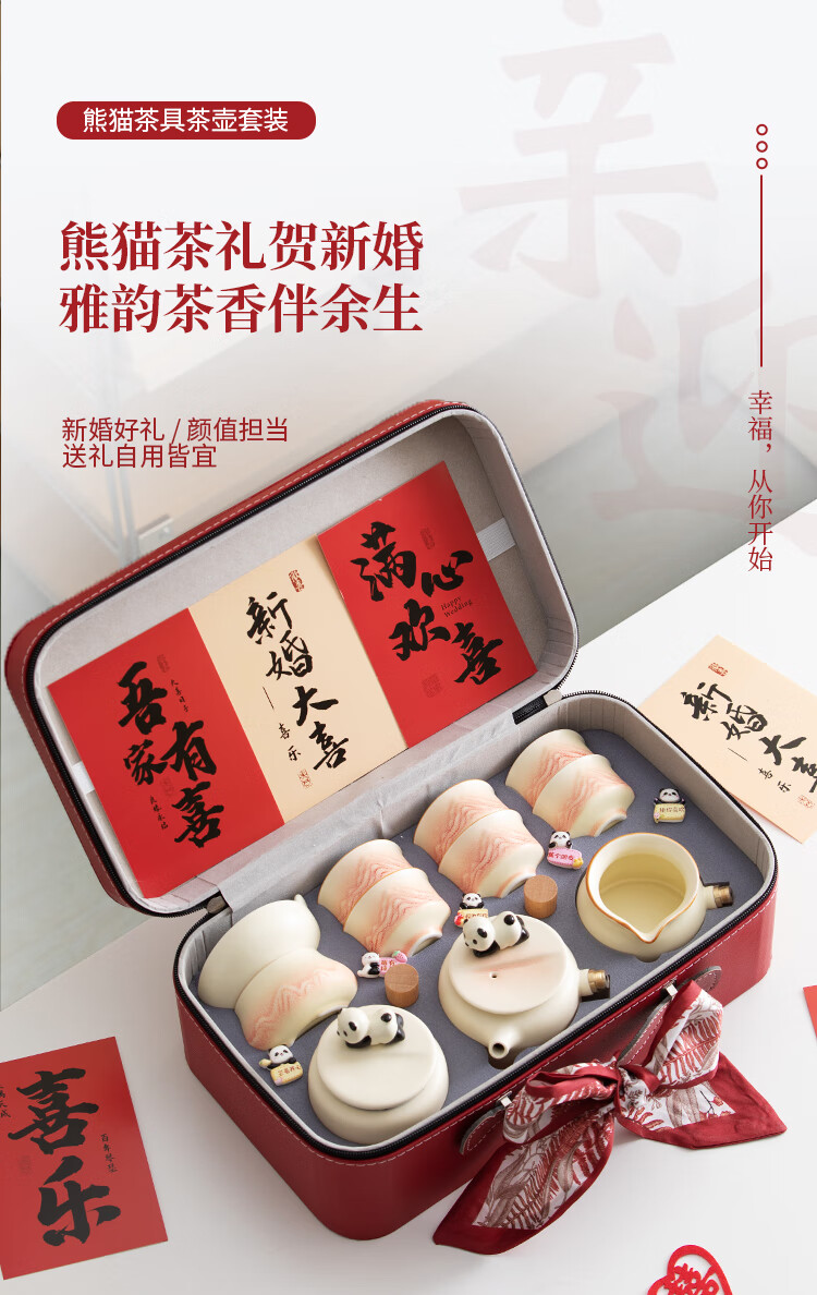 The Legend of the Pot is a special wedding gift for the newlyweds, a wedding tea set, a bride's best friend's engagement gift, a practical wedding gift - Panda Tea Set, Teapot Set + Plate (Small Suitcase)