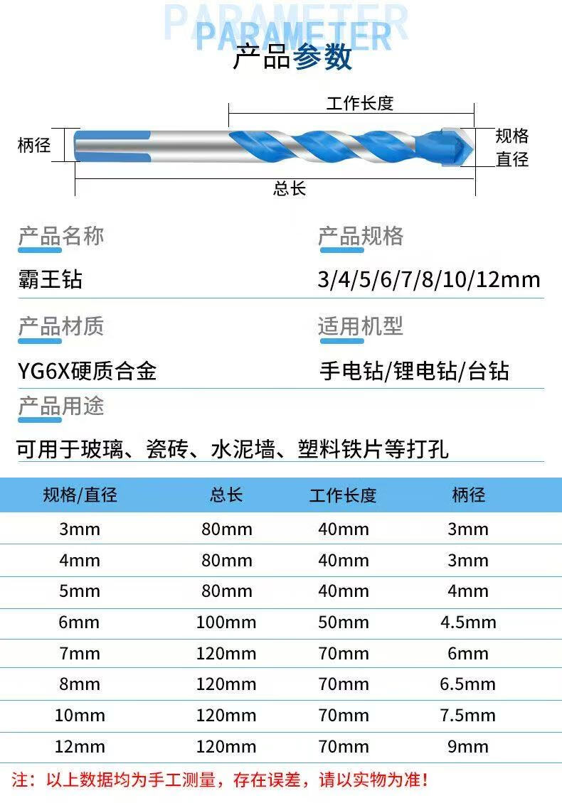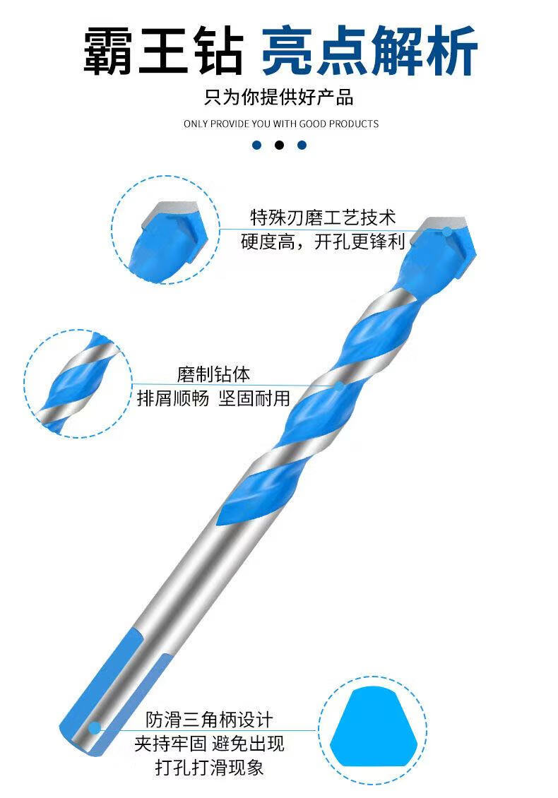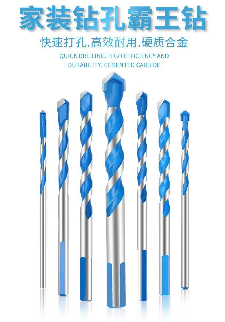 Hard overlord drill triangular handle wall brick cement wall reinforced glass tile special alloy drill bit drilling artifact blue overlord drill 5mm 1 piece