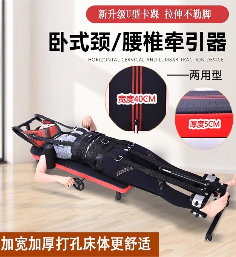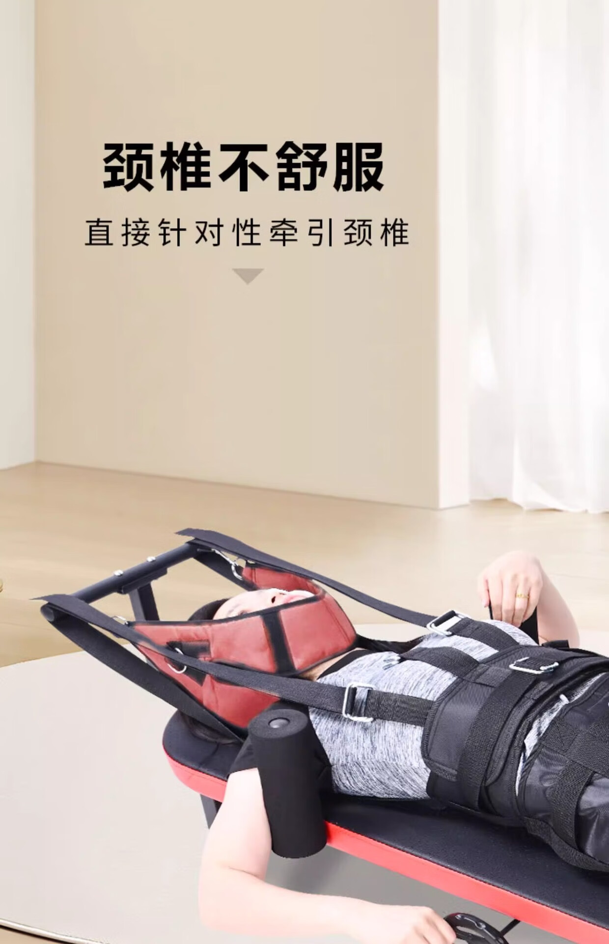 Cervical and lumbar stretching device, home hanging neck artifact, leg lifting and inversion machine, correction, rehabilitation and soothing bed, flagship model, lumbar and cervical spine + U clamping feet + lumbar cushion + straps