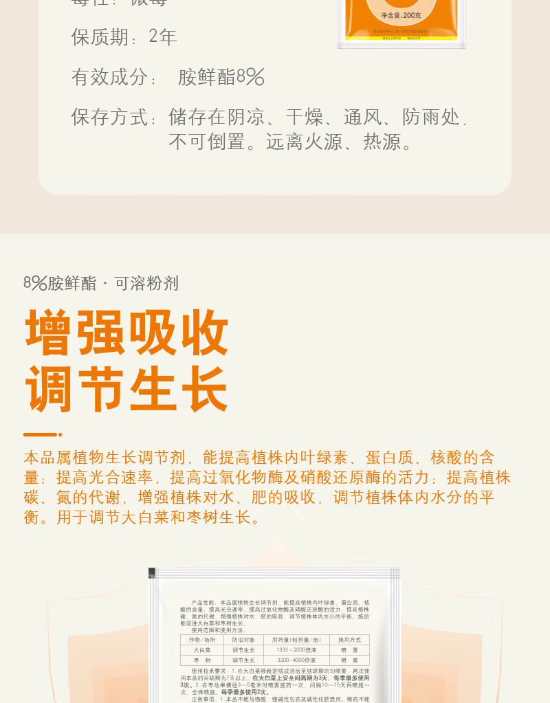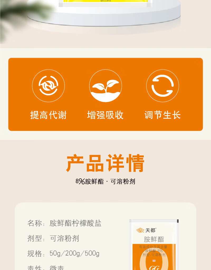 Guoguang Tiandu 8% amino acid ester increases photosynthetic rate, chlorophyll synthesis, Chinese cabbage, jujube tree regulates growth, official authentic product 10g*2 bags