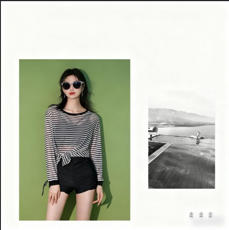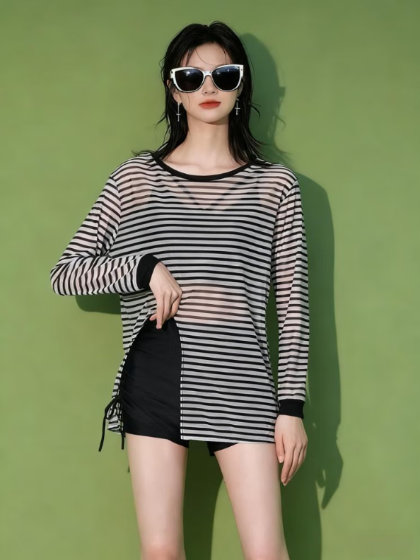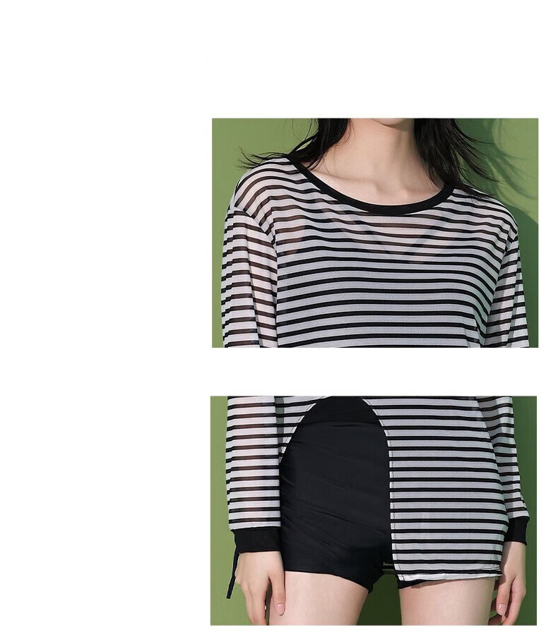 Bo Naling swimsuit women's long-sleeved sunscreen hot spring covering the flesh conservative sports slimming swimsuit equipment beach swimsuit set striped swimsuit three-piece set one size 80-120Jin Jin is equal to 0.5 kg