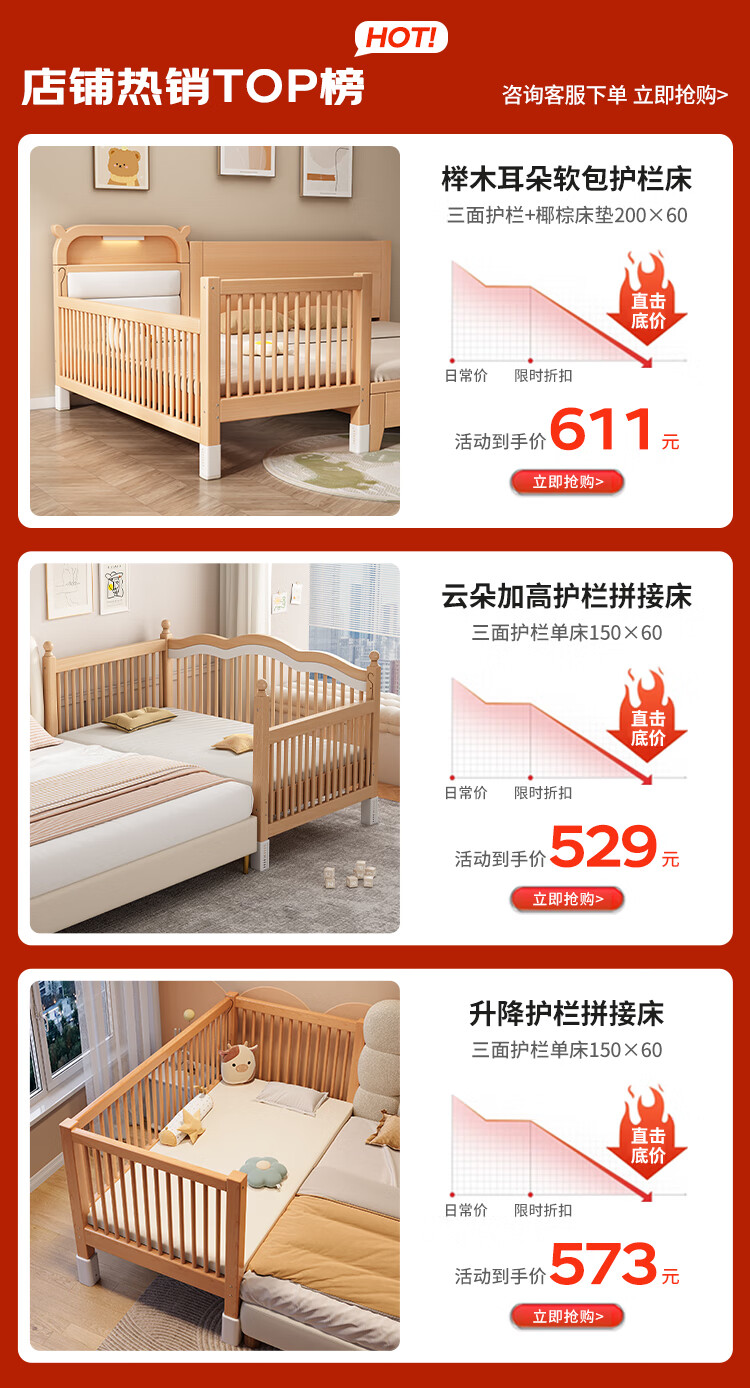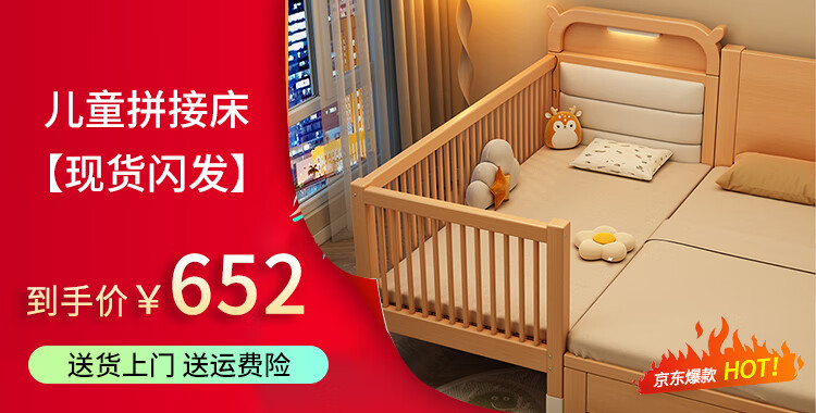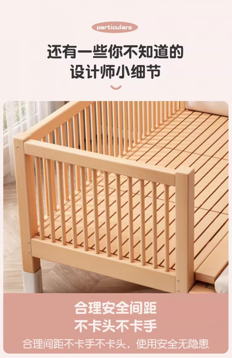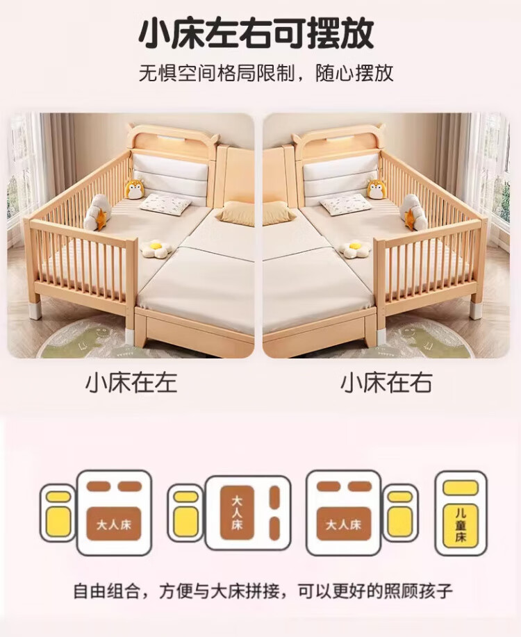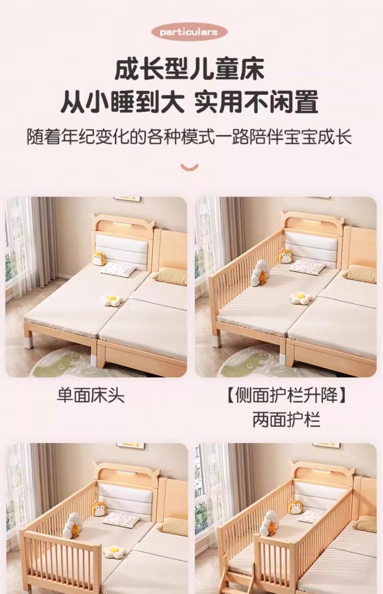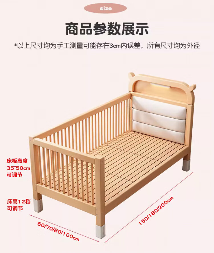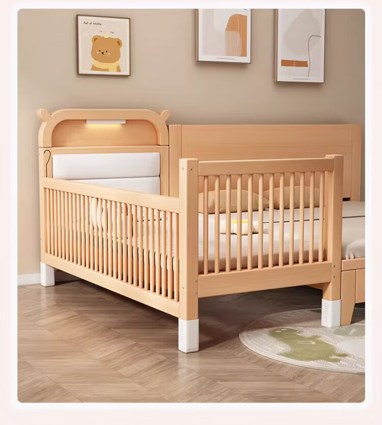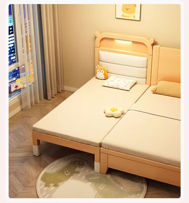 Yiqing Fangze children's spliced bed solid wood liftable crib with guardrails and widening for adults to sleep on seamlessly connected bedside bed with three side guardrails, side lifting + 5cm coconut palm mattress (recommended by the store manager), free light + SF Express 200x60cm