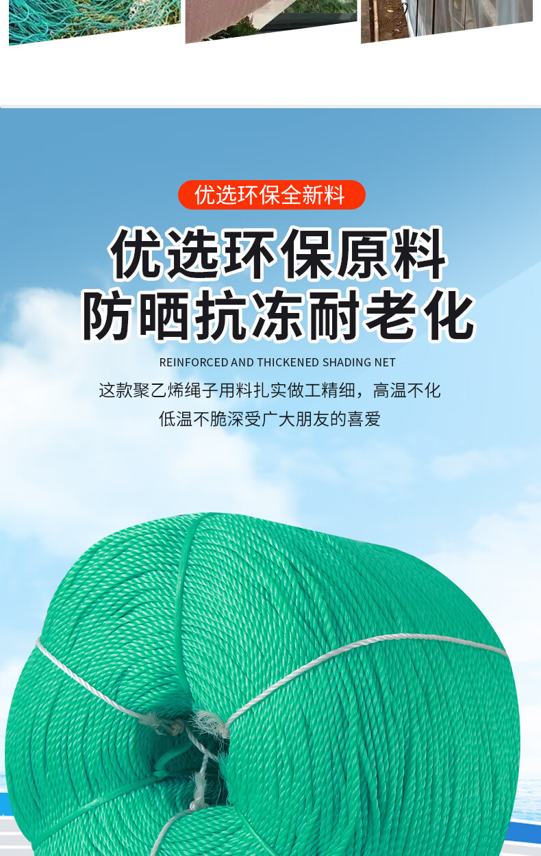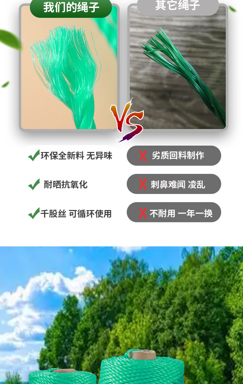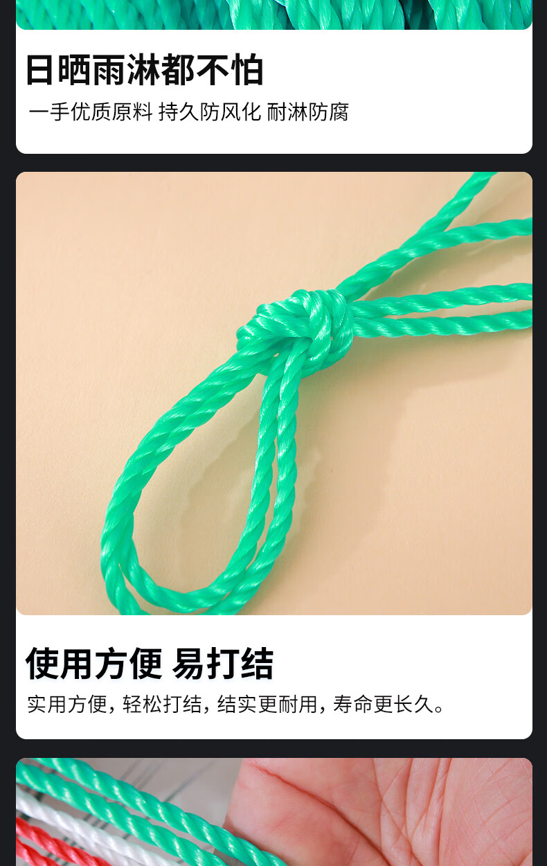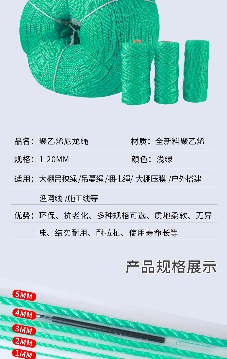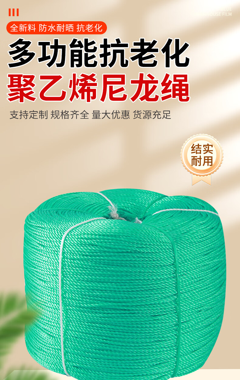 Rope, nylon rope, greenhouse, fruit and vegetable hanging rope, climbing rattan rope, fishing net rope, threading and packing rope, thin rope, wear-resistant, new material, 2mm thick, 100 meters, can be marked red, white, green