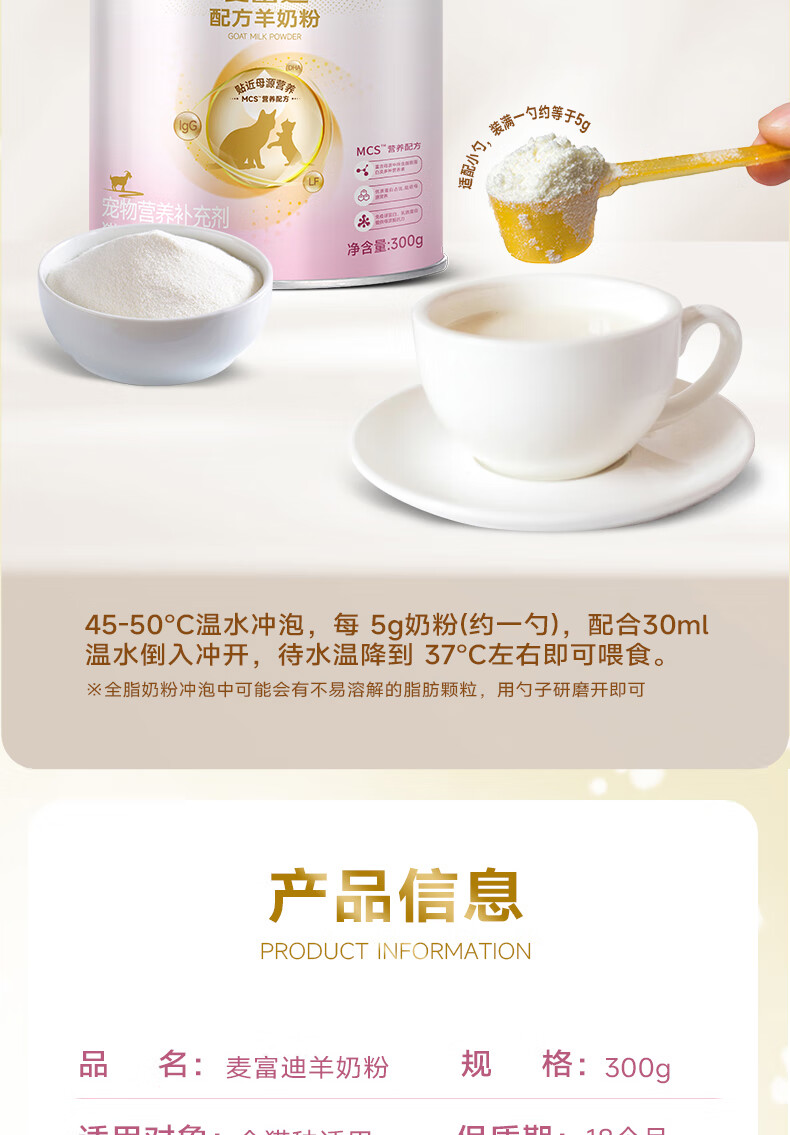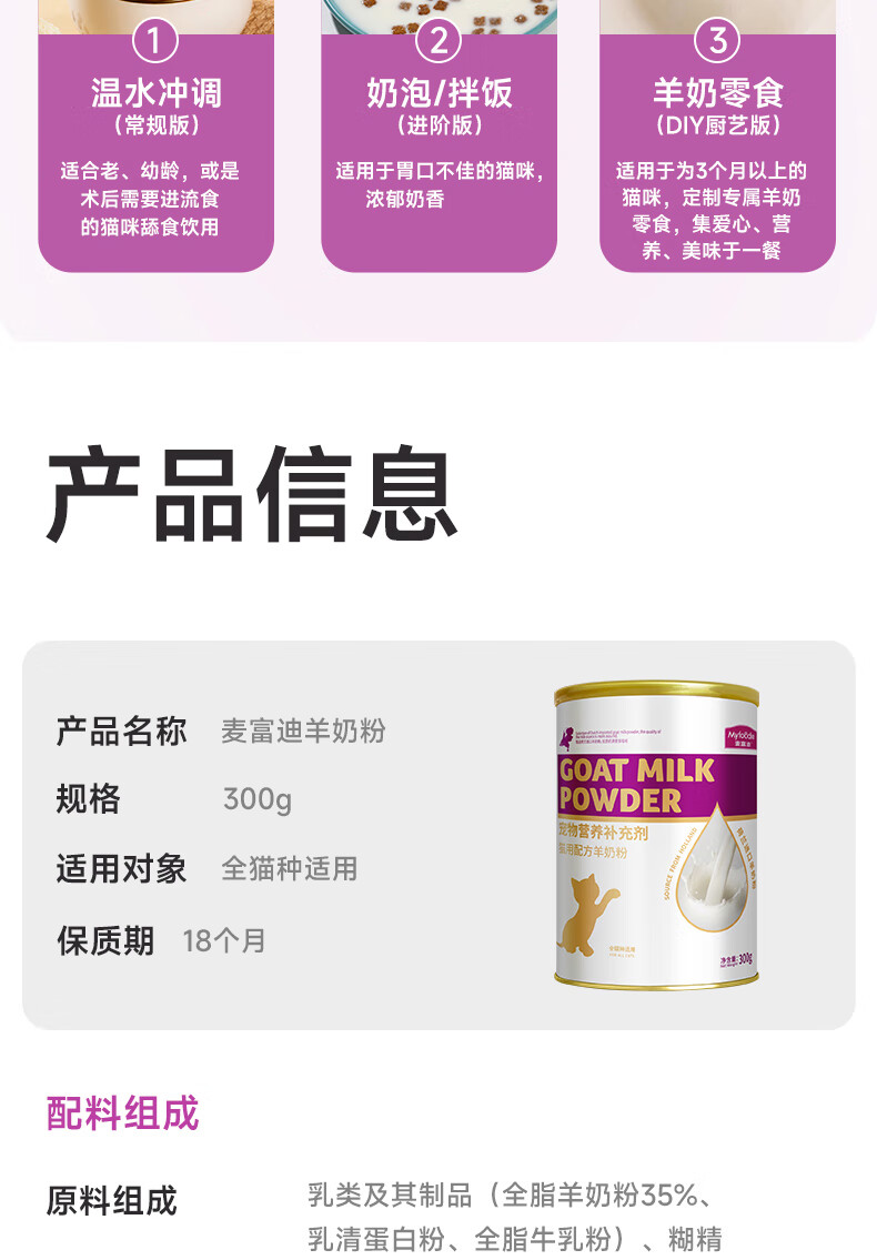 McFoody Cat Goat Milk Powder Kitten Pregnancy Nursing Cat Nutritional Supplement Pet Kitten Milk Powder Try MCS Nutritional Milk Powder 30g