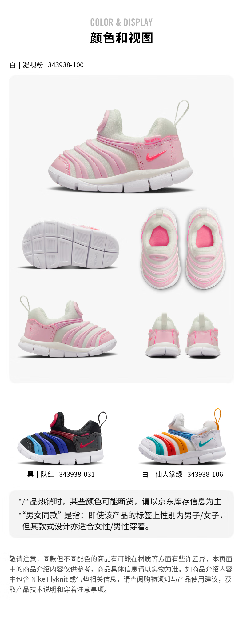 Nike caterpillar baby lightweight soft-soled sports shoes for boys and girls in winter, easy to put on and take off, NIKE 343938 031 black/team red/university blue/light grass pink 25
