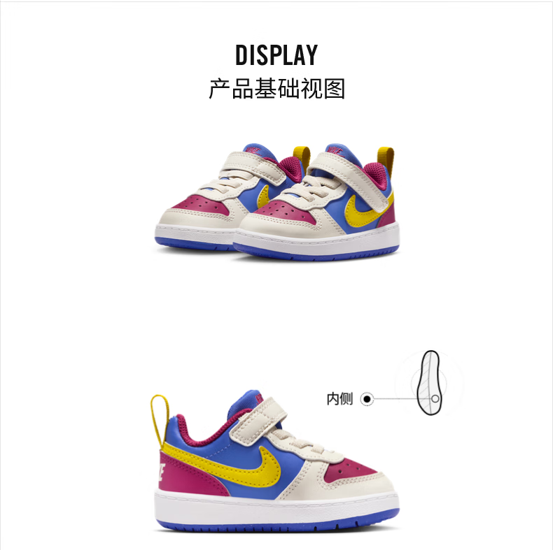 Nike Cool Pineapple Baby Low-top Flat Sneakers Velcro Winter Boys and Girls NIKE COURT IM2183 633 Beet Red/Bright Yellow/Pearl Gray/Comet Blue 23.5