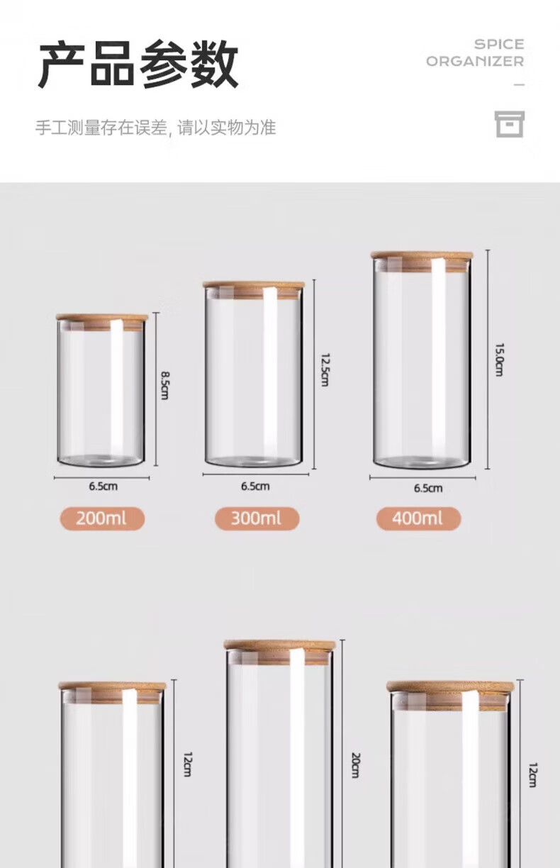 JCZS spice packaging storage box seasoning jar seasoning box kitchen household star anise cinnamon pepper condiment seasoning jar jar large 6 pieces 8.5 caliber 550ml
