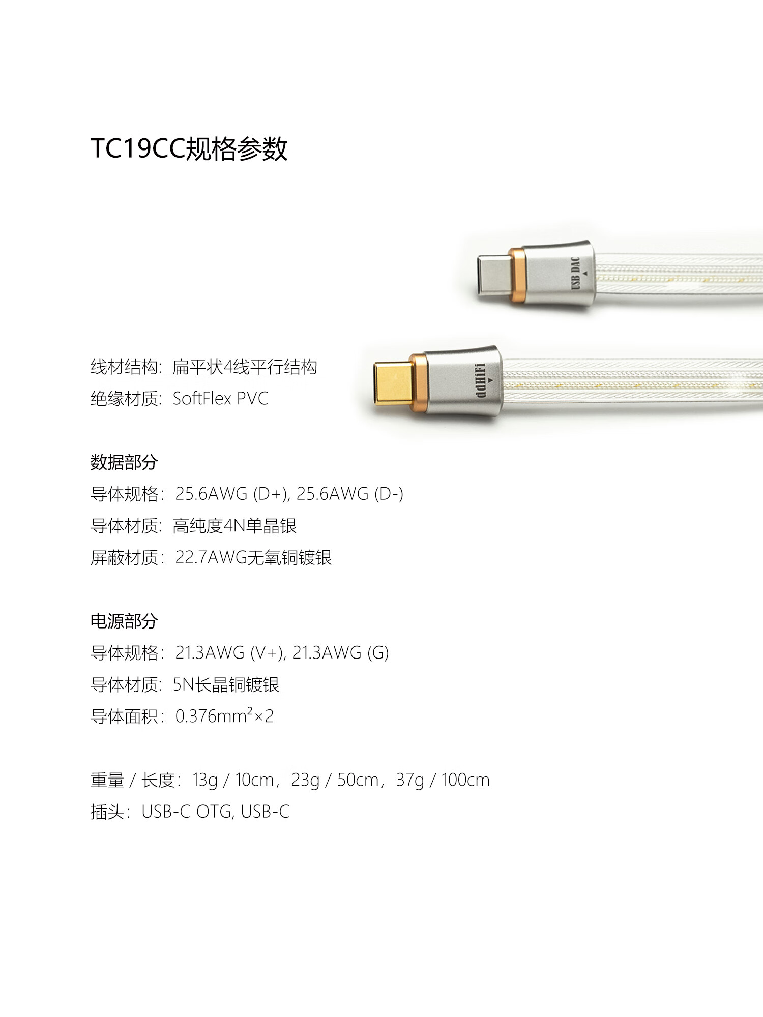 DdHiFi TC19CC Dual USB-C HIFI double shielded decoding sterling silver audio signal upgrade cable 10cm
