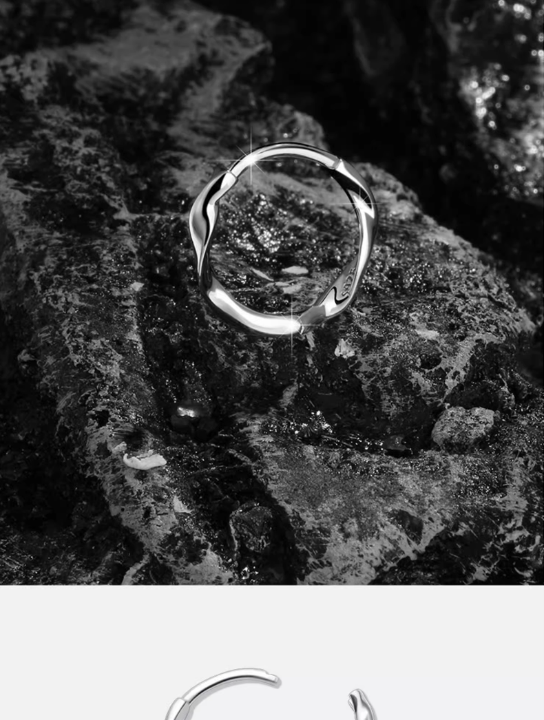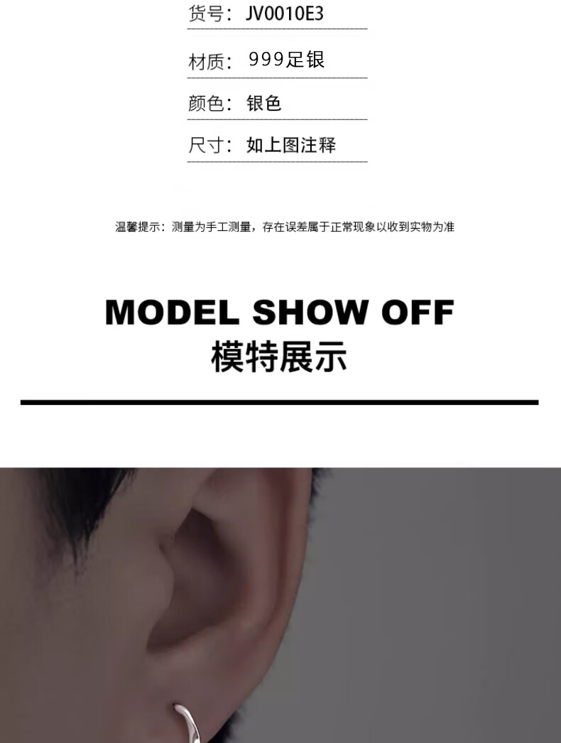Liangshihuan S999 sterling silver earrings for men single pure silver ear piercing high-end Mobius earrings boys hoop earrings single