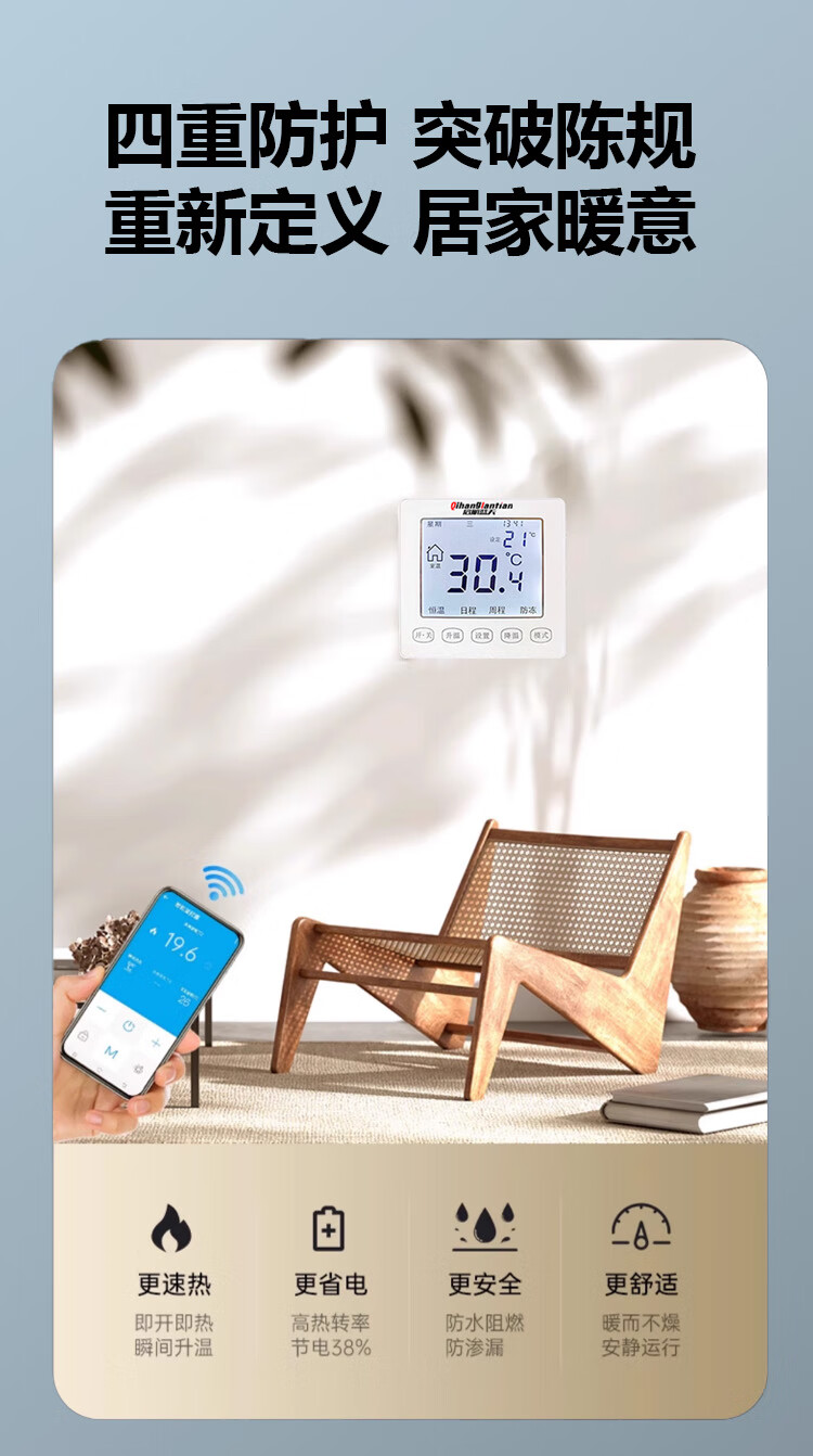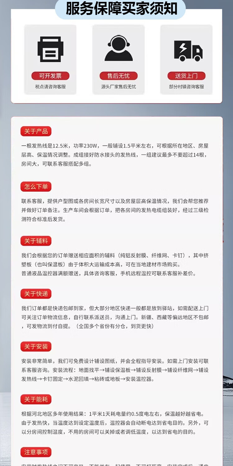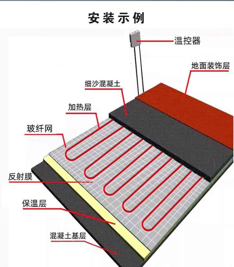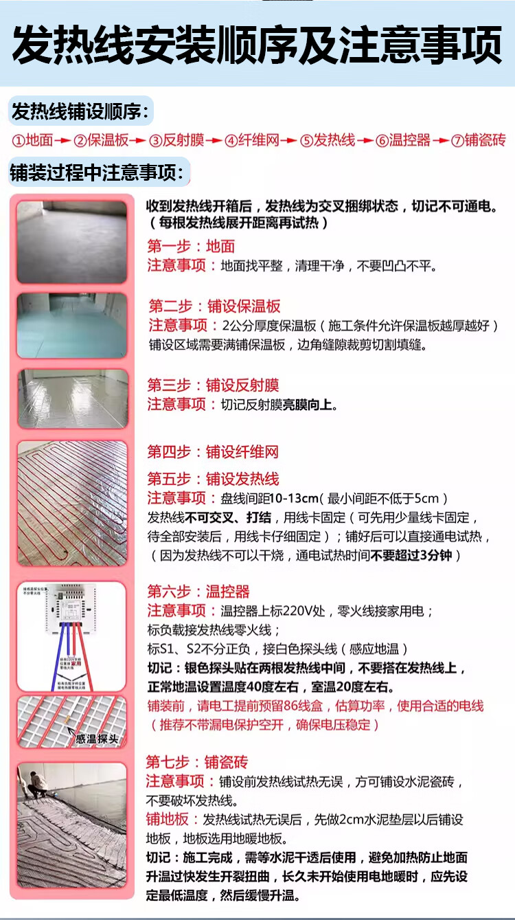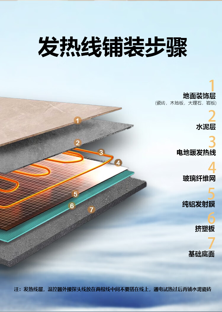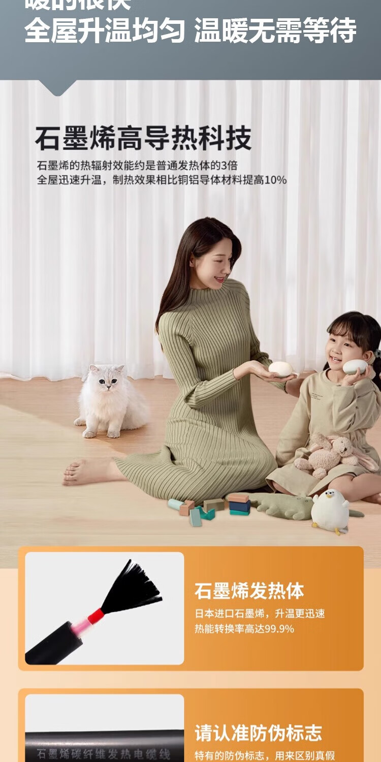 启航蓝天电地暖石墨烯地暖家用金铠甲地热线节能环保发热地暖省电式发热线 3根线适用6.8㎡【1020瓦】