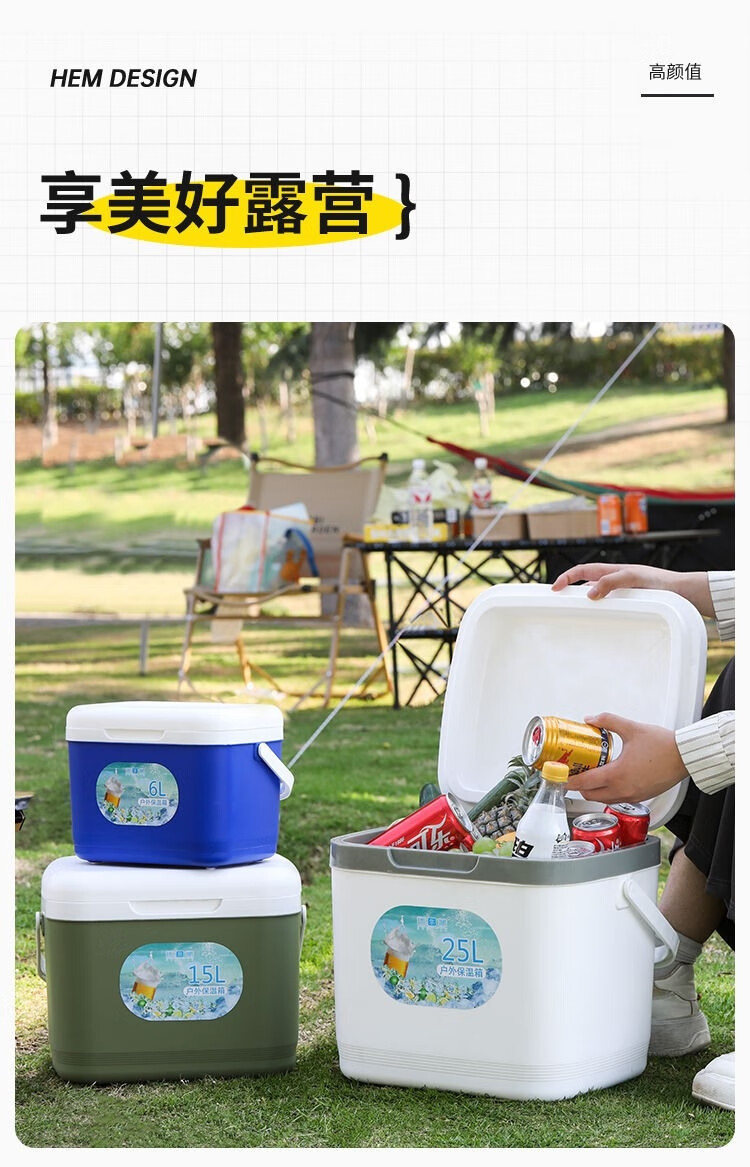 XMSJ insulated box refrigeration 72 hours commercial stall car outdoor fresh fishing fishing portable camping home ice bucket 15 liters free 8 ice bags + 2 ice plates blue