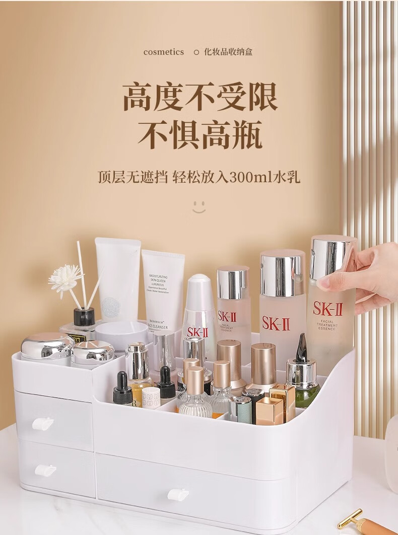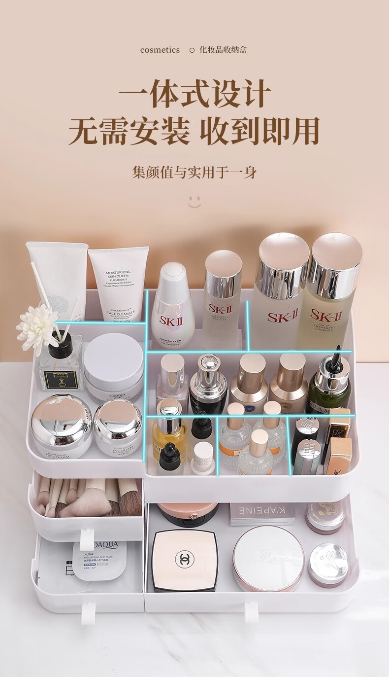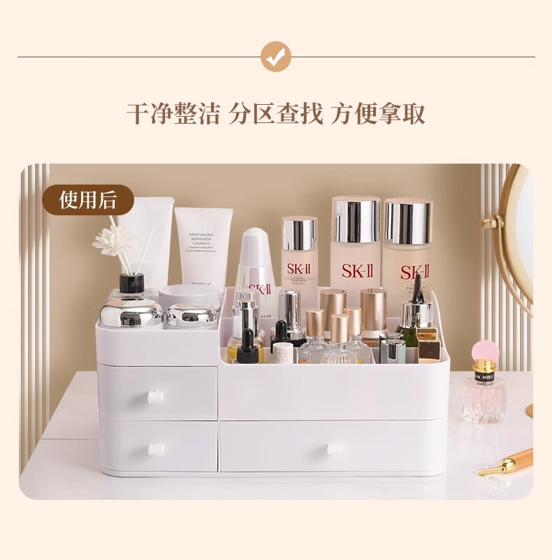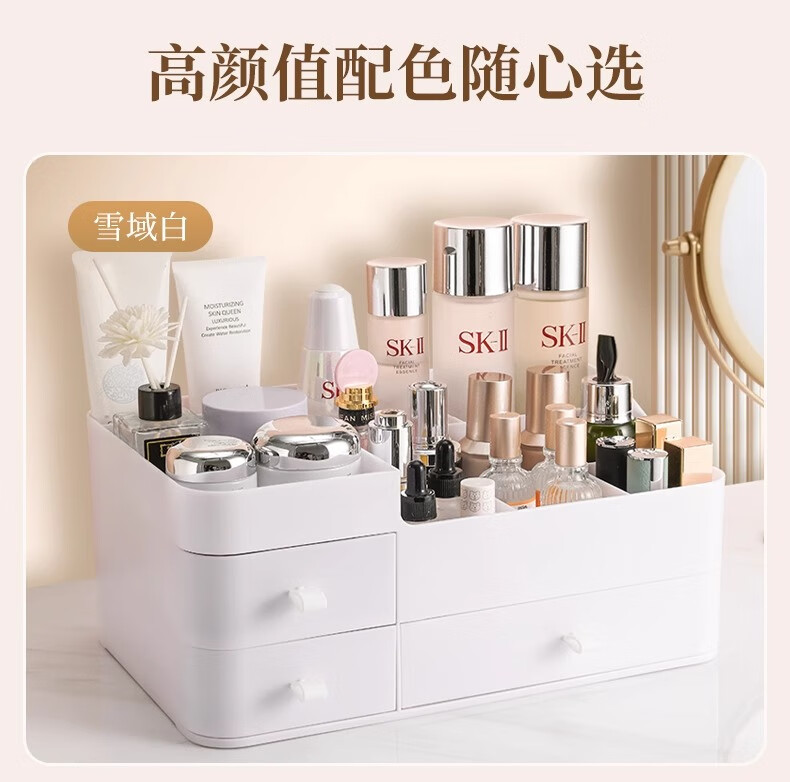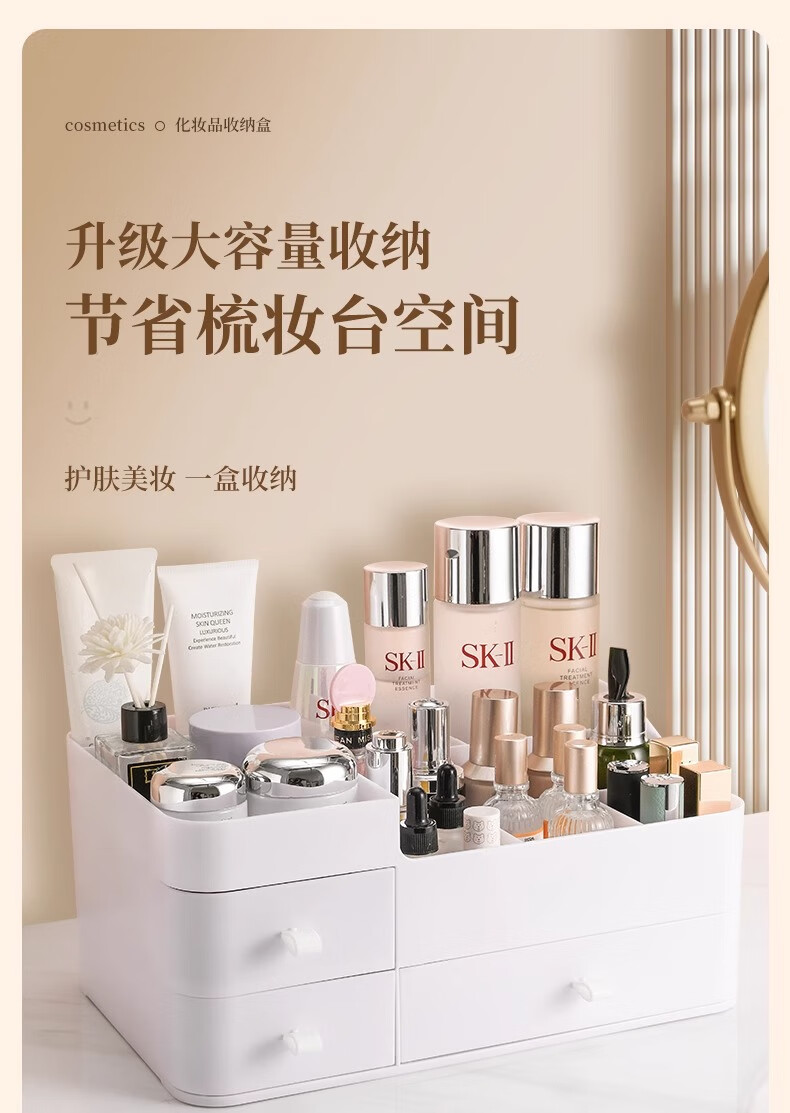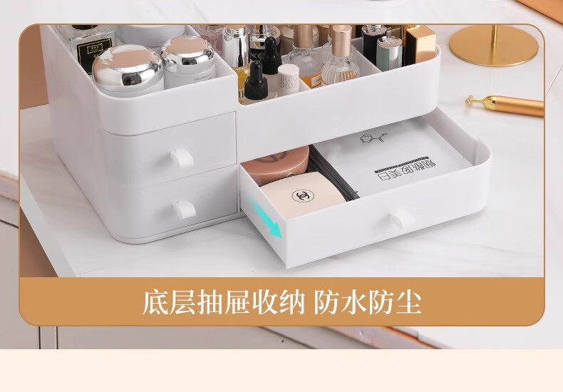 Cosmetic storage box desktop drawer-type dresser shelf lipstick small box skin care product compartmentalization box luxury large white three drawers large capacity can place facial masks