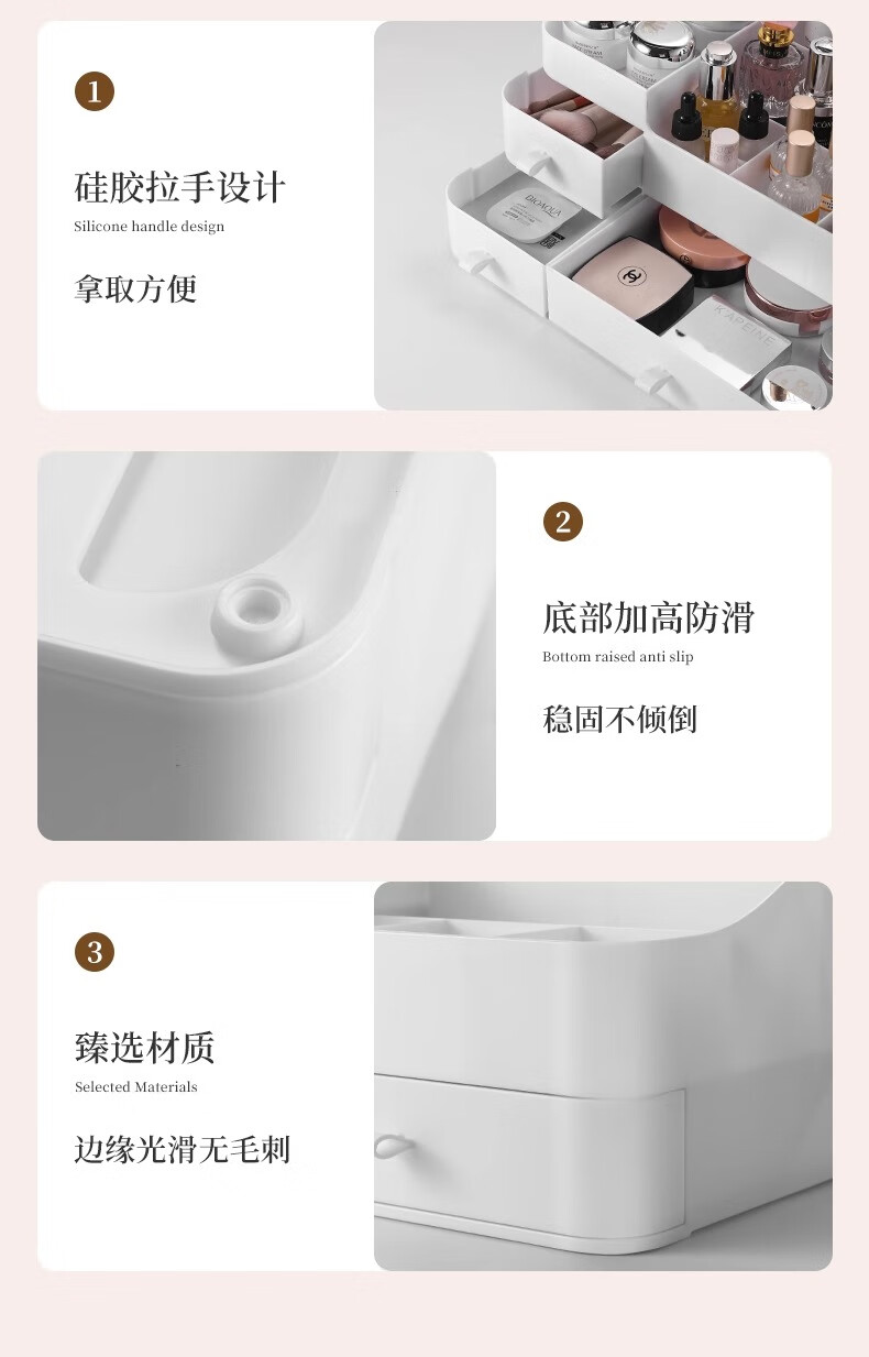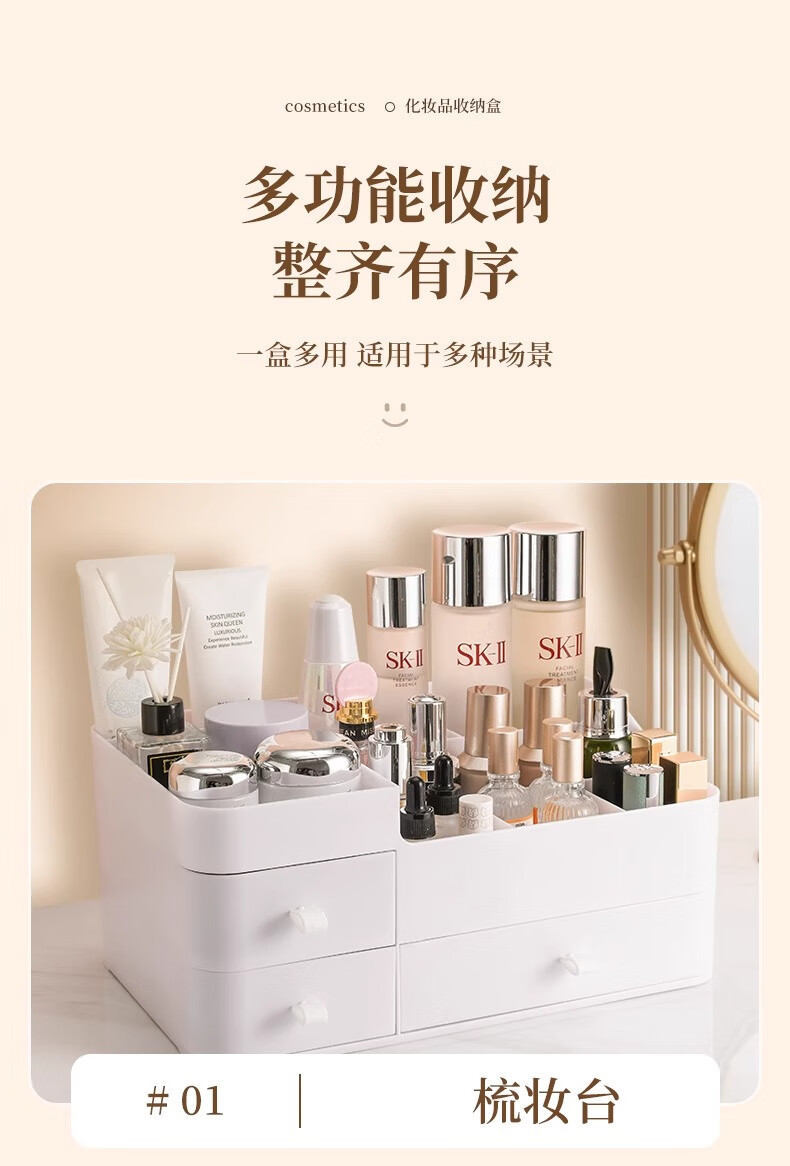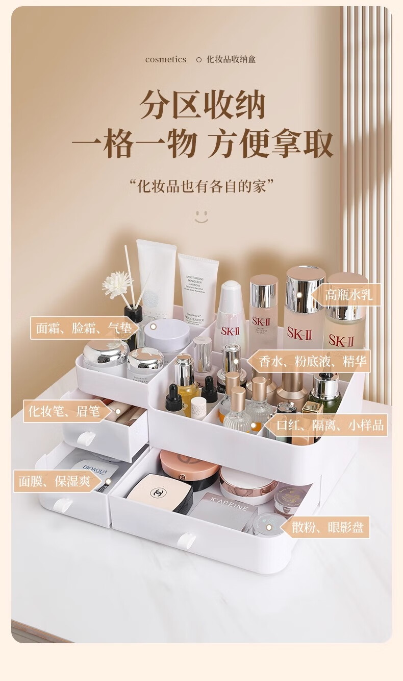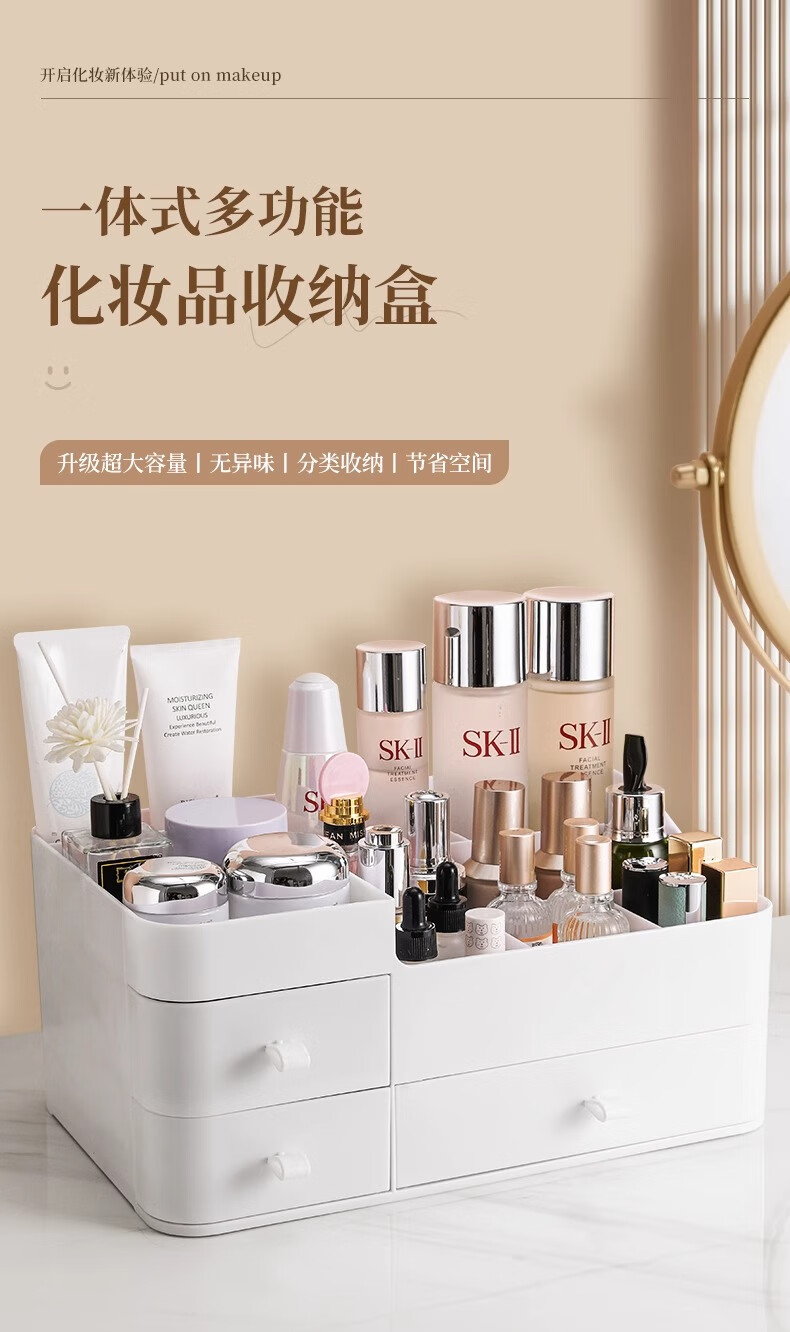 Cosmetic storage box desktop drawer-type dresser shelf lipstick small box skin care product compartmentalization box luxury large white three drawers large capacity can place facial masks