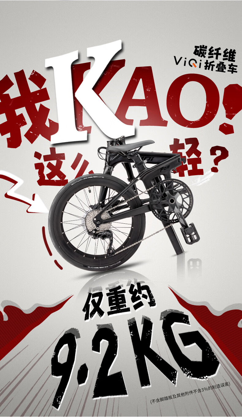 VIQI Wei Qi carbon fiber folding bicycle 20-inch 11-speed oil brake urban commuter male and female adult student ultra-light bicycle Lan Ye Queyu-11 speed-Germany Schwen yellow tire