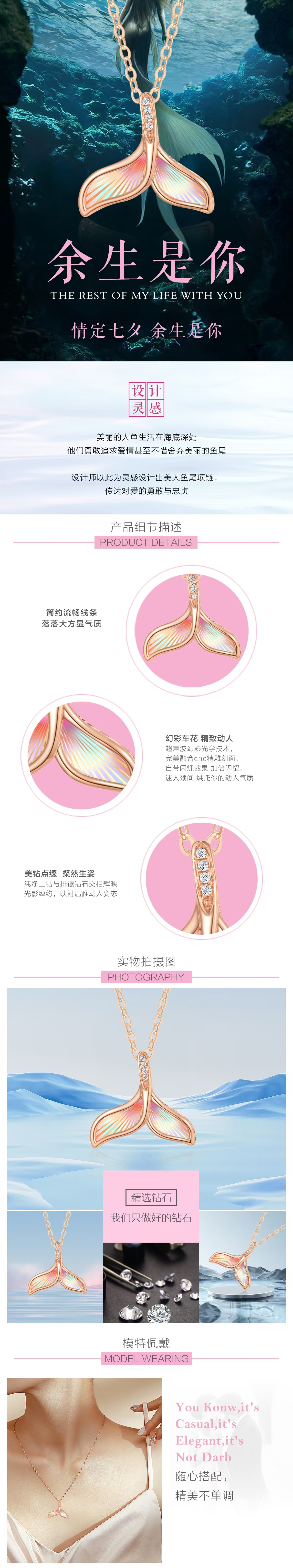 I Do 18K gold diamond fishtail pendant Z00027 temperament light luxury fashion niche pendant inlaid with fairy S925 chain + pendant