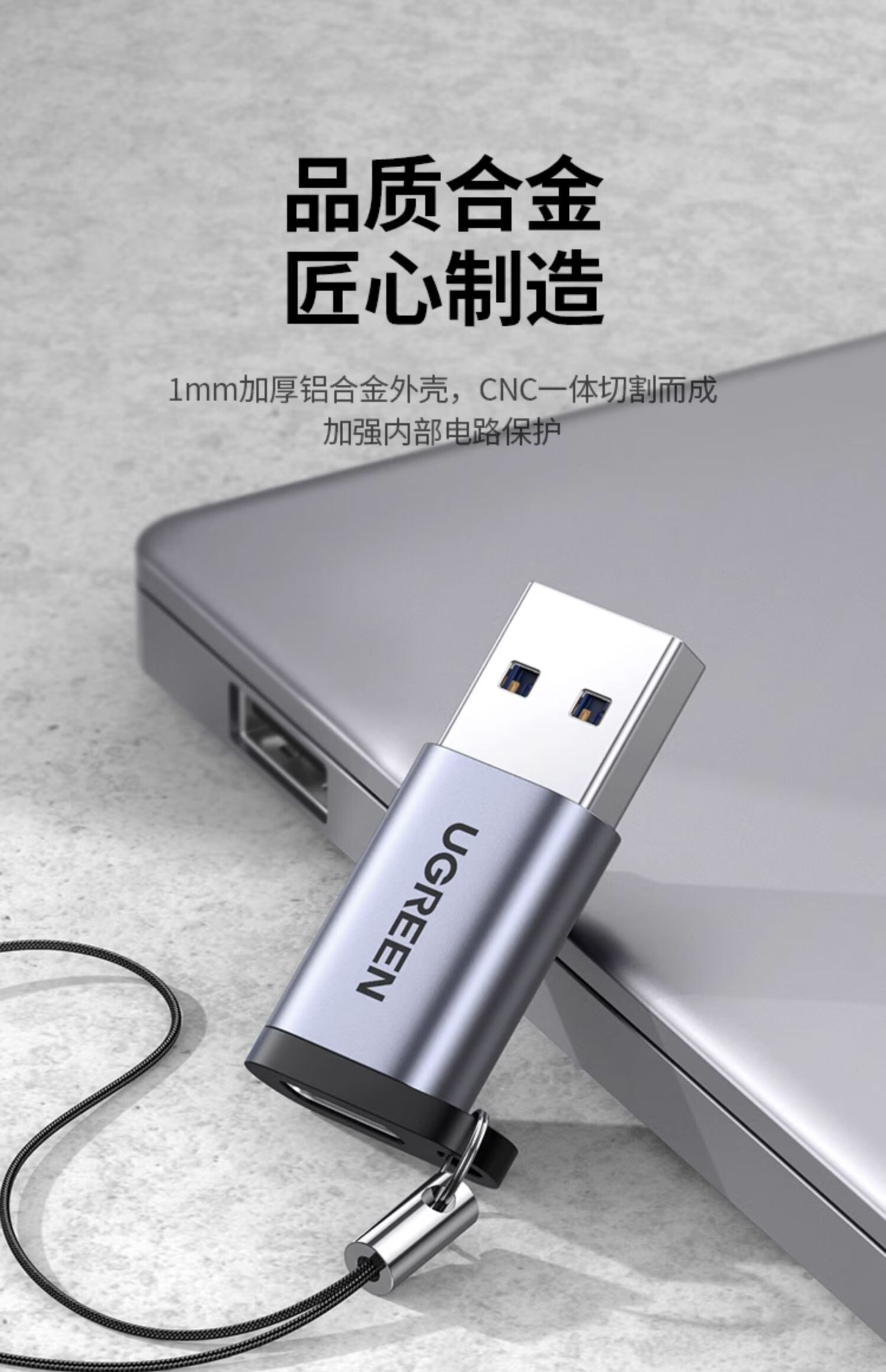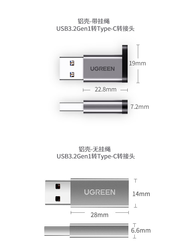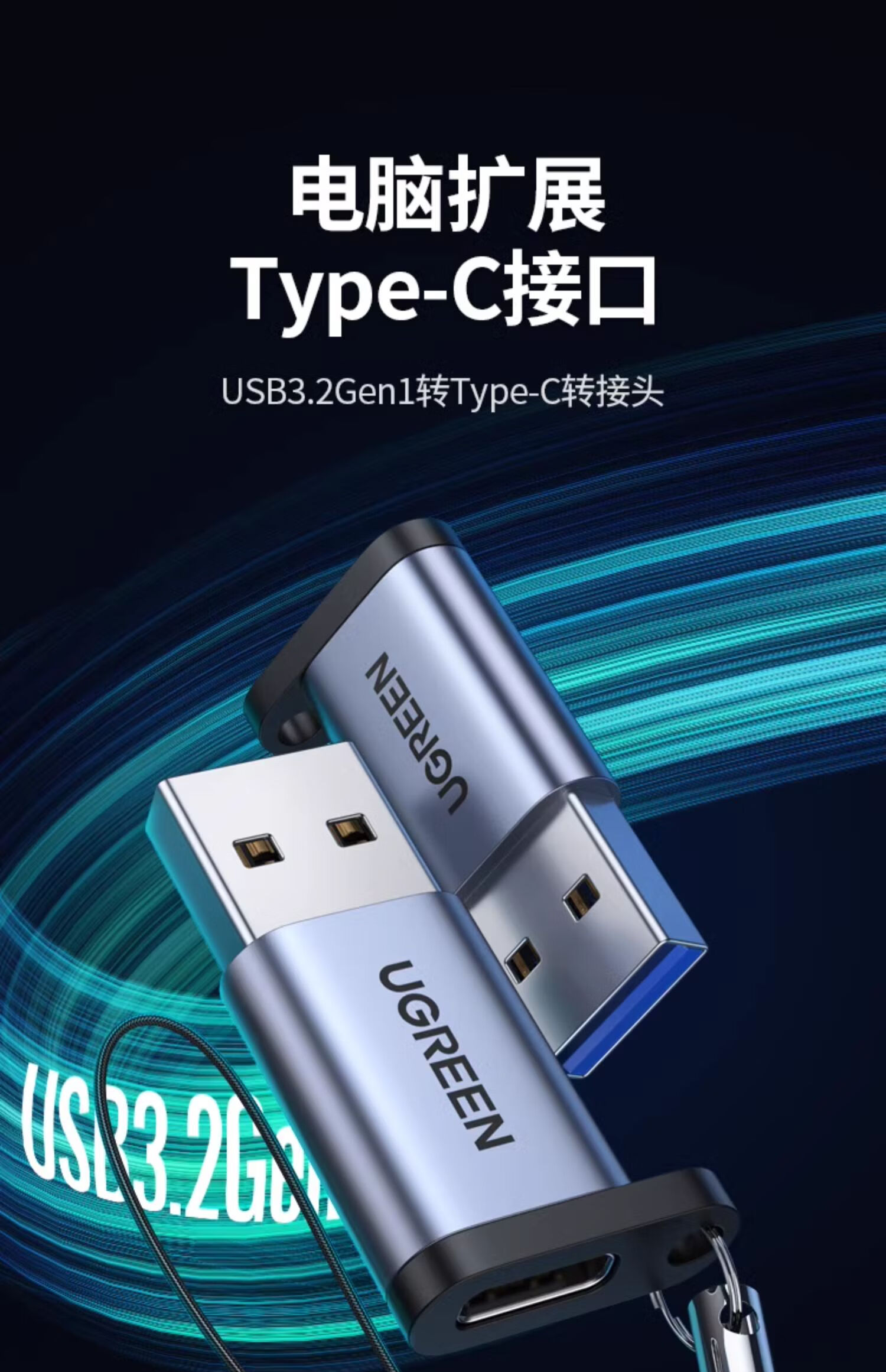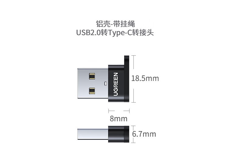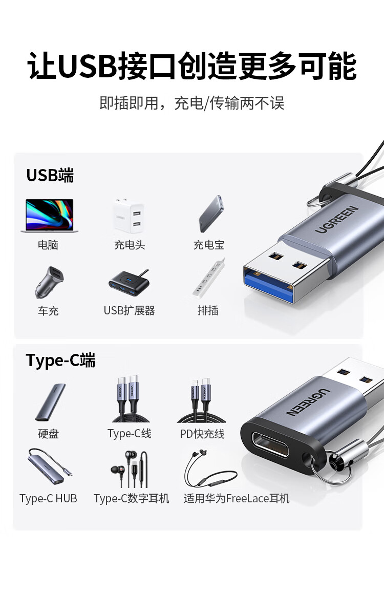 UGREEN Type-C to USB3.0 Data Cable Adapter Android Charging Headphone Converter Suitable for Apple 16iPhone15ProMax Charging Cable Car OTG Port USB3.2 to Type-C Matte Black 55618