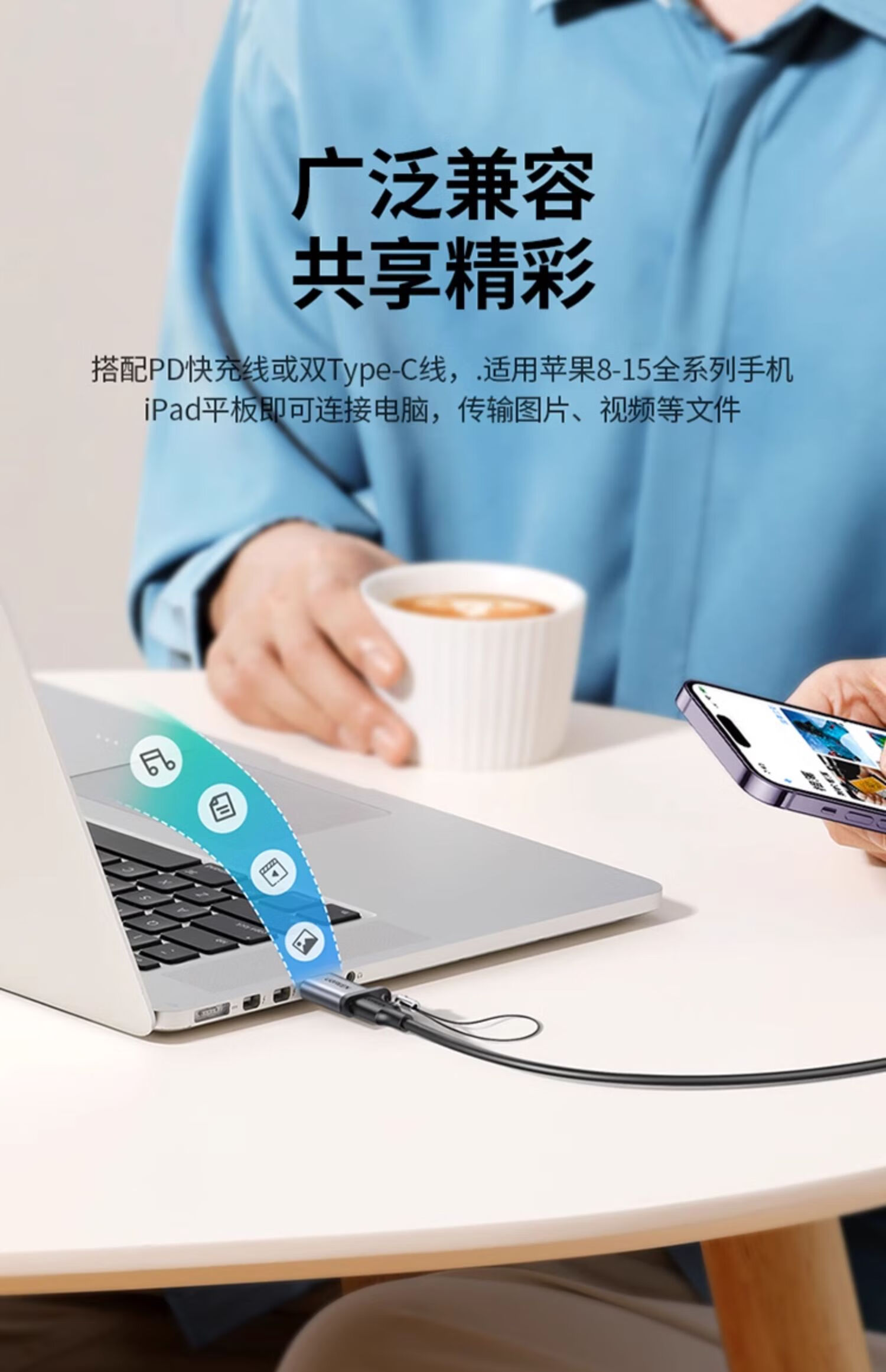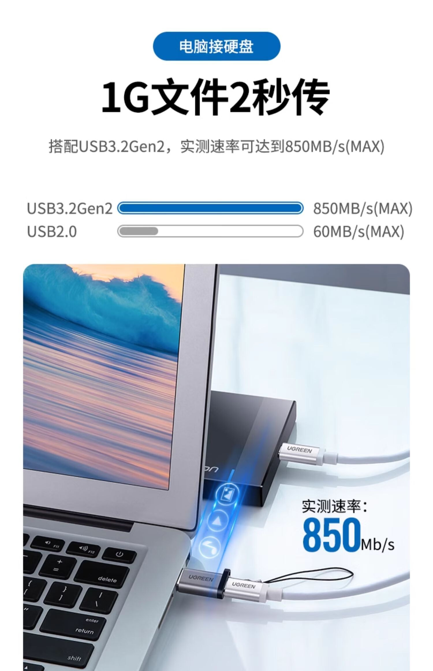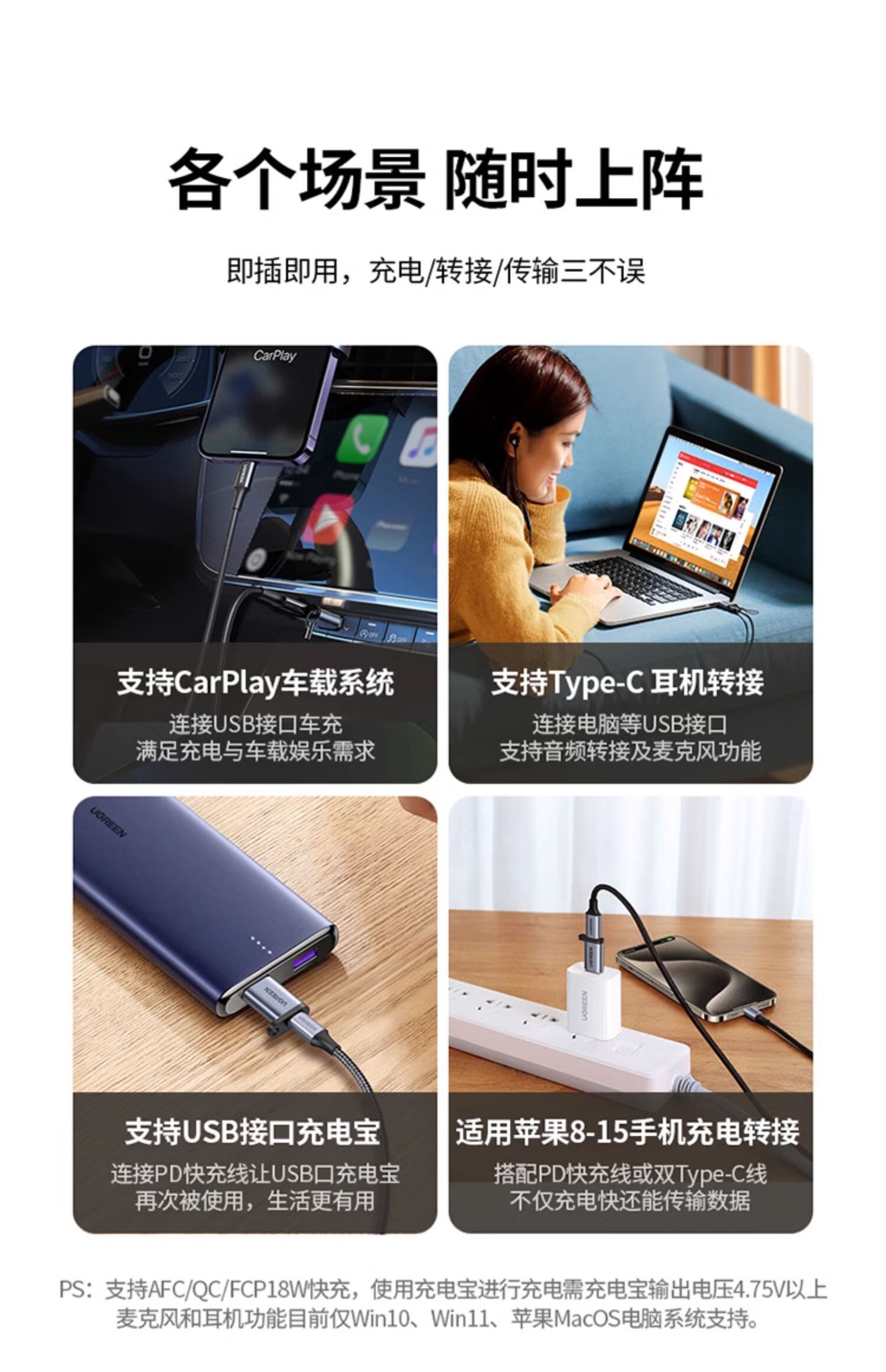 UGREEN Type-C to USB3.0 Data Cable Adapter Android Charging Headphone Converter Suitable for Apple 16iPhone15ProMax Charging Cable Car OTG Port USB3.2 to Type-C Matte Black 55618