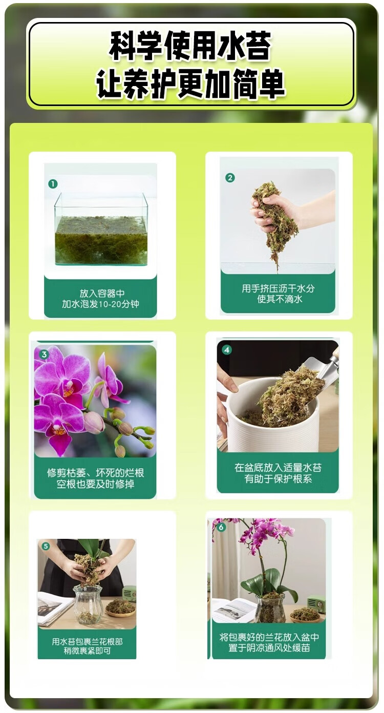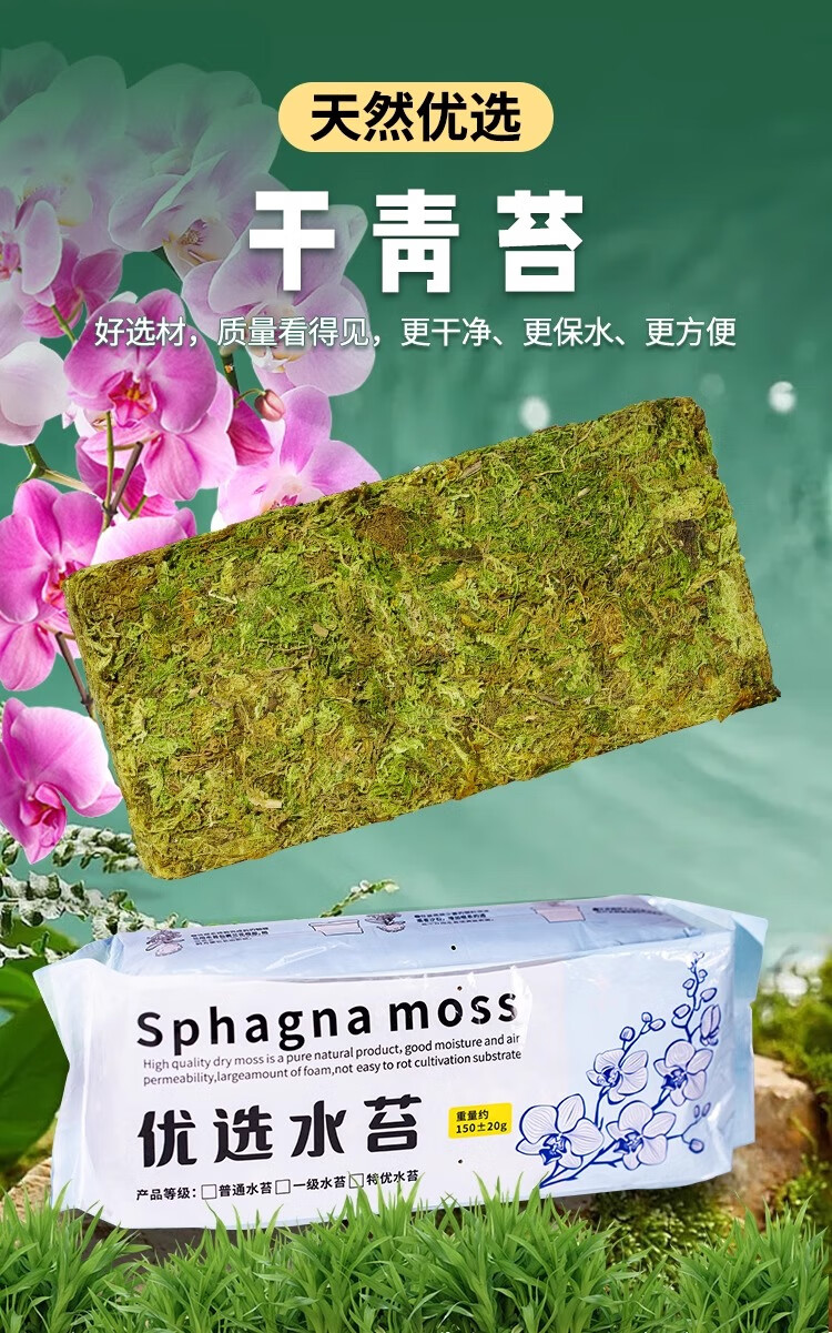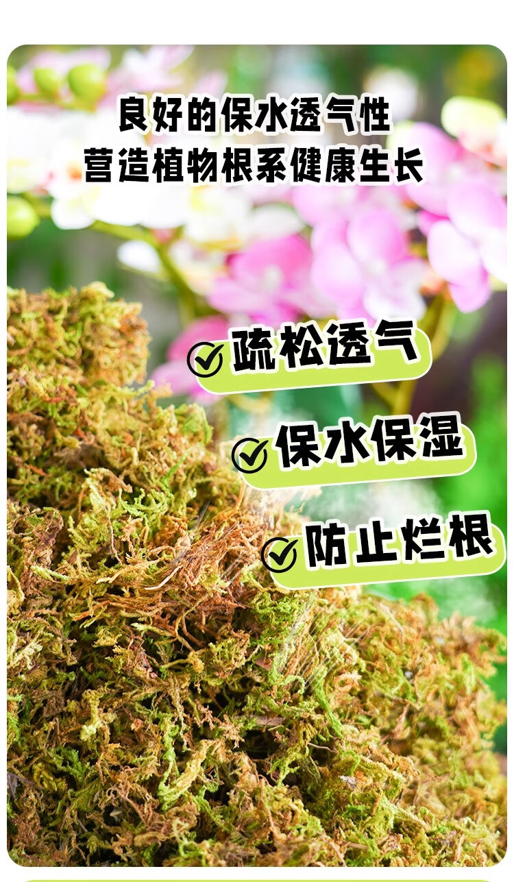 Dry moss, natural high-quality moss, special for Phalaenopsis orchids, sphagnum dendrobium planting nutritious soil, crawling pet turtle mat, preferred bulk moss 250g