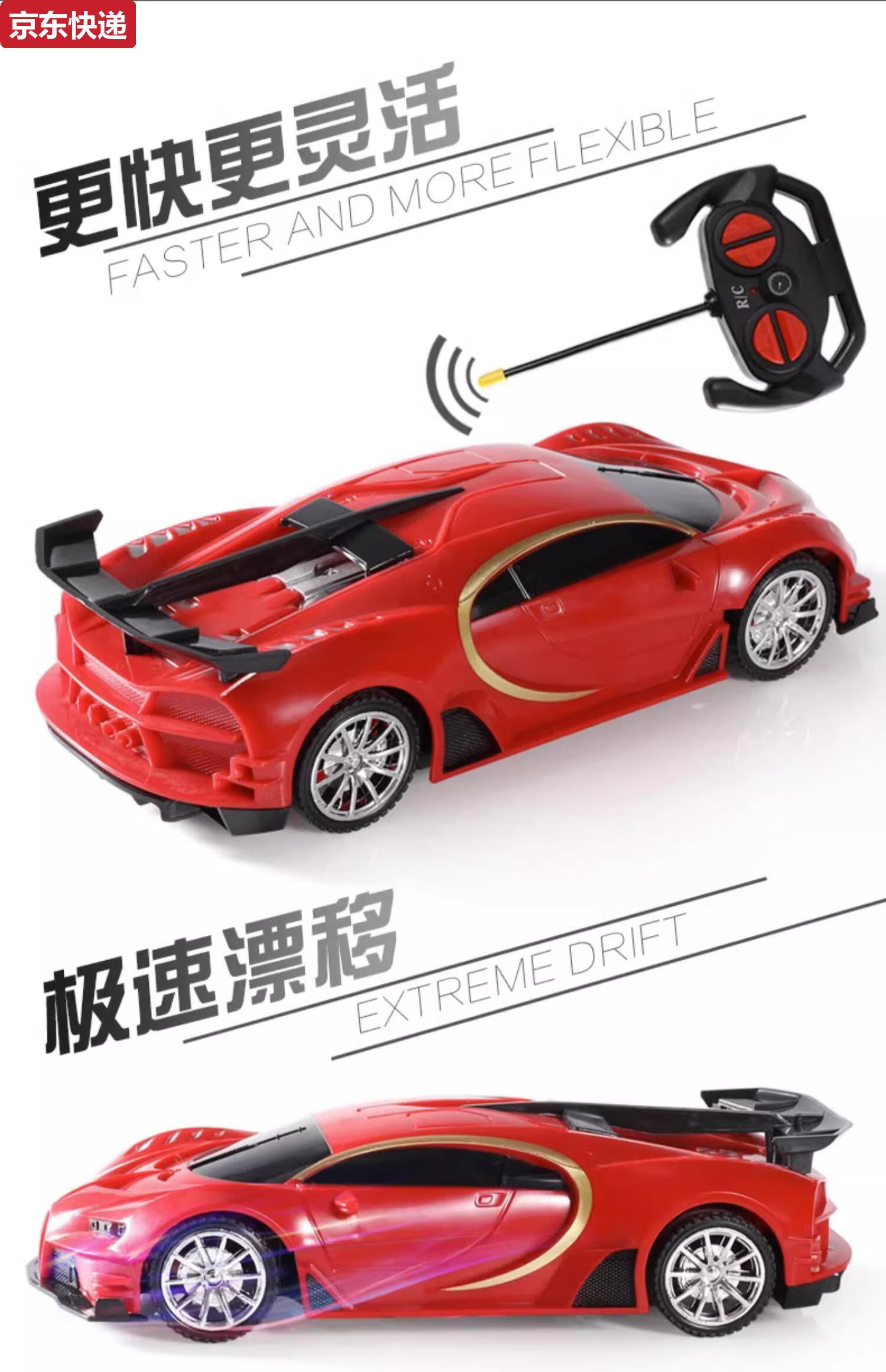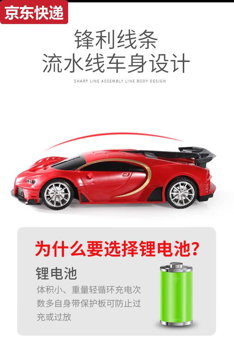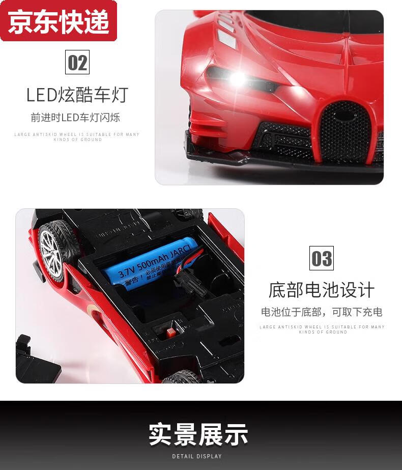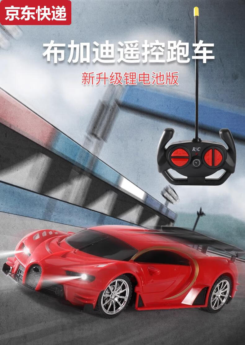 Pickup Cat Remote Control Car Charging Version Wireless Racing Driftable Fan Small Electric Toy Car for Boys 3 and 4 Years Old Bugatti Blue with LE Lights - 3 Sets of Lithium Batteries