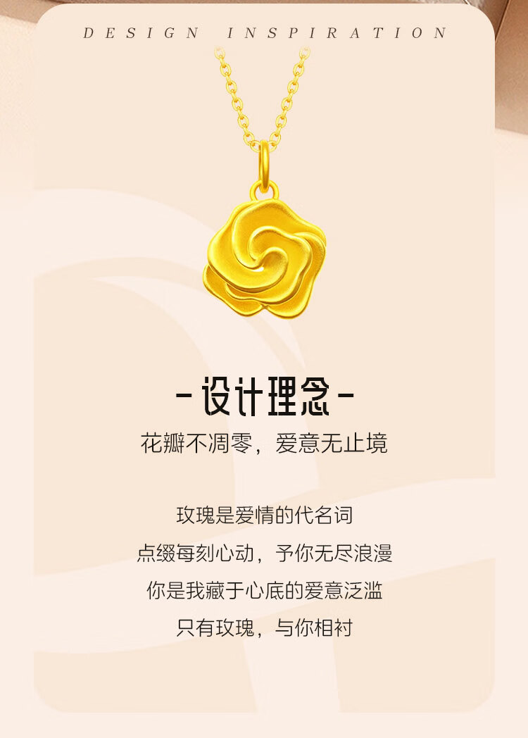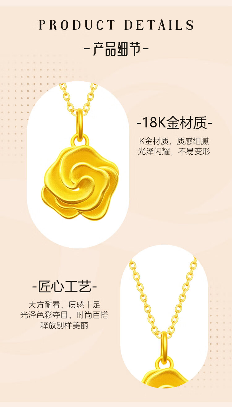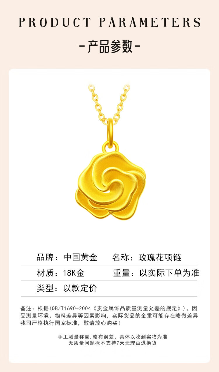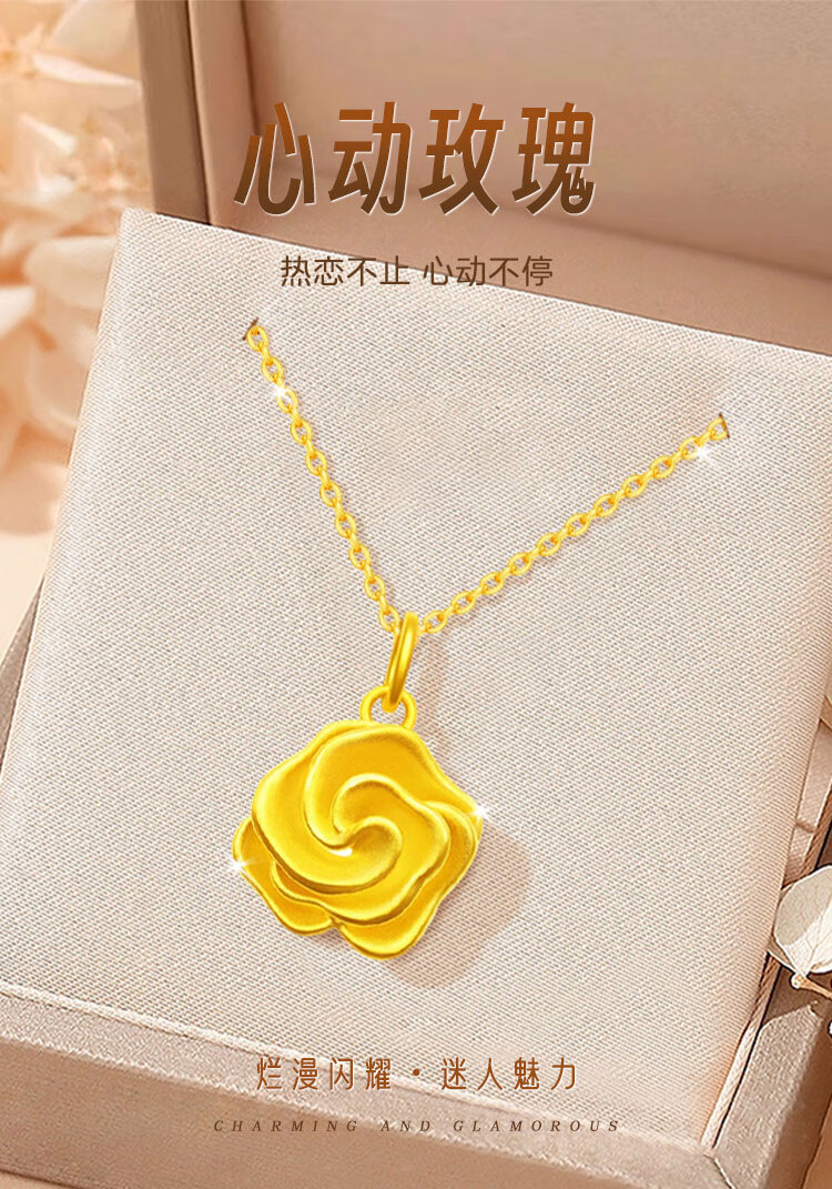 CHINA GOLD 18K gold necklace for women, light luxury and versatile jewelry, rose pendant, Valentine's Day birthday gift for lover and wife, rose pendant, with S925 silver O-shaped chain