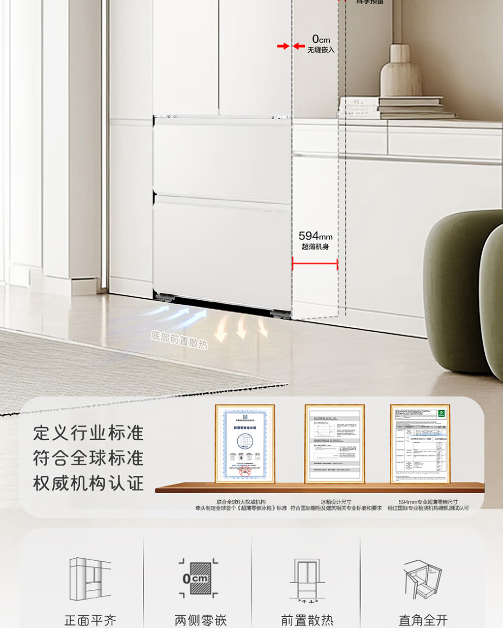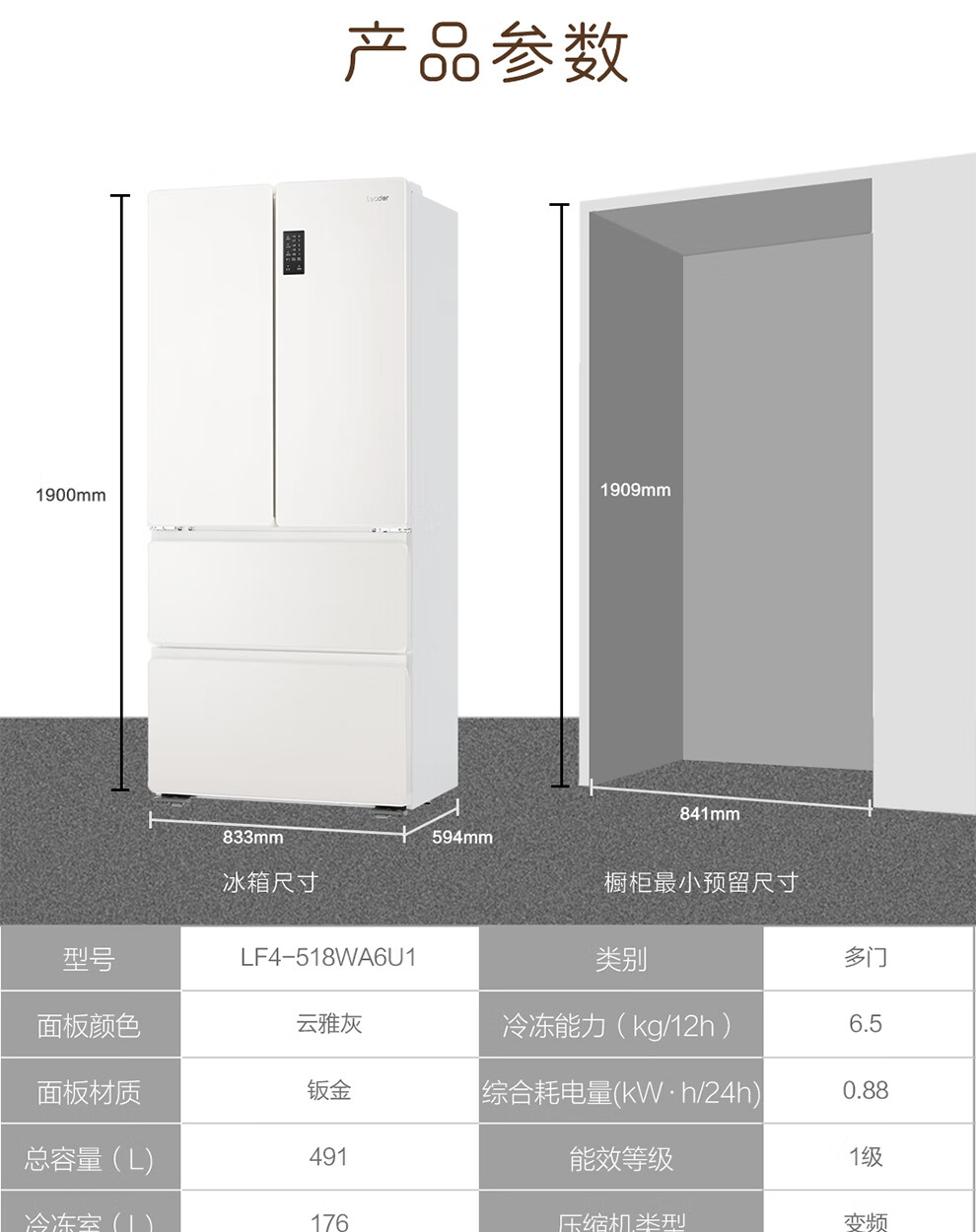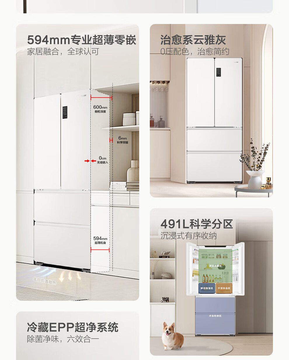 Haier refrigerator produces French multi-door four-door 594mm ultra-thin zero-embedded 491 upgraded one-level energy efficiency dual-frequency air-cooled frost-free commander refrigerator 518 trade-in subsidy EPP ultra-clean system + oxygen barrier dry and wet storage + maternal and infant three-speed temperature change