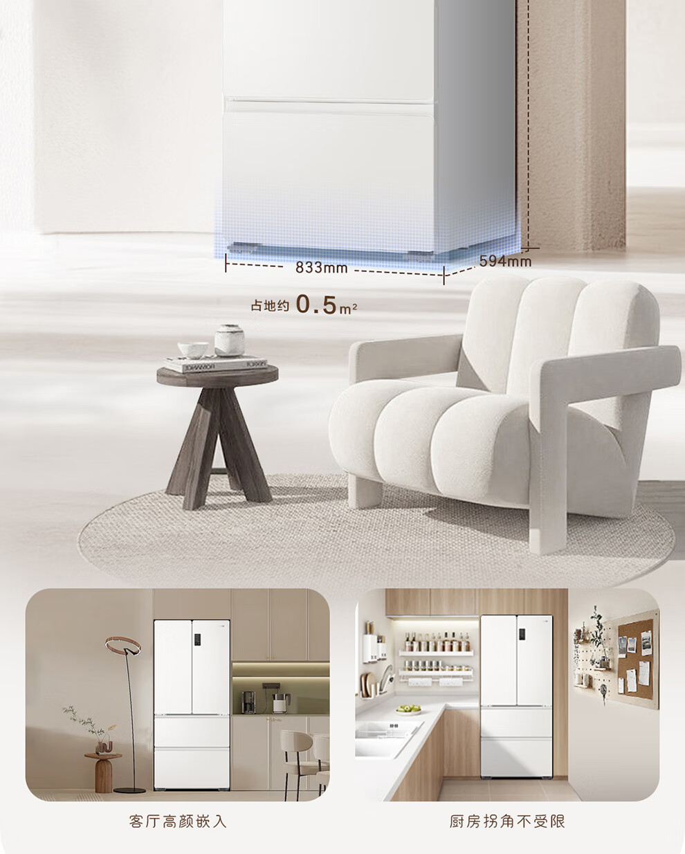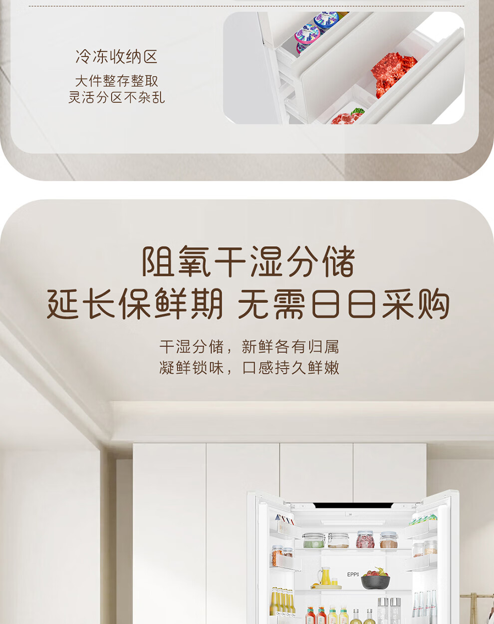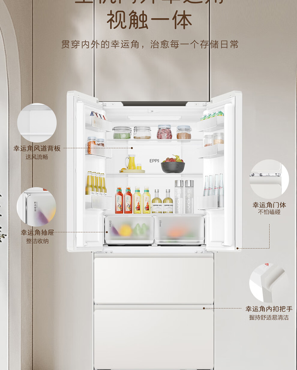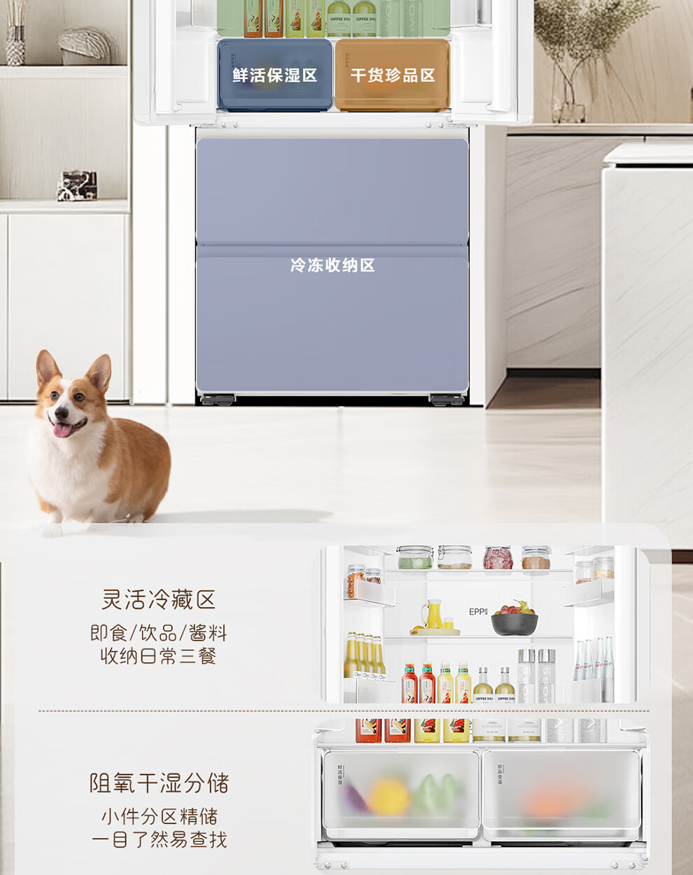 Haier refrigerator produces French multi-door four-door 594mm ultra-thin zero-embedded 491 upgraded one-level energy efficiency dual-frequency air-cooled frost-free commander refrigerator 518 trade-in subsidy EPP ultra-clean system + oxygen barrier dry and wet storage + maternal and infant three-speed temperature change