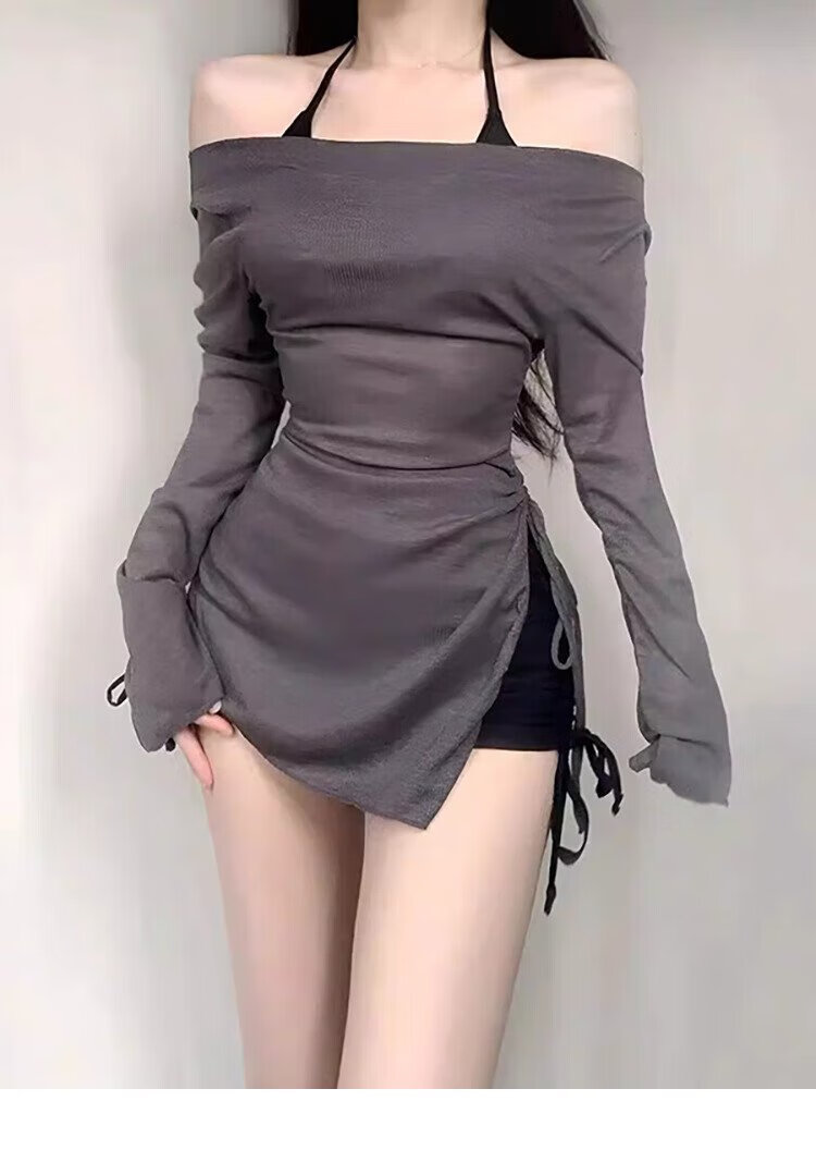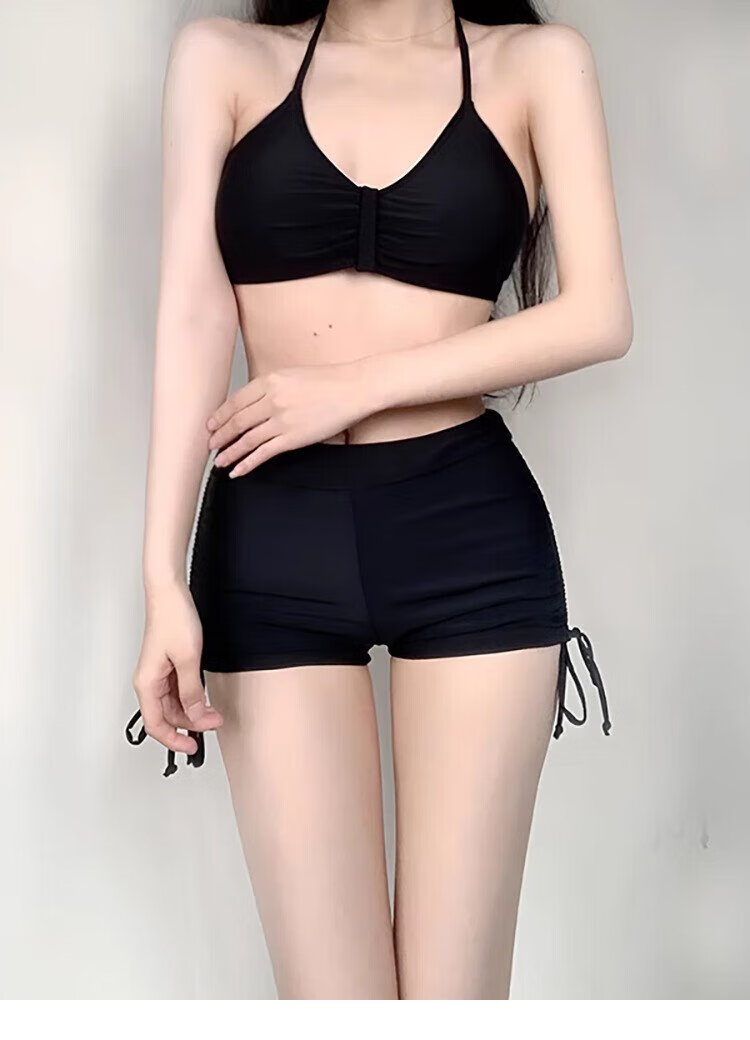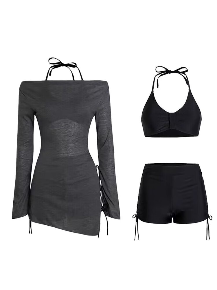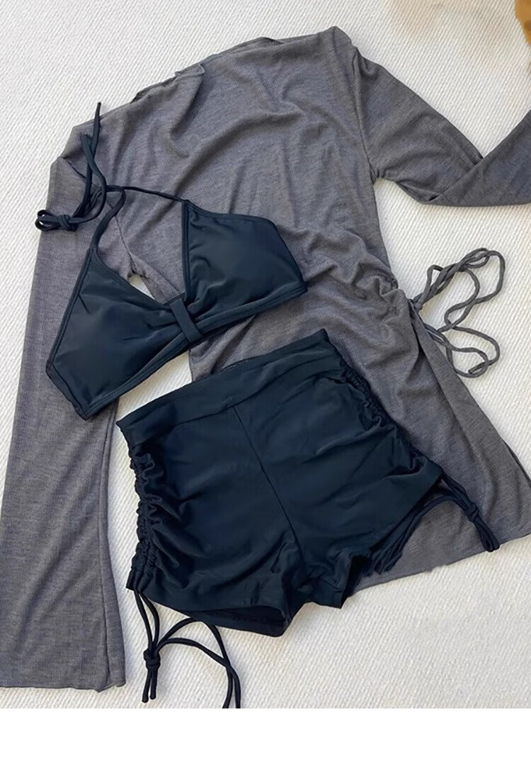 Fu Jian sun protection swimsuit women's three-piece bikini seaside resort style split boxer cover-up sexy pure desire hot spring swimsuit black and gray three-piece suit one size fits all 75-125 Jin Jin is equal to 0.5 kg
