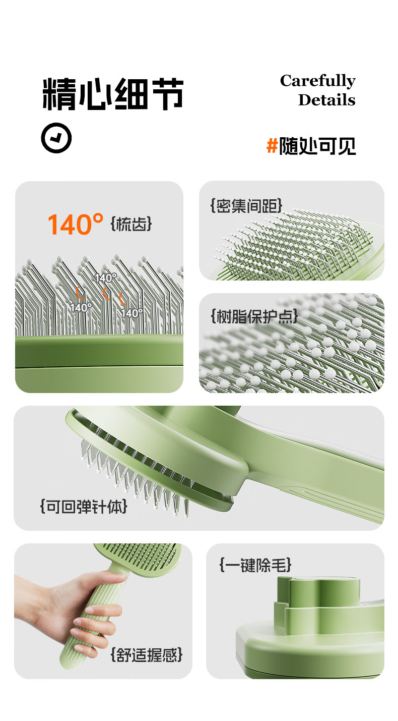 Pupan cat comb, cat combing tool, cat and dog hair cleaning supplies, knotted floating hair removal comb, thinning and fine-toothed needle comb, green pet floating hair comb, encrypted comb teeth, widened comb surface, deep hair removal, upgraded one-click self-cleaning