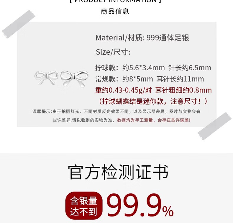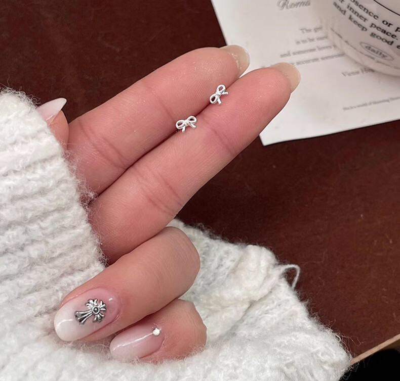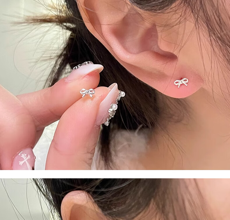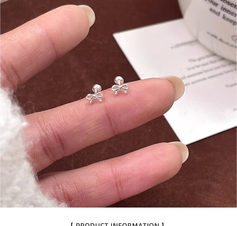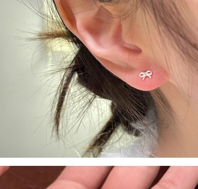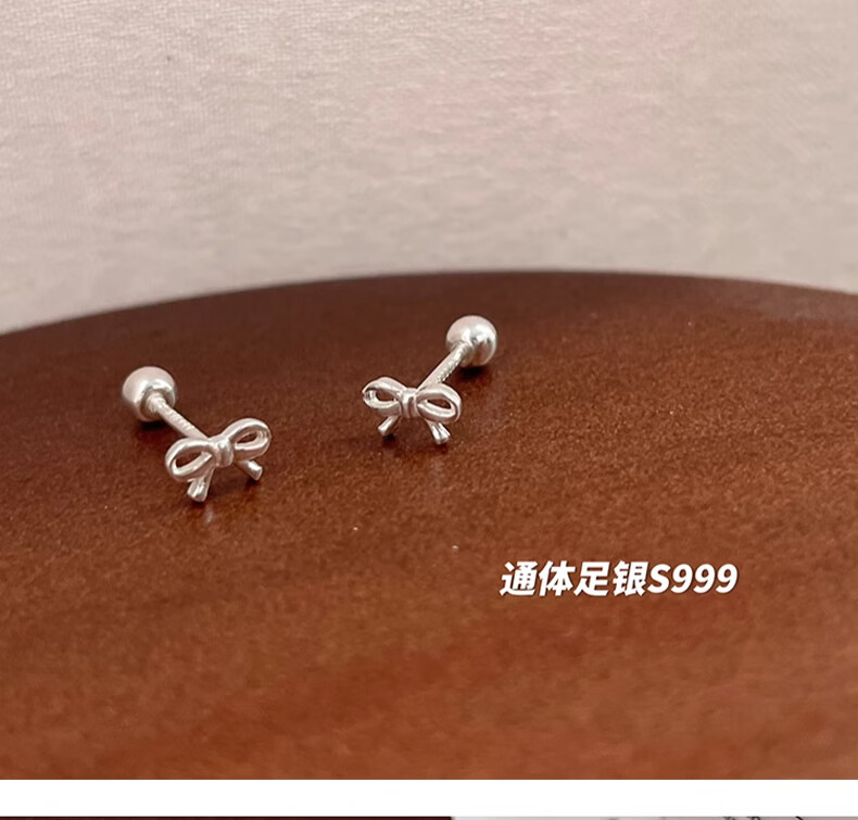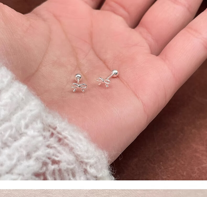 Xinshe S999 sterling silver earrings for women mini bow pure silver ear piercing 2025 new style sleeping-free earrings for women a pair of mini bow earrings