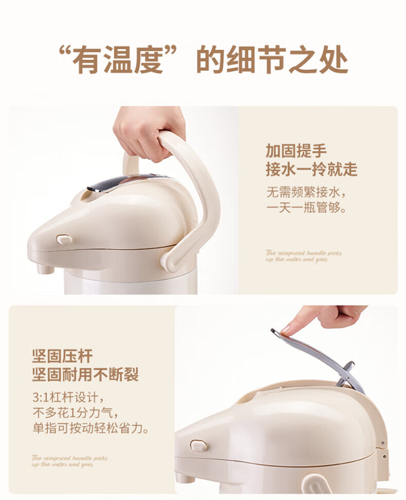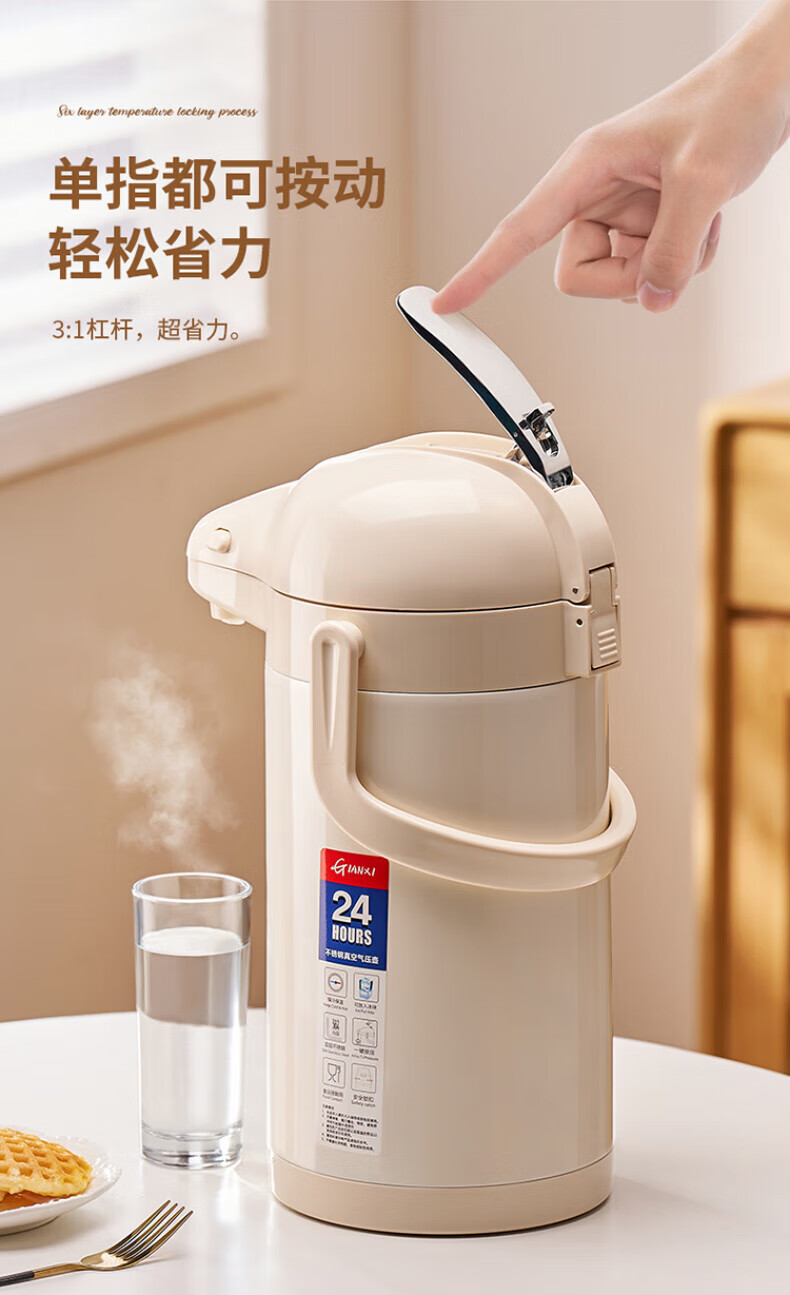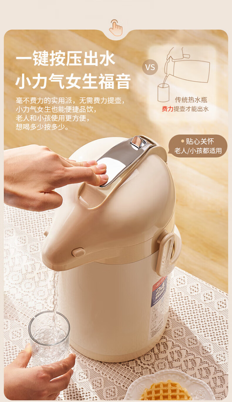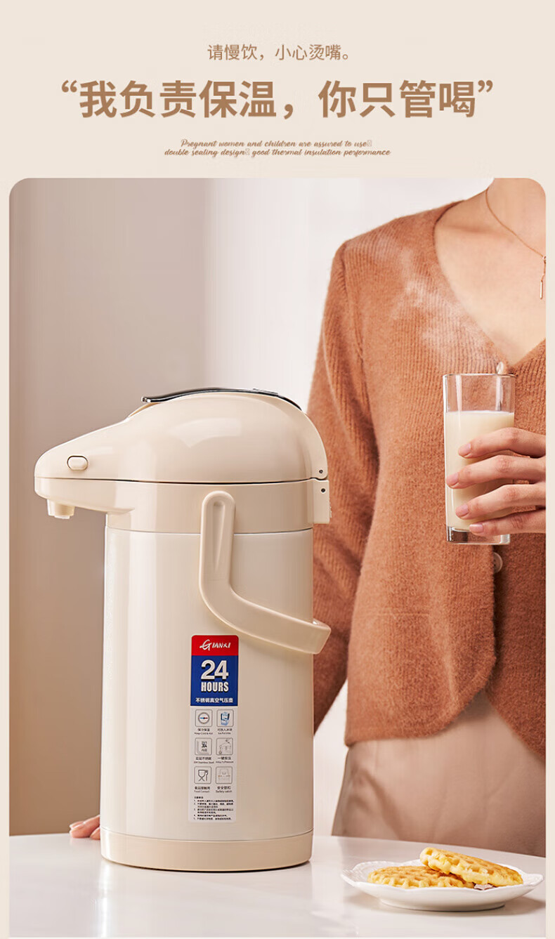 Japan imported thermal kettle press warm water kettle air pressure thermos 4L large capacity thermal kettle household 31 upgraded 316 stainless steel - white 400