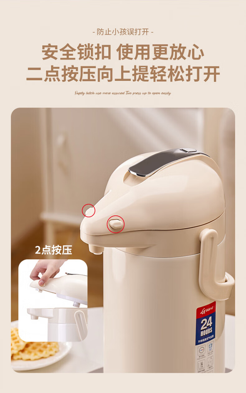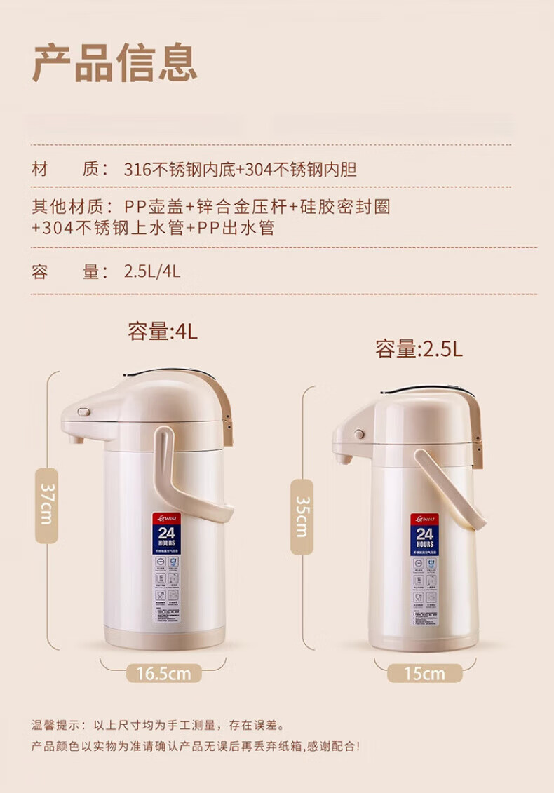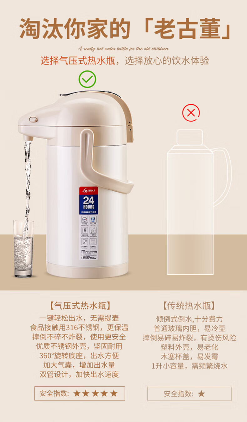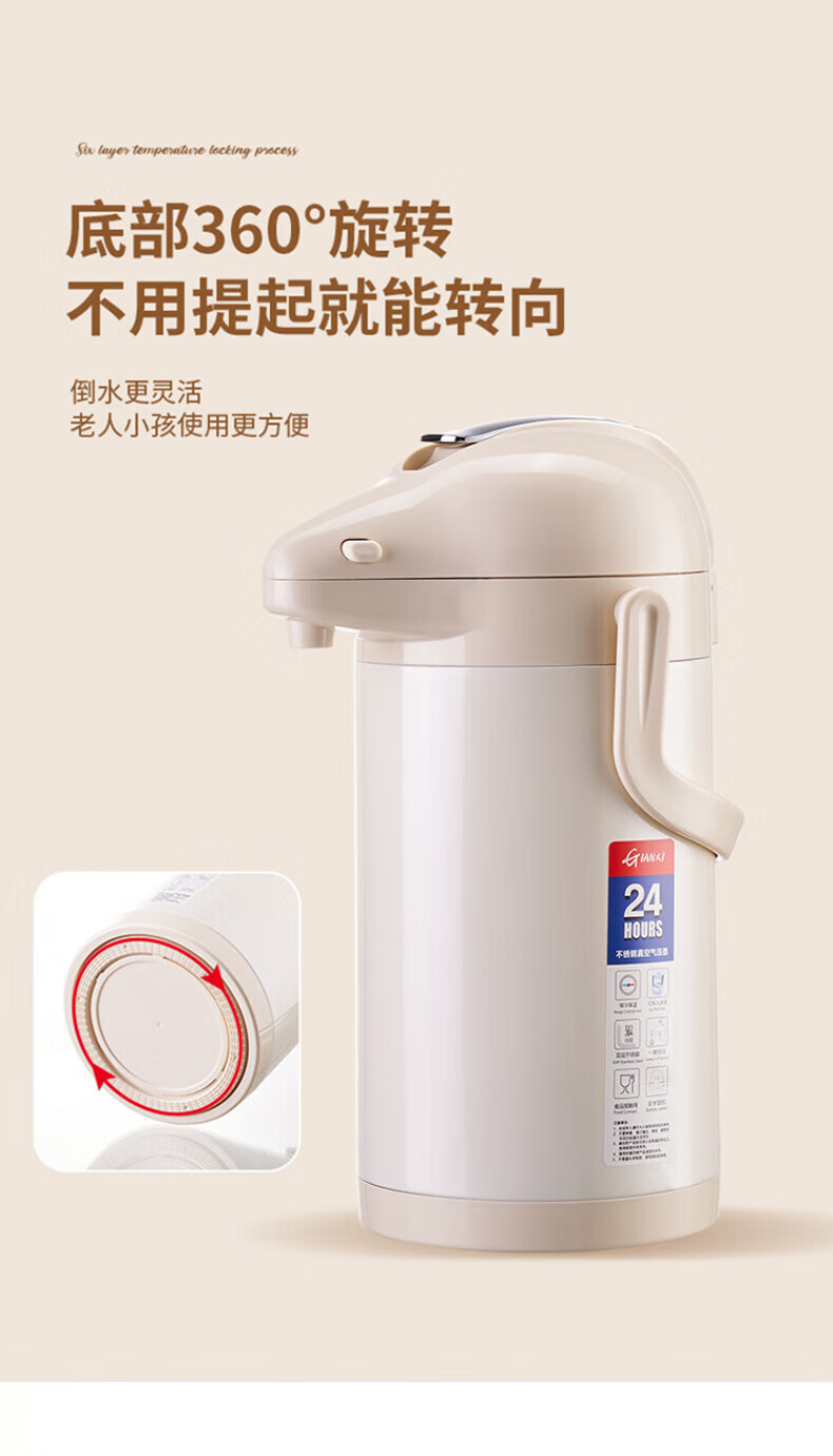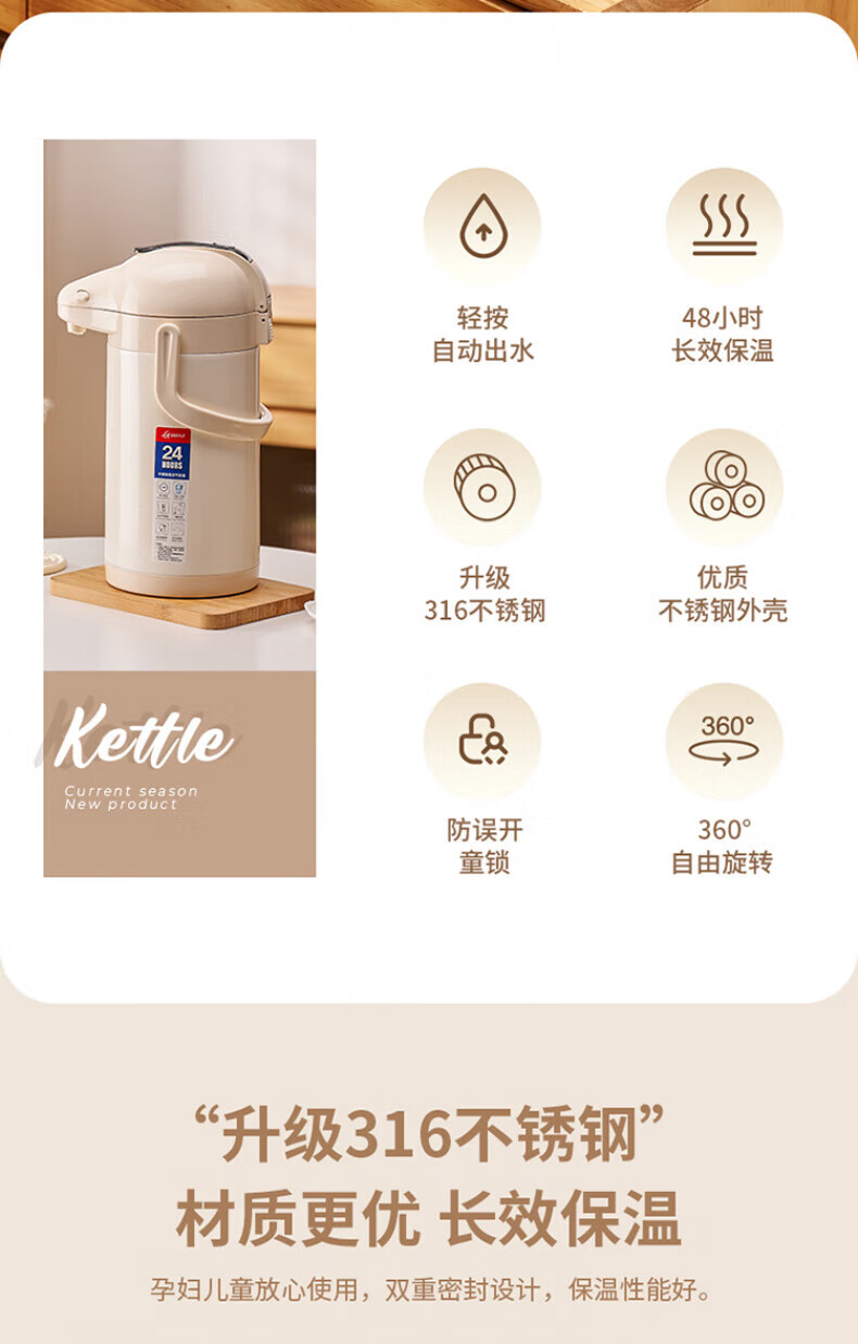 Japan imported thermal kettle press warm water kettle air pressure thermos 4L large capacity thermal kettle household 31 upgraded 316 stainless steel - white 400