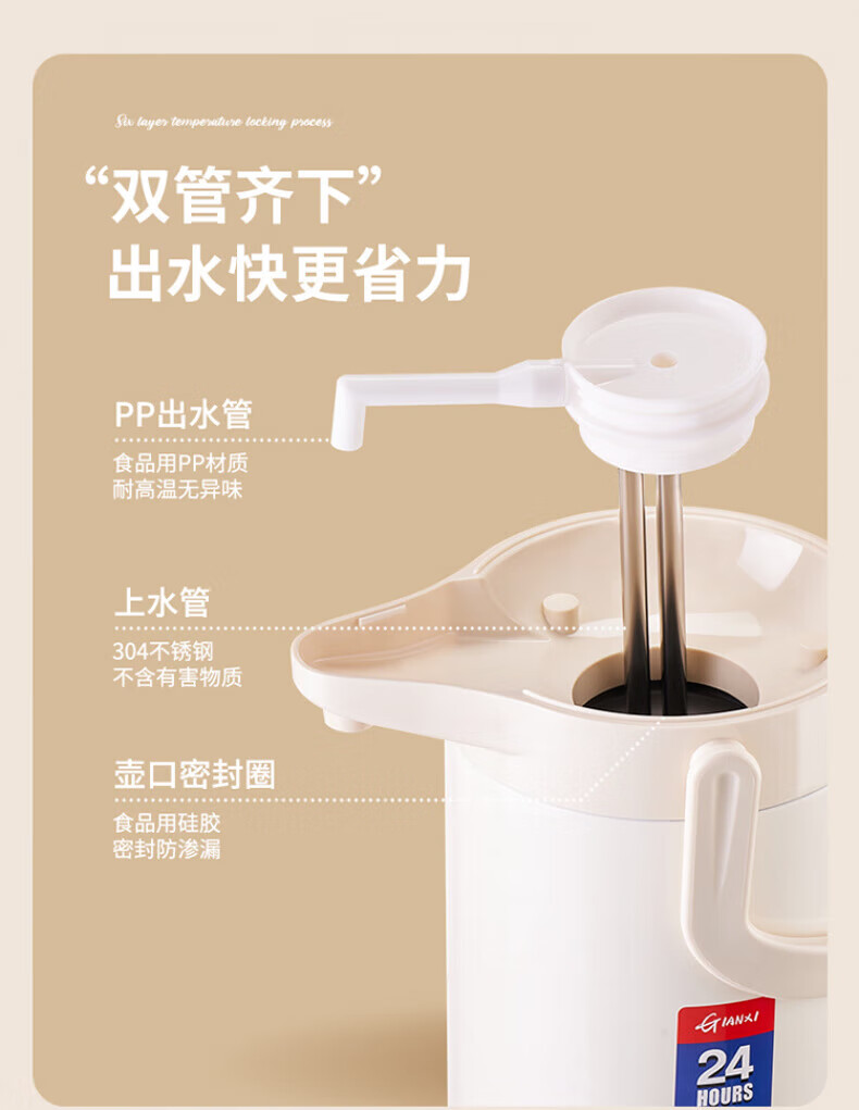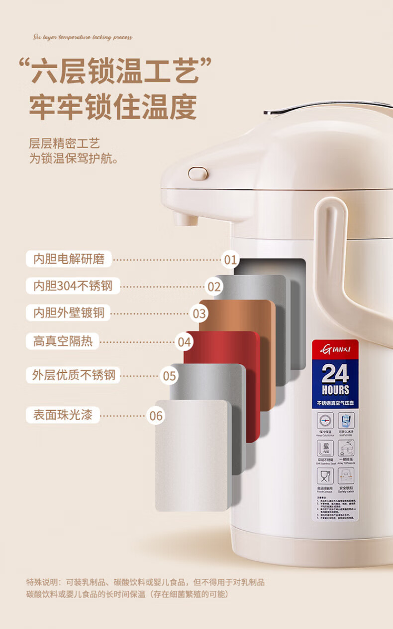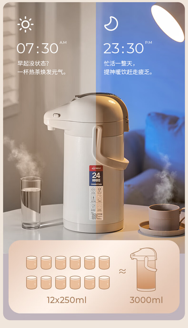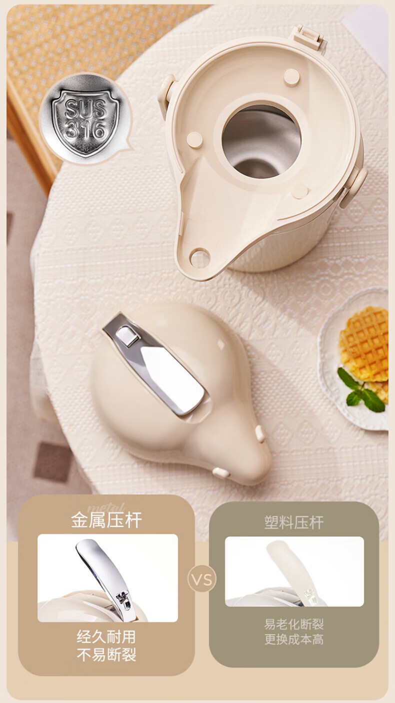 Japan imported thermal kettle press warm water kettle air pressure thermos 4L large capacity thermal kettle household 31 upgraded 316 stainless steel - white 400