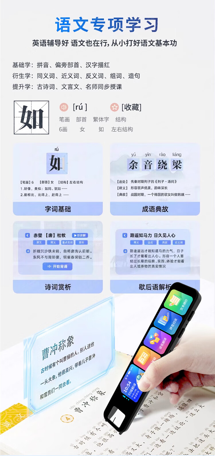 Senior Notes 2025 General English Scanner Pen Offline Point Reading Pen English Dictionary Pen Learning Machine Universal Primary School Junior High School High School Student Textbook Synchronous Translation Pen Early Education Machine Flagship Edition 128G Offline Synchronous Video Memorize Words + Composition Guidance Offline General Subject Learning Edition