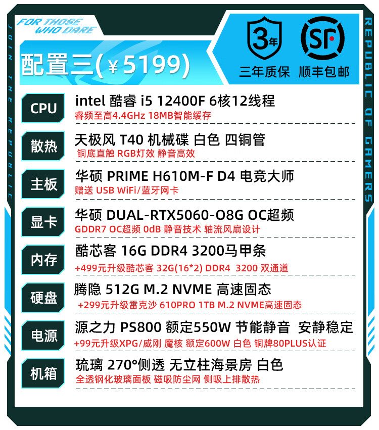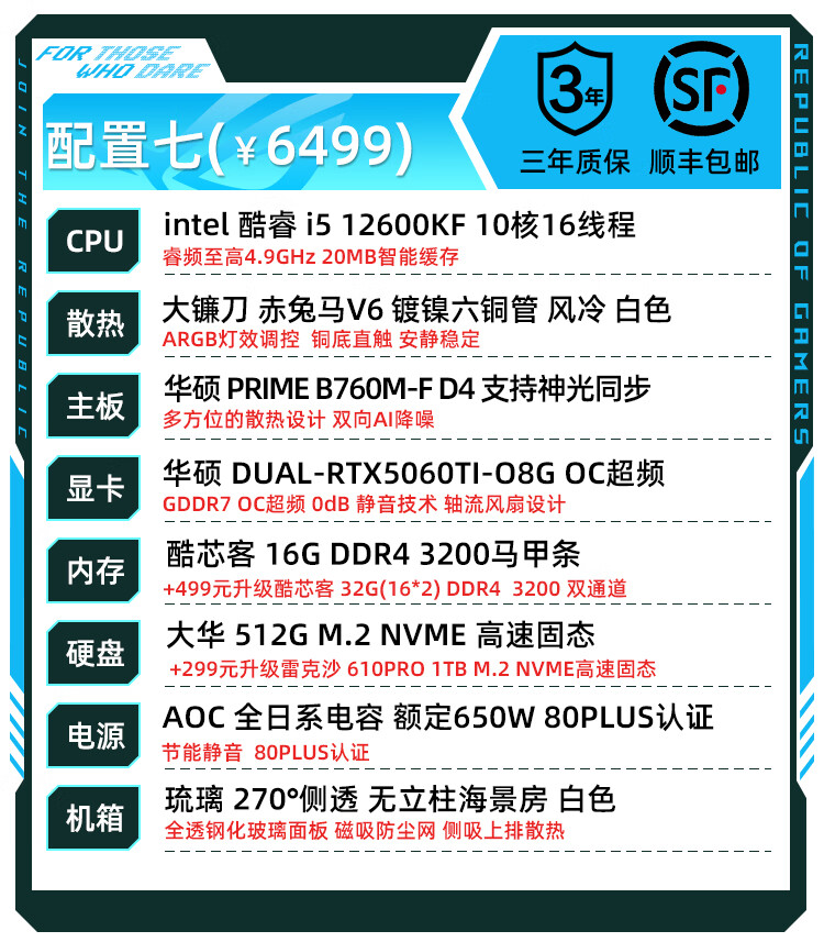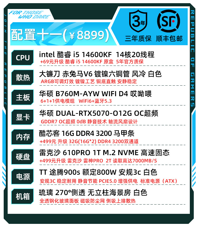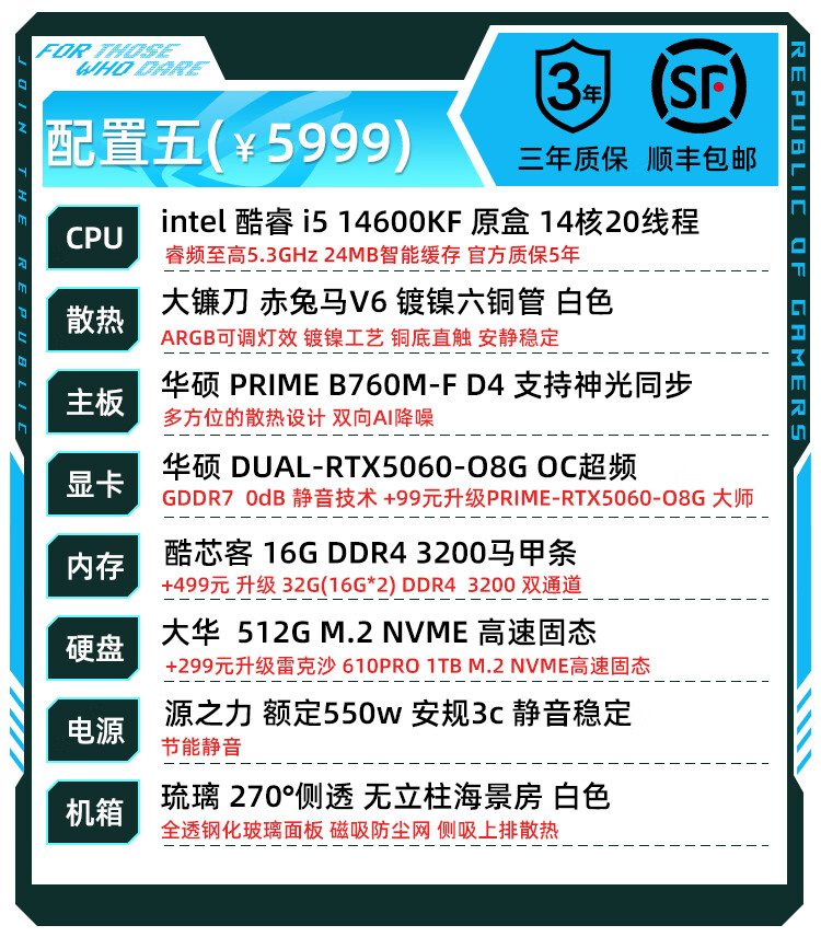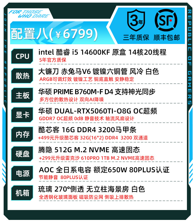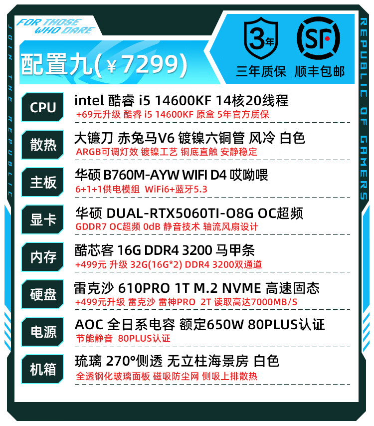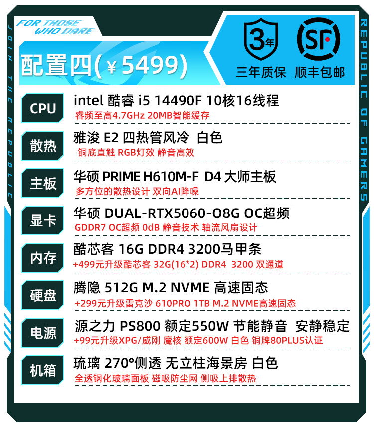 ASUS ROG family bucket 24 periods interest-free i5 14600KF ASUS RTX5060Ti 5060 sea view room e-sports gaming desktop assembly computer DIY assembly machine configuration 6 i5-14490F + ASUS 5060Ti