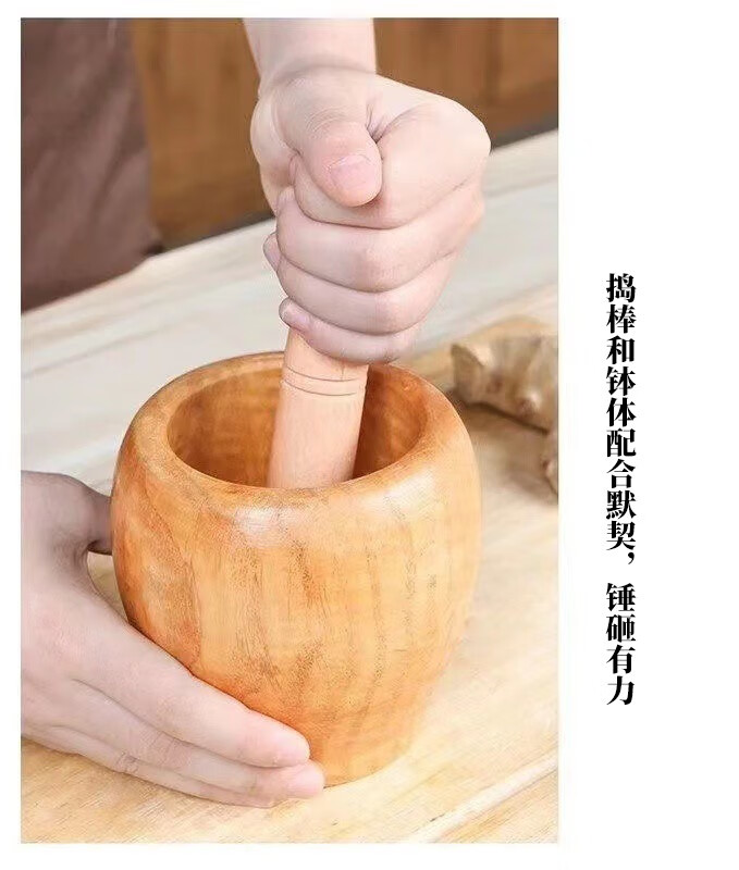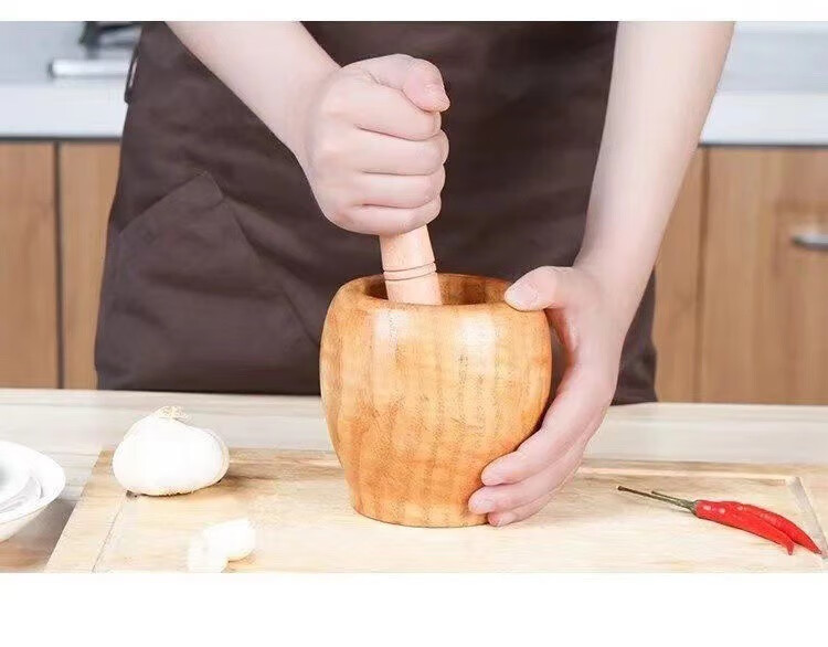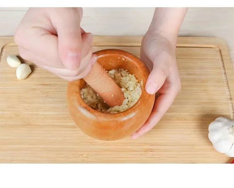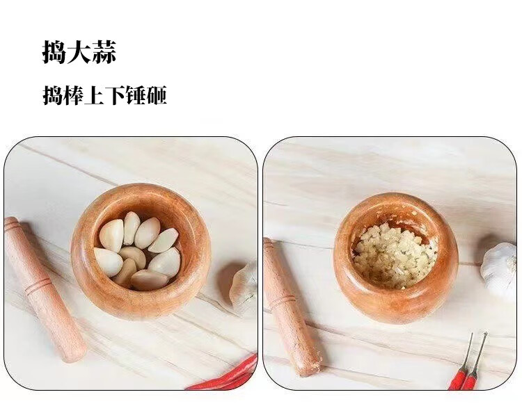 Household garlic press wooden garlic masher manual garlic press garlic mortar household wooden garlic mash jar Chinese medicine mash wooden garlic mortar