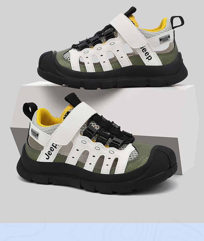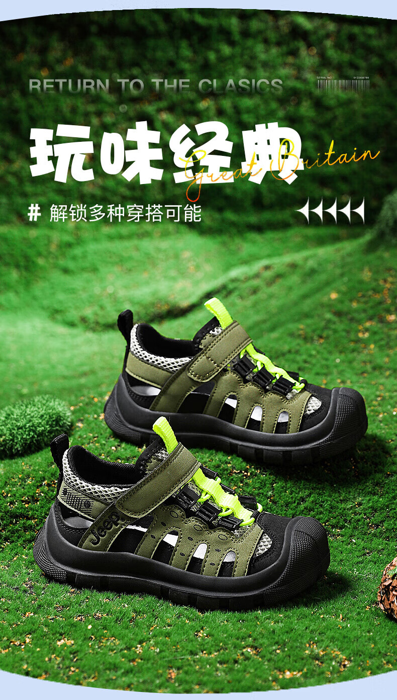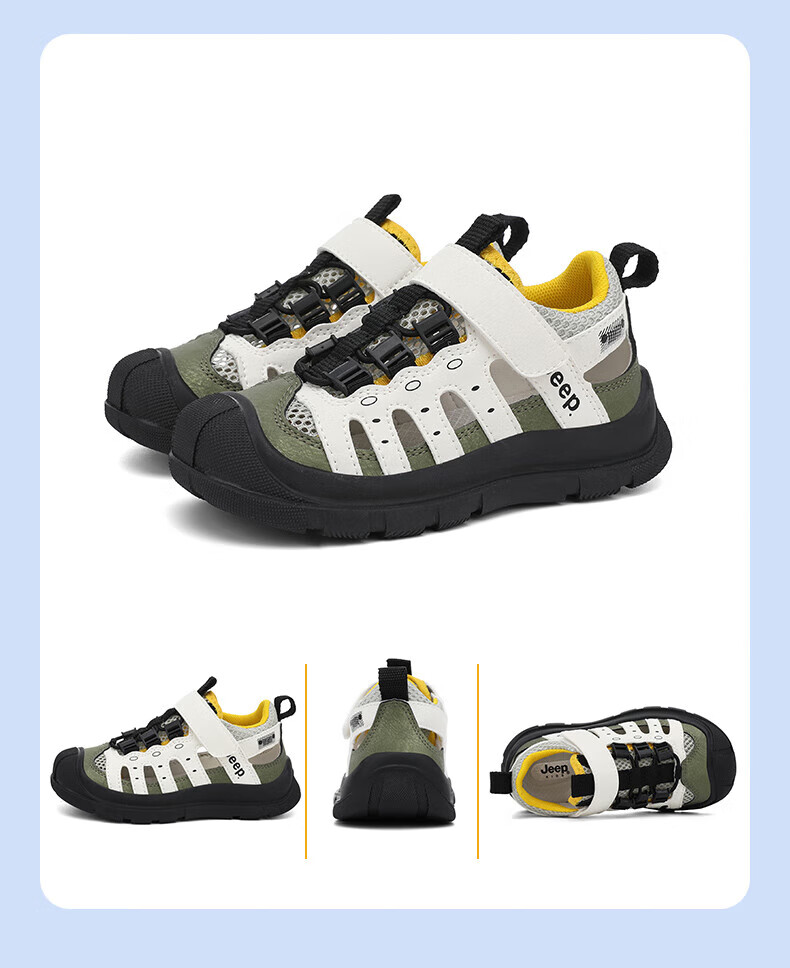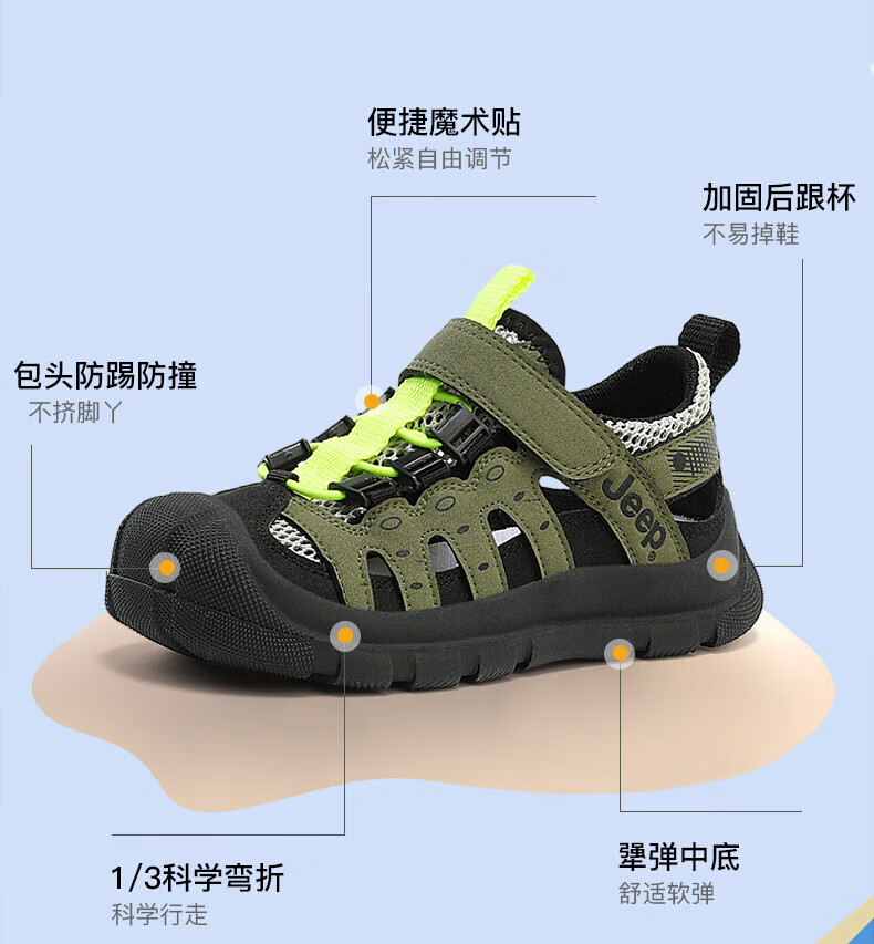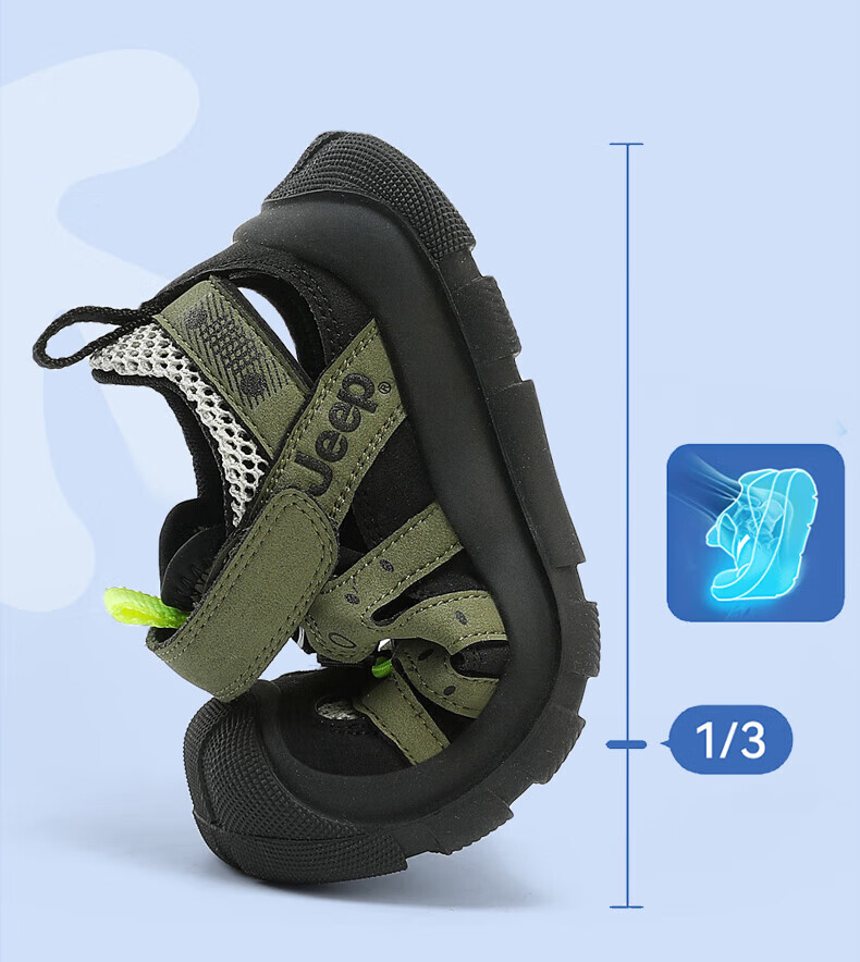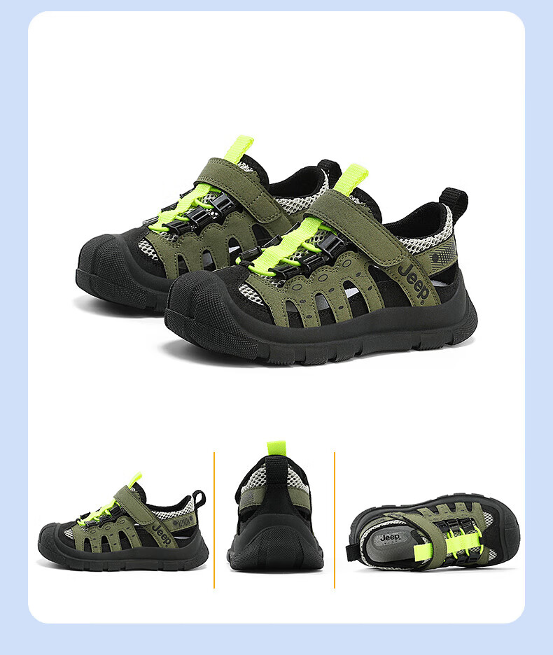 Jeep children's sandals summer new model for large children Jeep children's shoes non-slip boys and girls outdoor non-slip breathable beach shoes military green 28 shoes inner length about 18.3cm