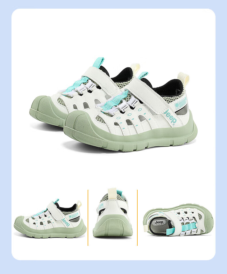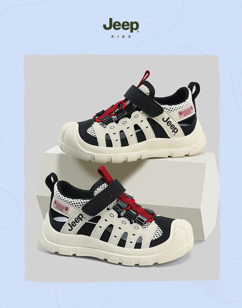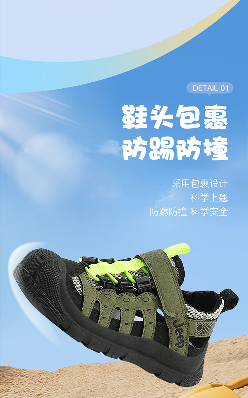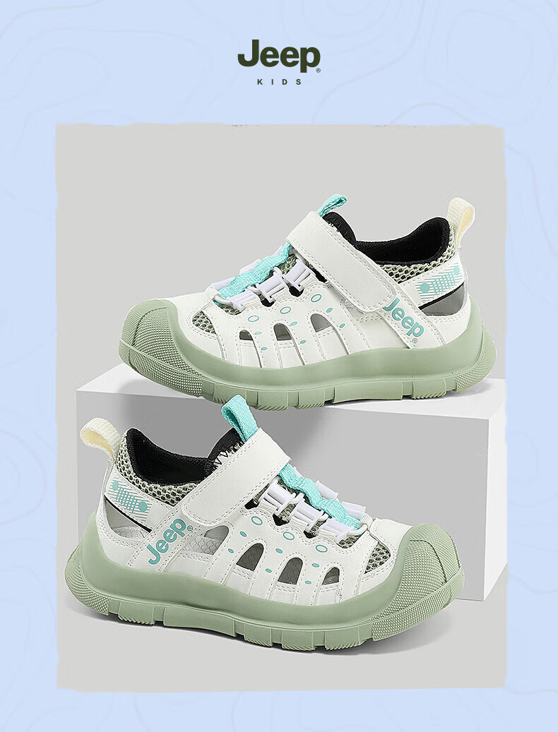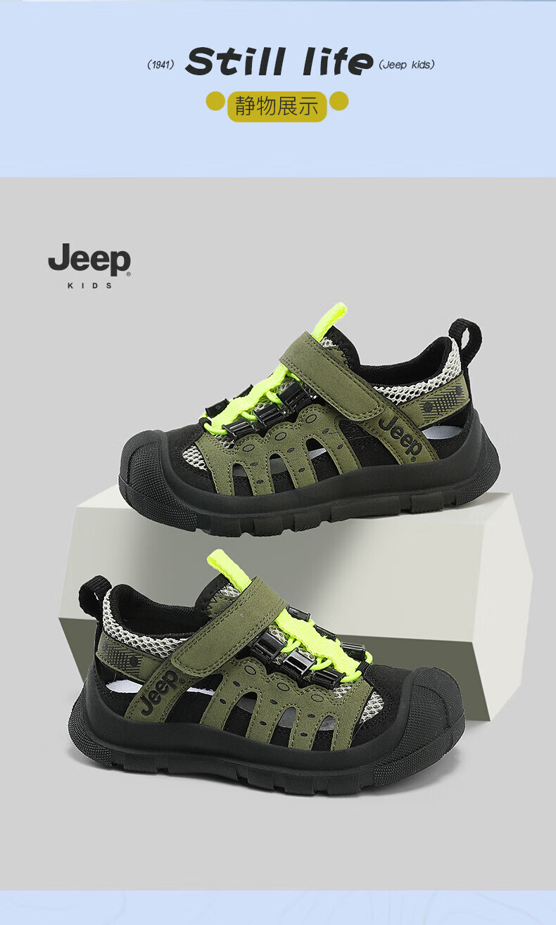 Jeep children's sandals summer new model for large children Jeep children's shoes non-slip boys and girls outdoor non-slip breathable beach shoes military green 28 shoes inner length about 18.3cm