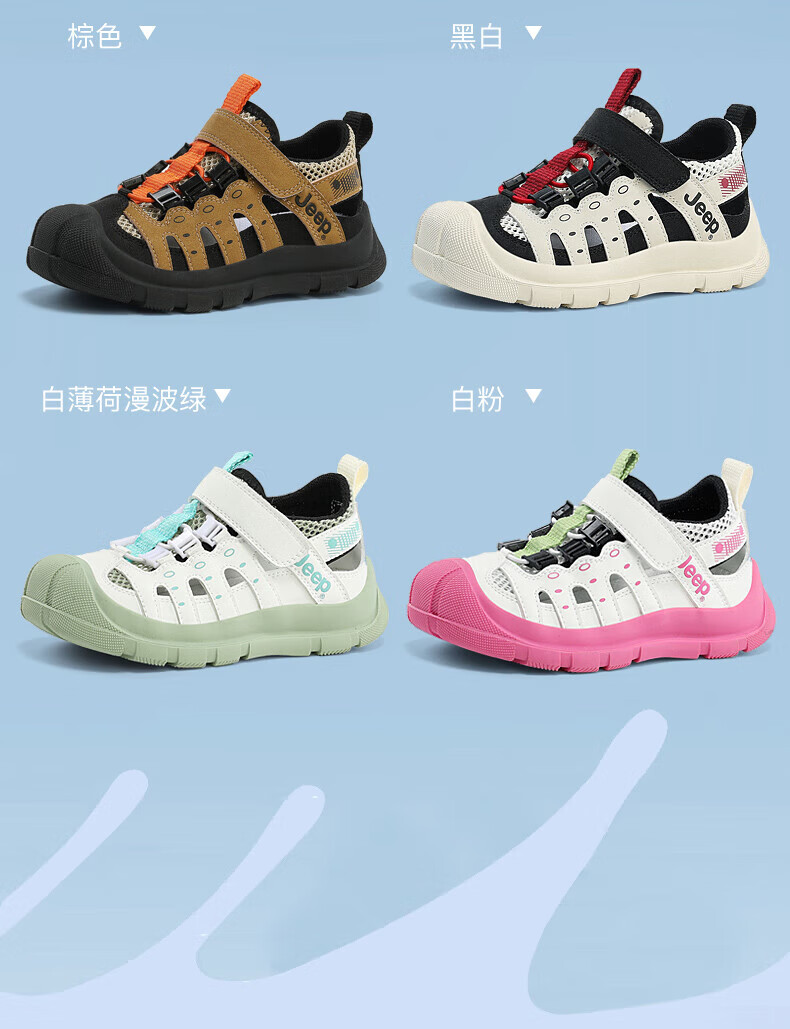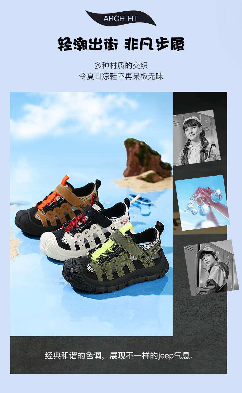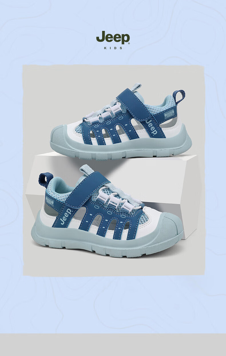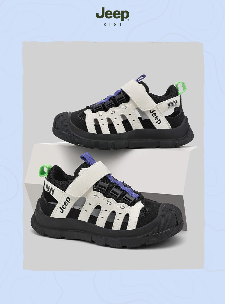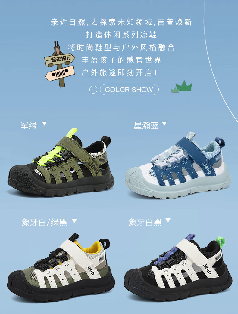 Jeep children's sandals summer new model for large children Jeep children's shoes non-slip boys and girls outdoor non-slip breathable beach shoes military green 28 shoes inner length about 18.3cm