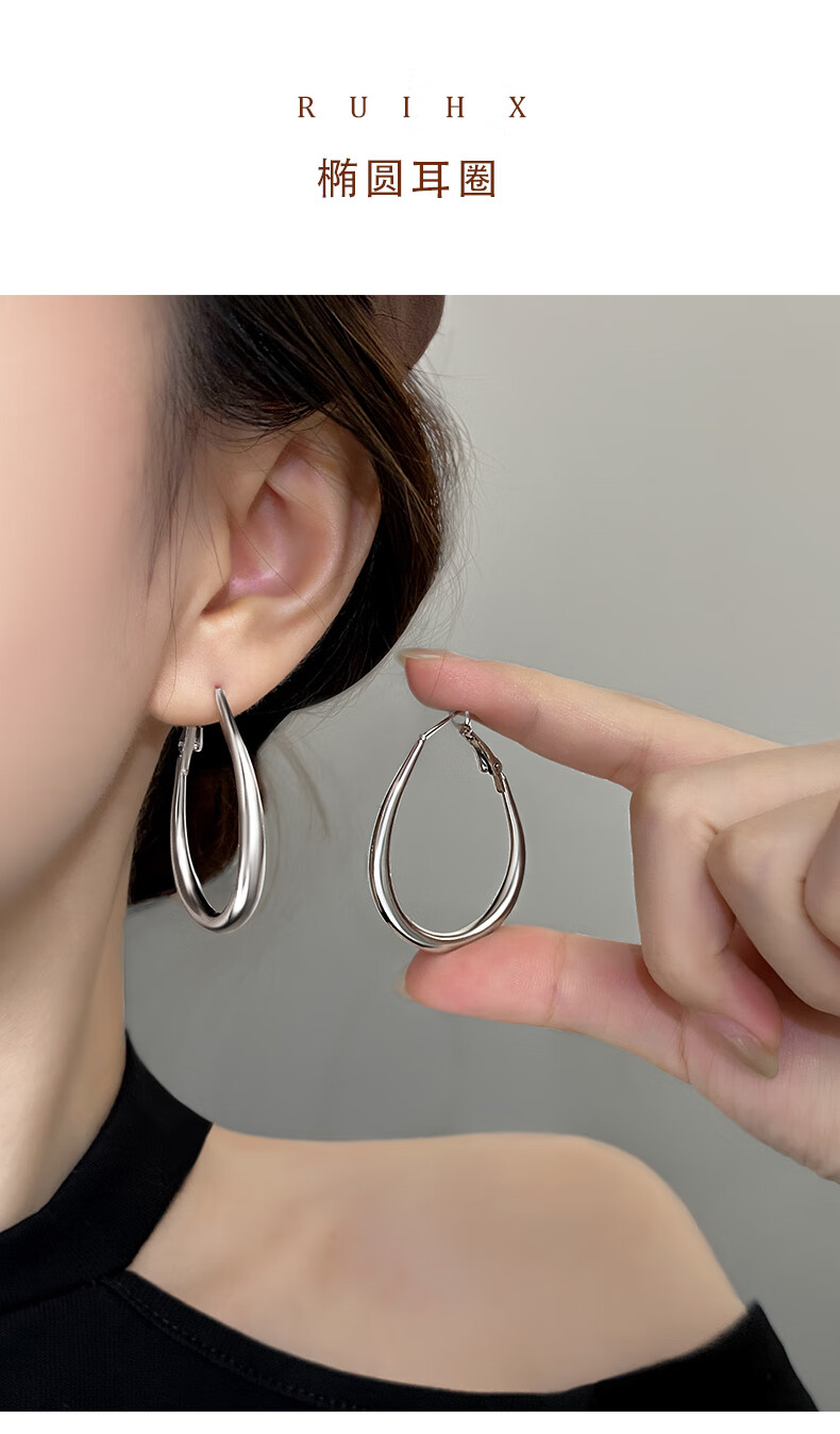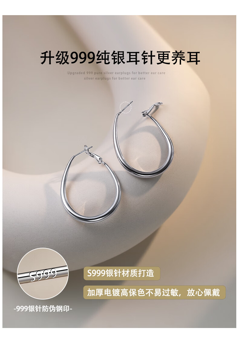 Ruihongxiang 999 sterling silver earrings plain hoop earrings for women 2025 new hot style light luxury high-end round face earrings circle earrings 999 sterling silver earrings oval earrings pair