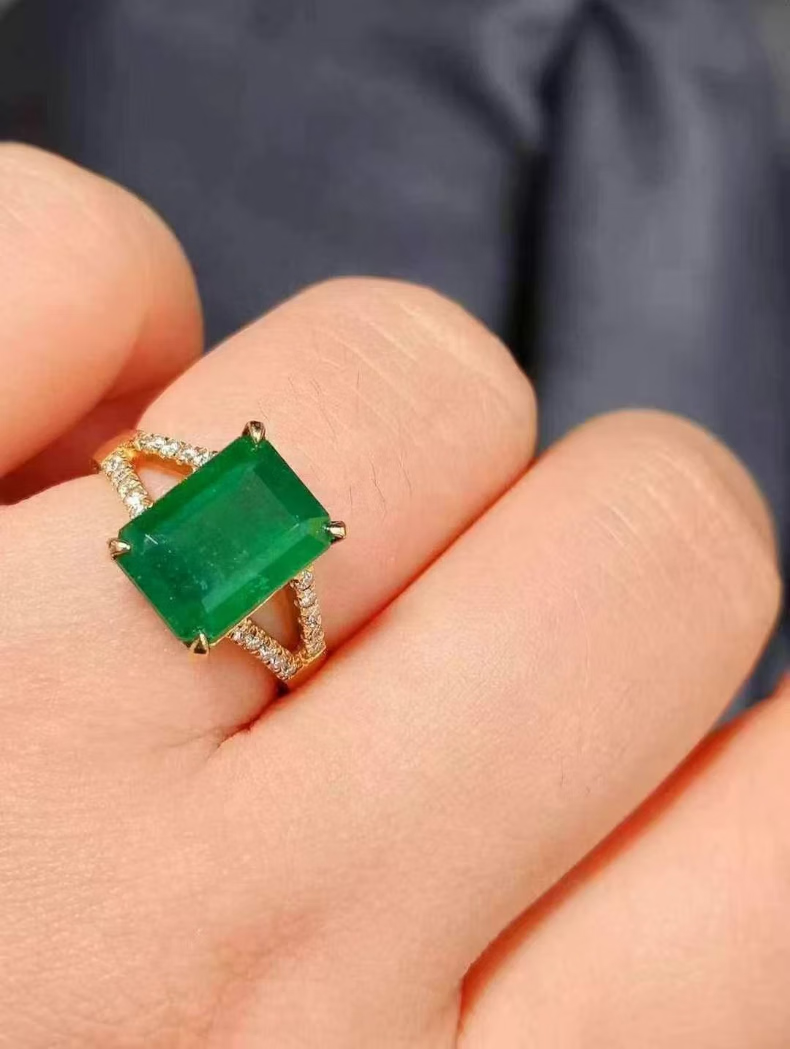 HEEKAIYI emerald ring for women 18K diamond ring luxury Chinese Valentine's Day birthday gift for wife and girlfriend