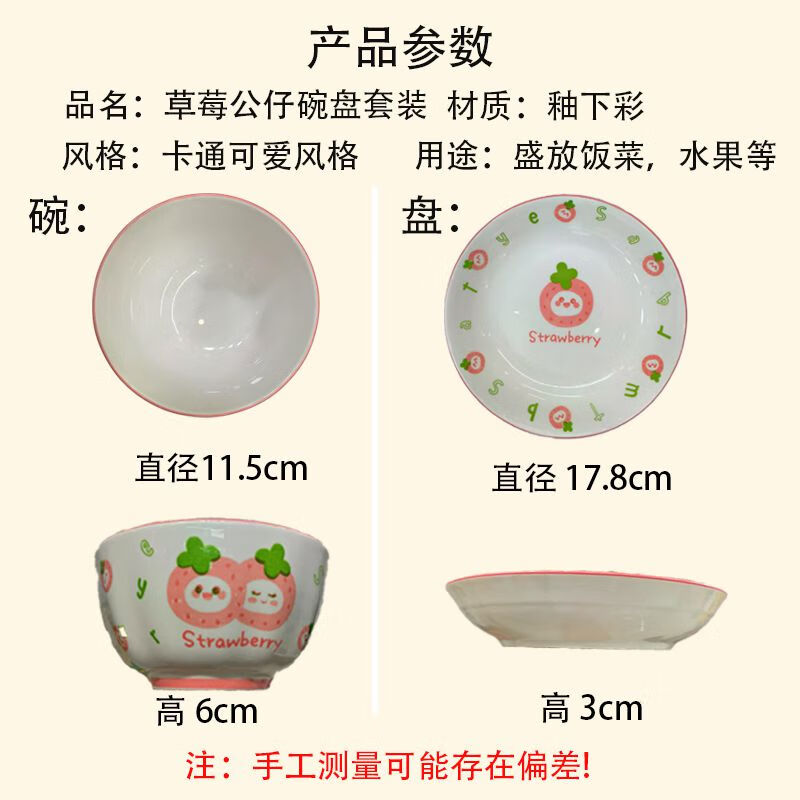 Household underglaze color cartoon style underglaze color pottery 4.6-inch bowl/7-inch plate strawberry doll plate set Strawberry doll 7-inch plate 1 piece