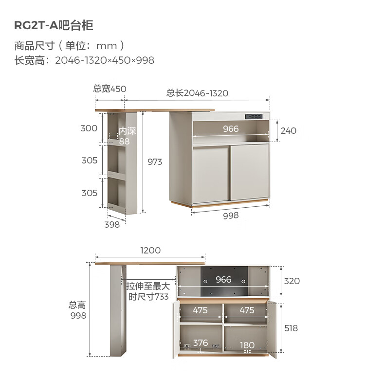 Lin's home sideboard household storage cabinet retractable side cabinet wall cabinet storage cabinet bar square full series RG2T bar cabinet + dining table (upgraded shelf) + dining chair 660
