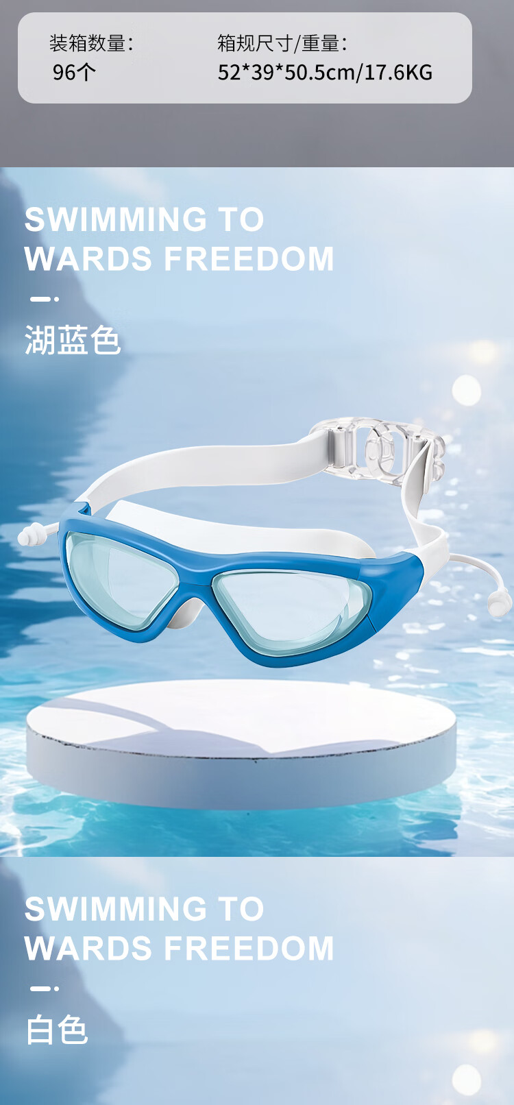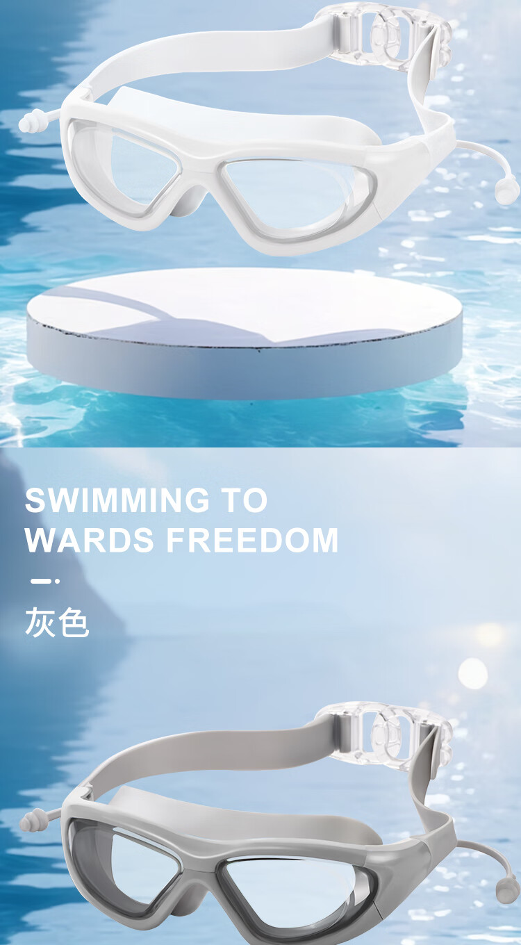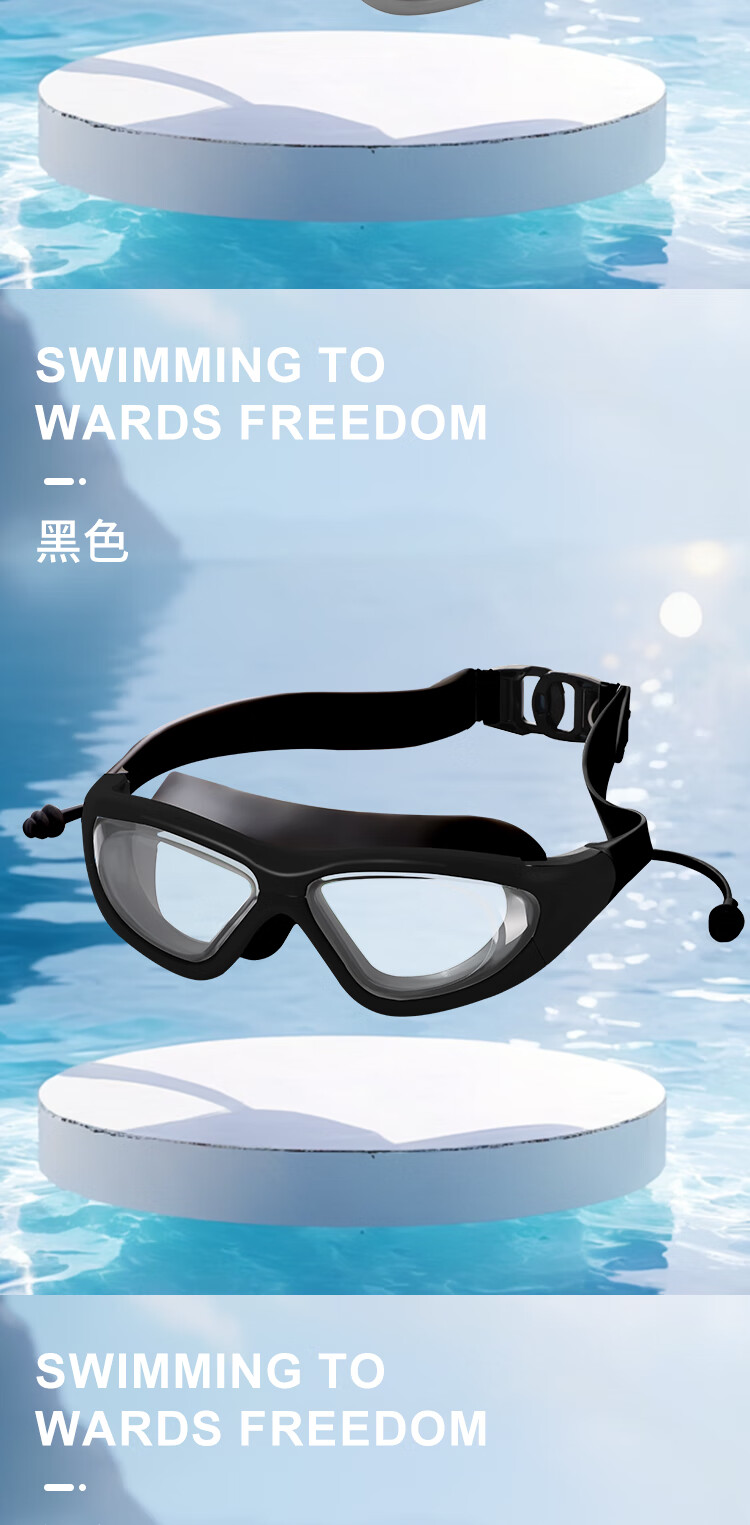 Adult swimming goggles HD transparent waterproof anti-fog men and women large frame one-piece earplugs goggles swimming equipment black no Specifications