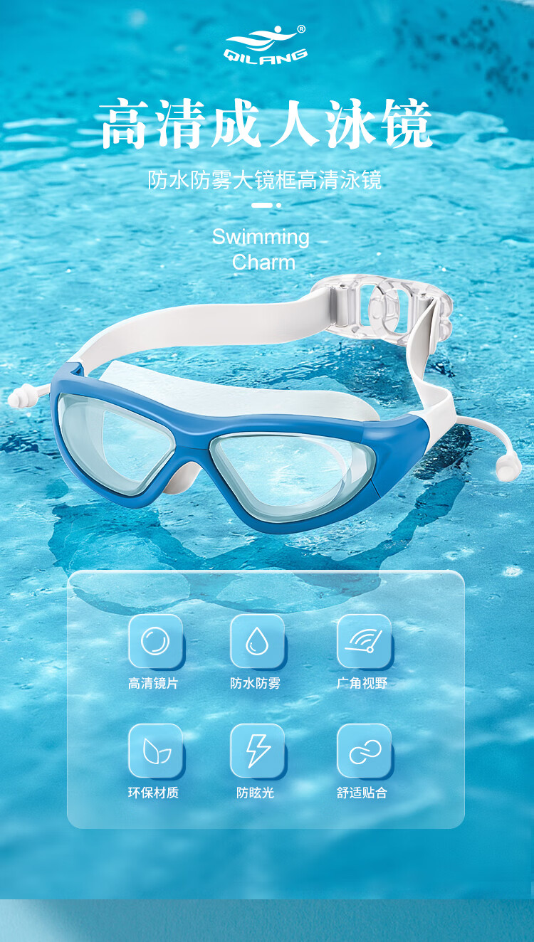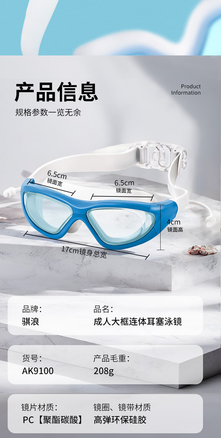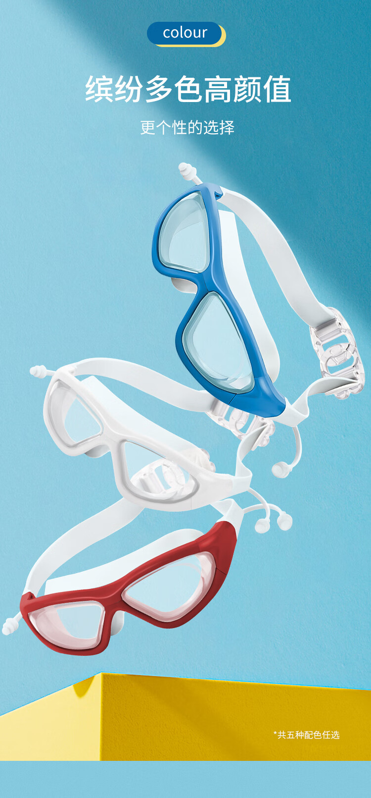 Adult swimming goggles HD transparent waterproof anti-fog men and women large frame one-piece earplugs goggles swimming equipment black no Specifications