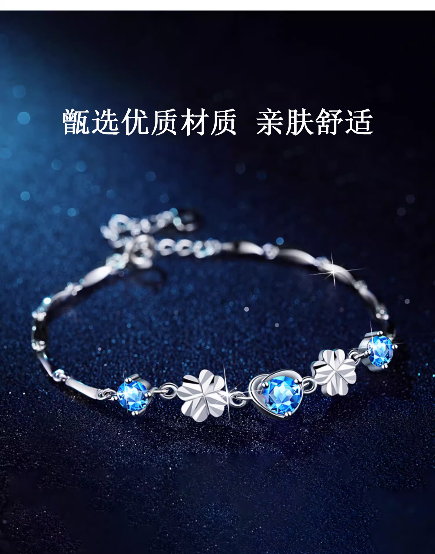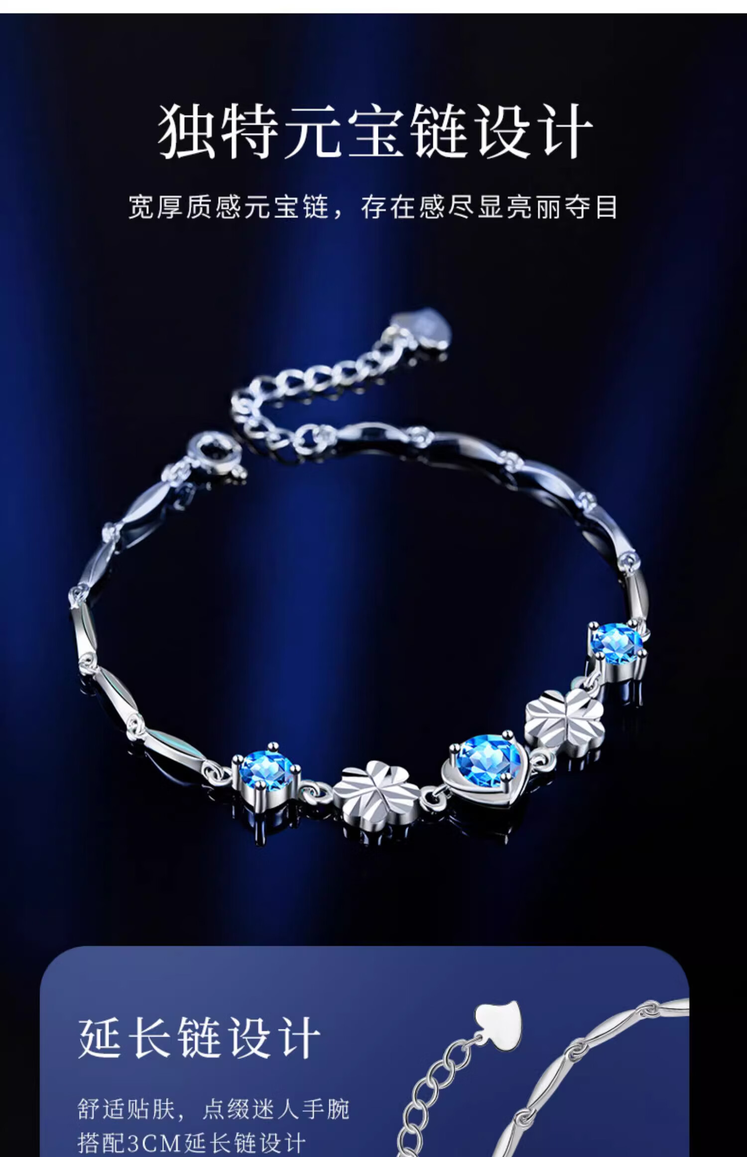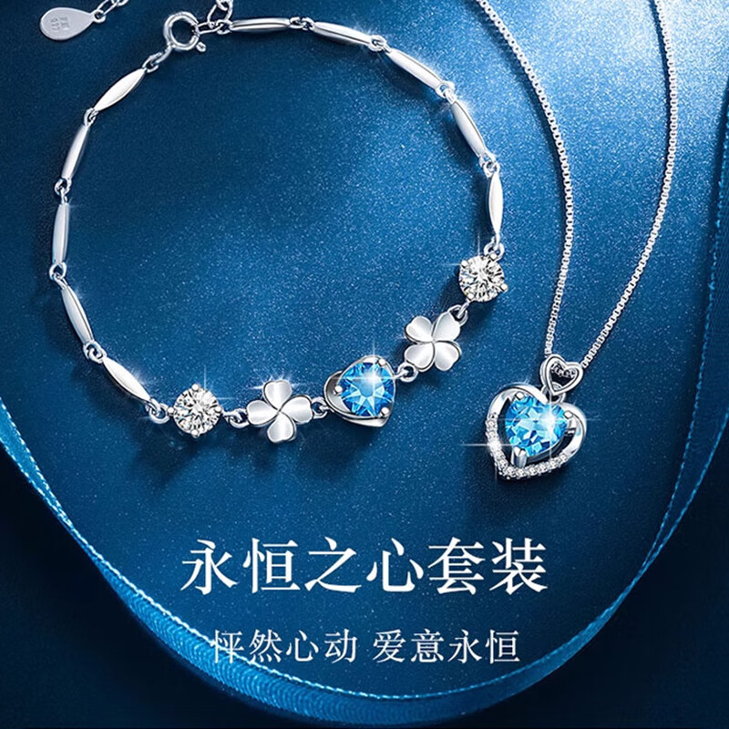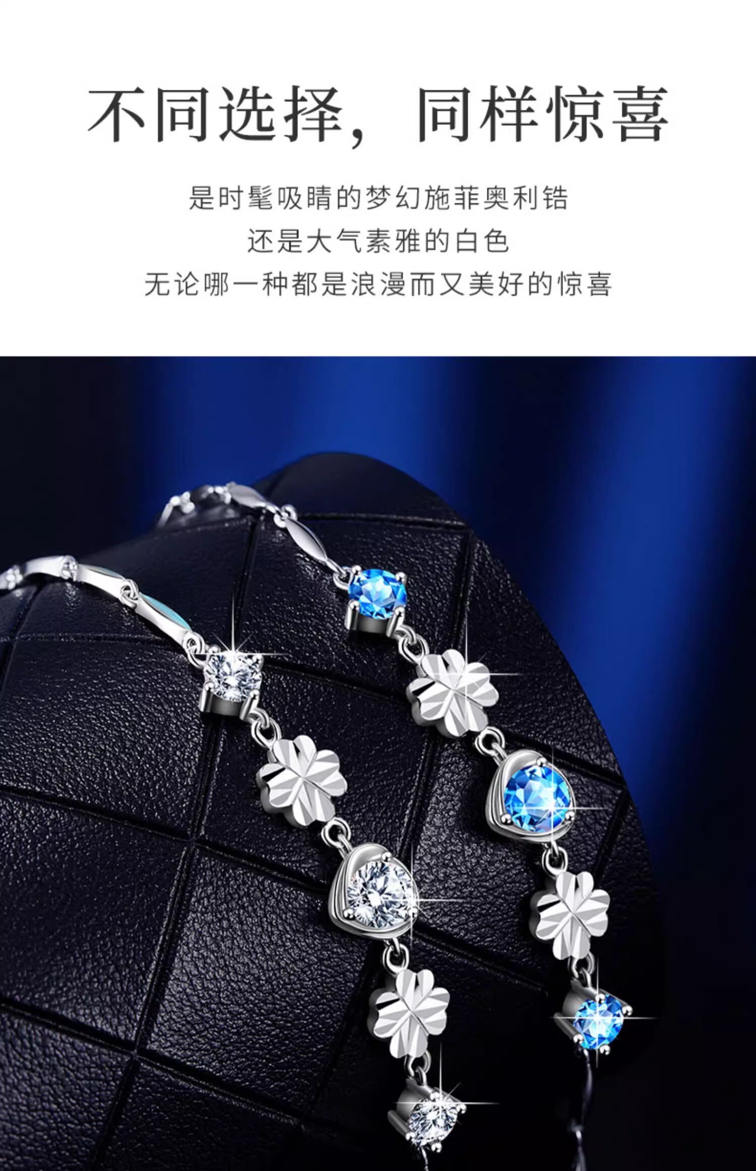 MZMZ platinum bracelet women's four-leaf clover pt950 platinum necklace set as birthday and anniversary gift for girlfriend and wife, light luxury model, four-leaf clover bracelet, white diamond