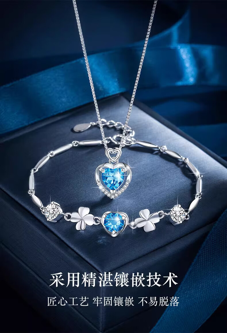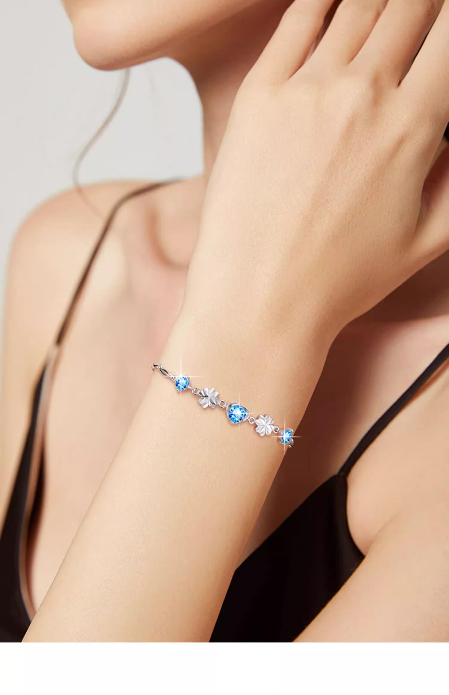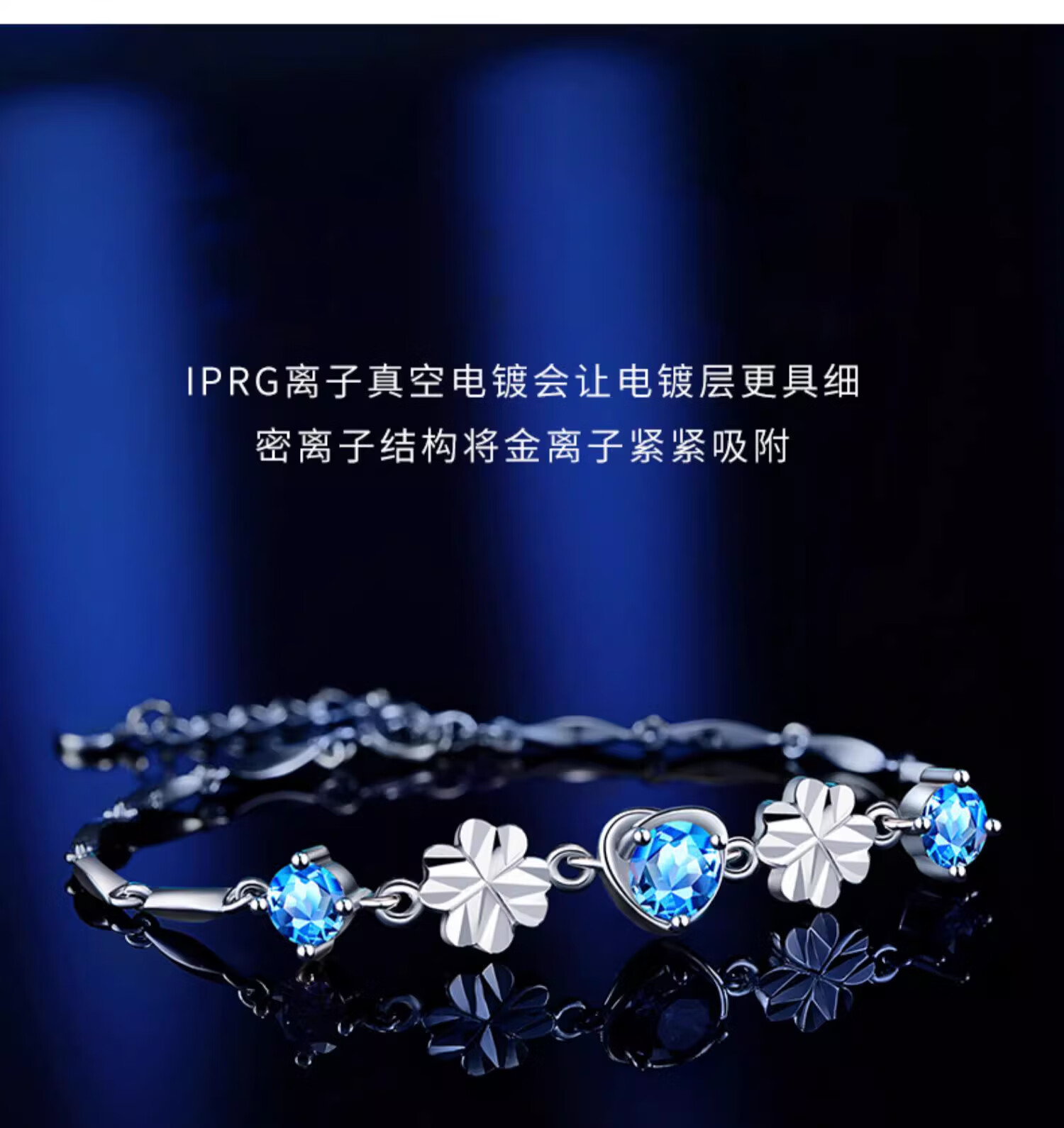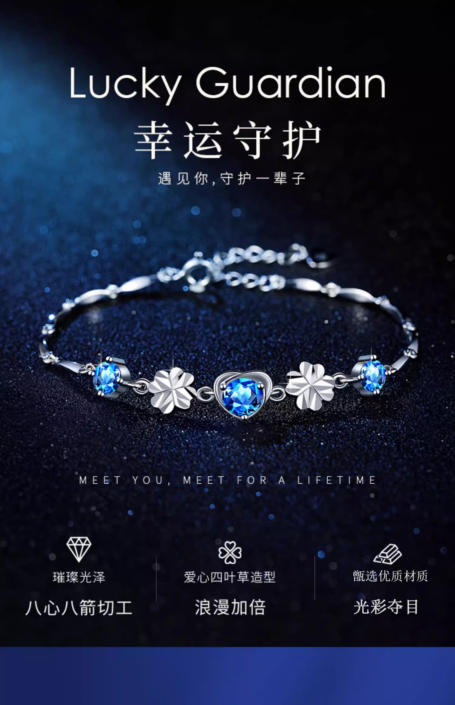 MZMZ platinum bracelet women's four-leaf clover pt950 platinum necklace set as birthday and anniversary gift for girlfriend and wife, light luxury model, four-leaf clover bracelet, white diamond